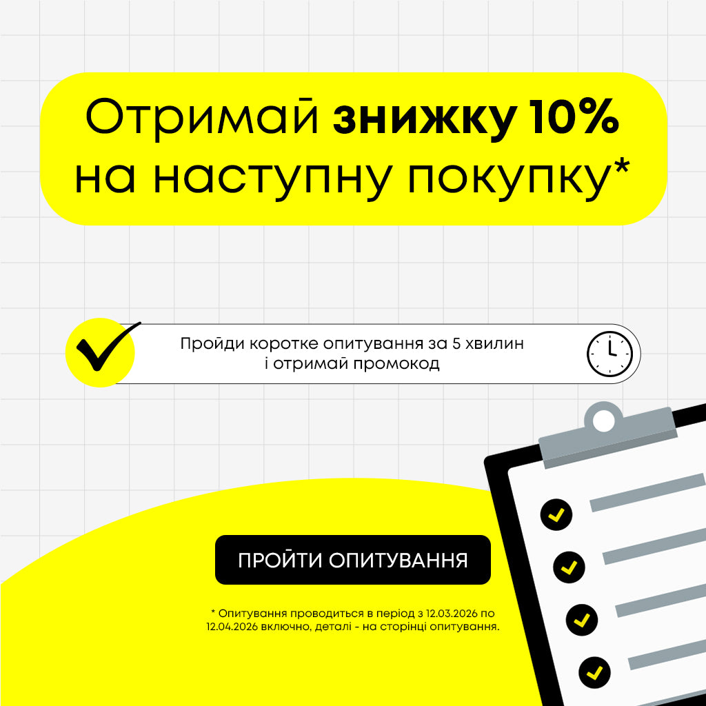 3. Промокод на знижку 10% надійде на вказаний номер впродовж 5 днів, після проходження опитування.
