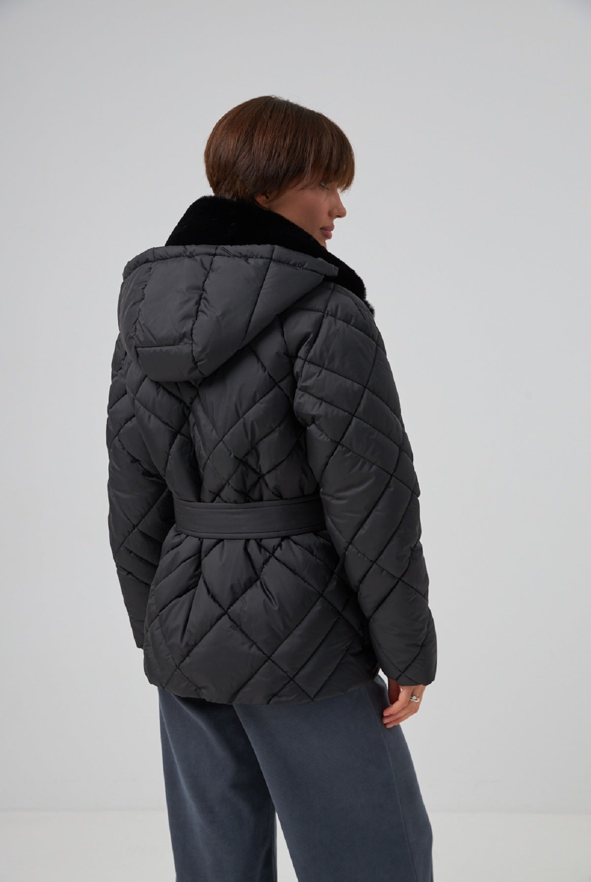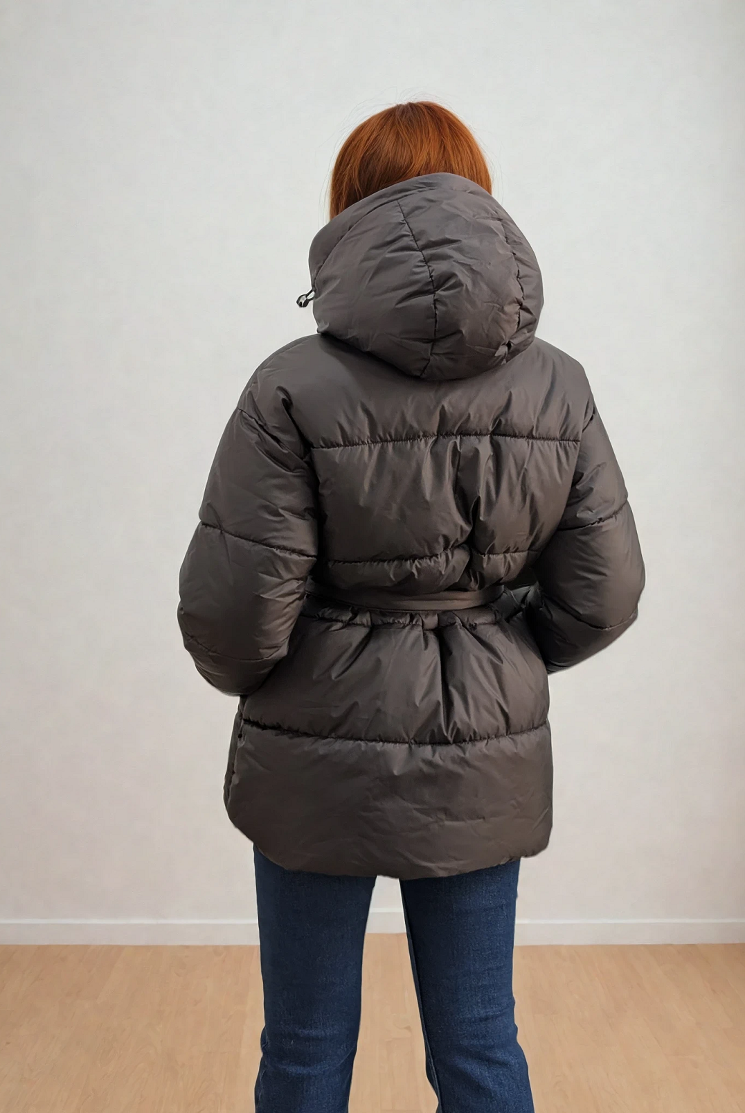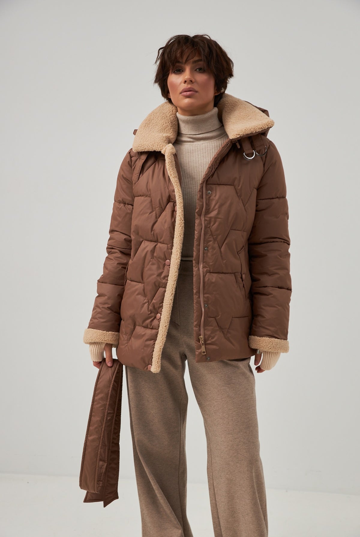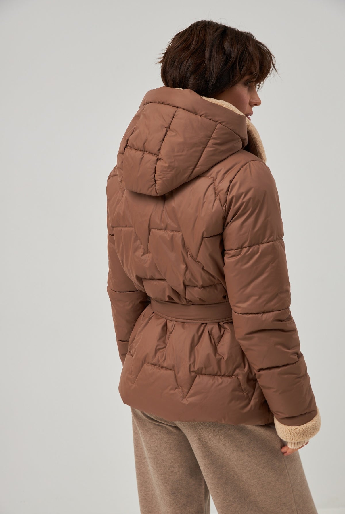 Жіноча куртка-пуховик «Oversize» з поясом та відкладним коміром