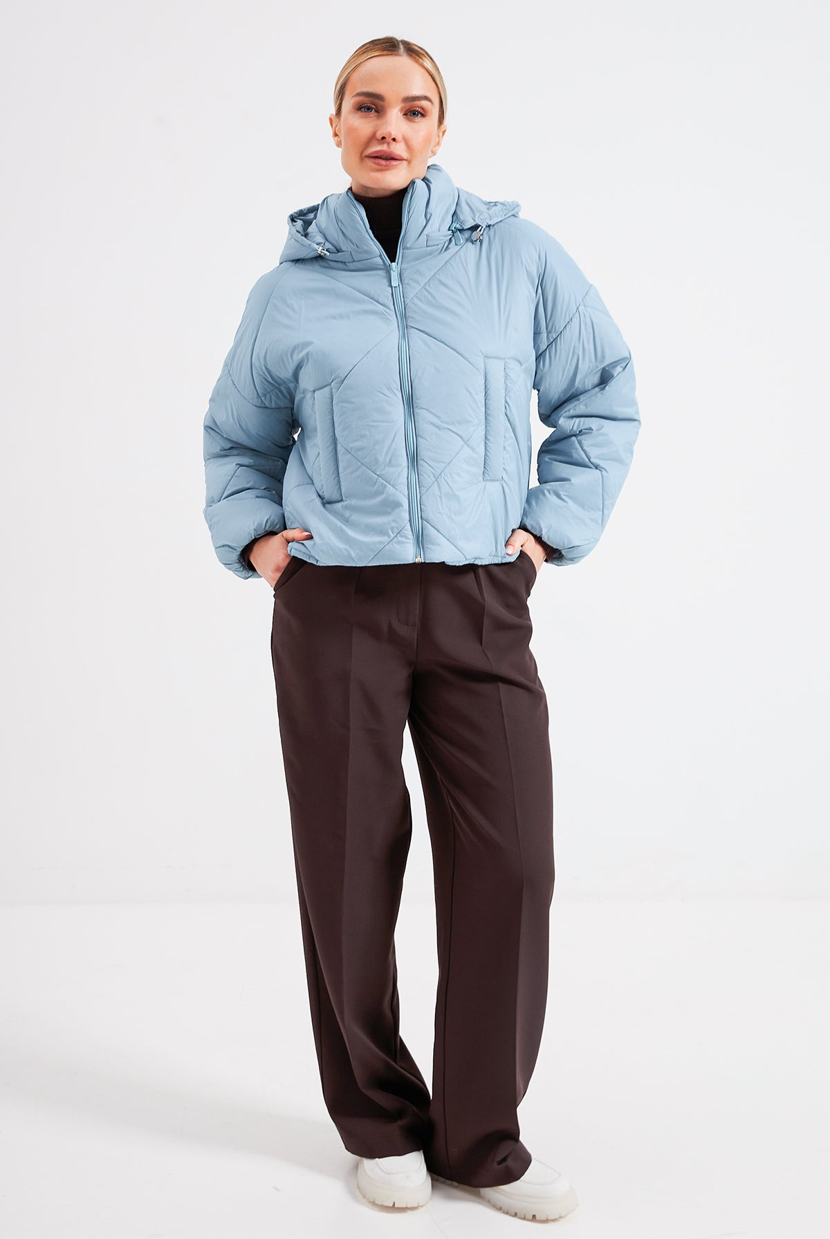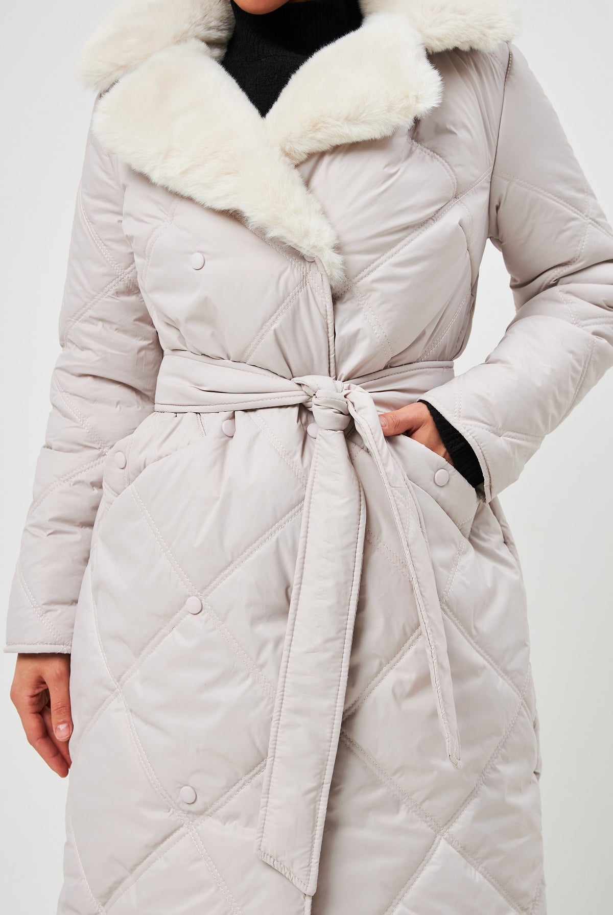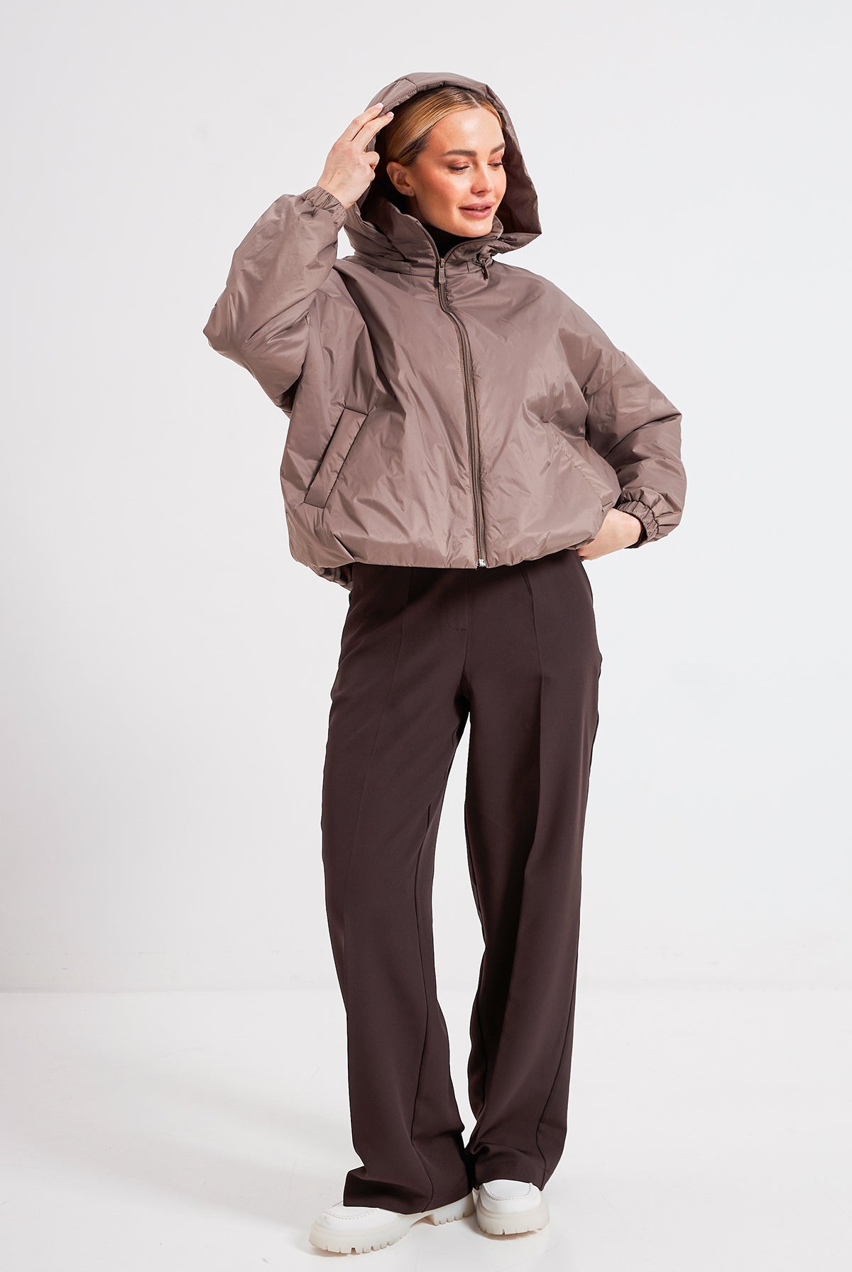 Жіноча куртка-пуховик «Oversize» з поясом та відкладним коміром