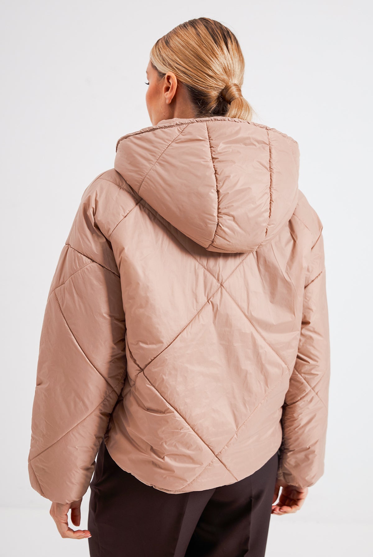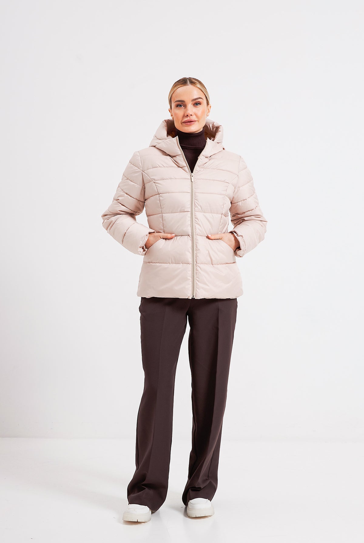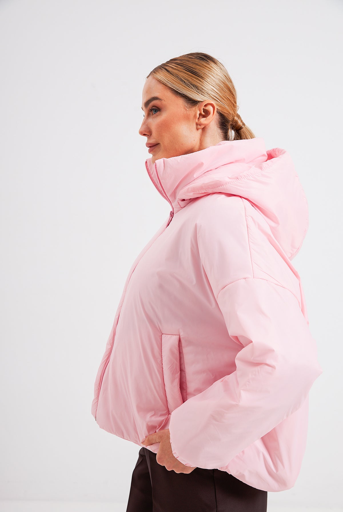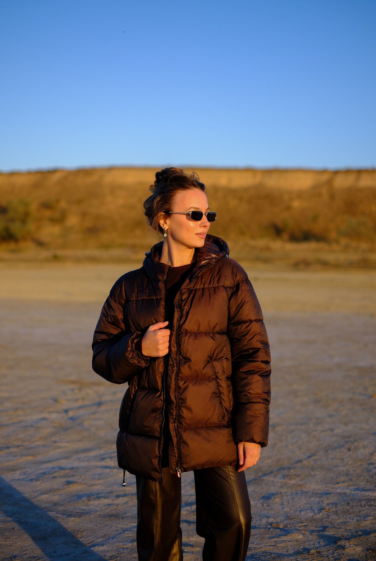 Жіноча куртка-пуховик «Oversize» з поясом та відкладним коміром