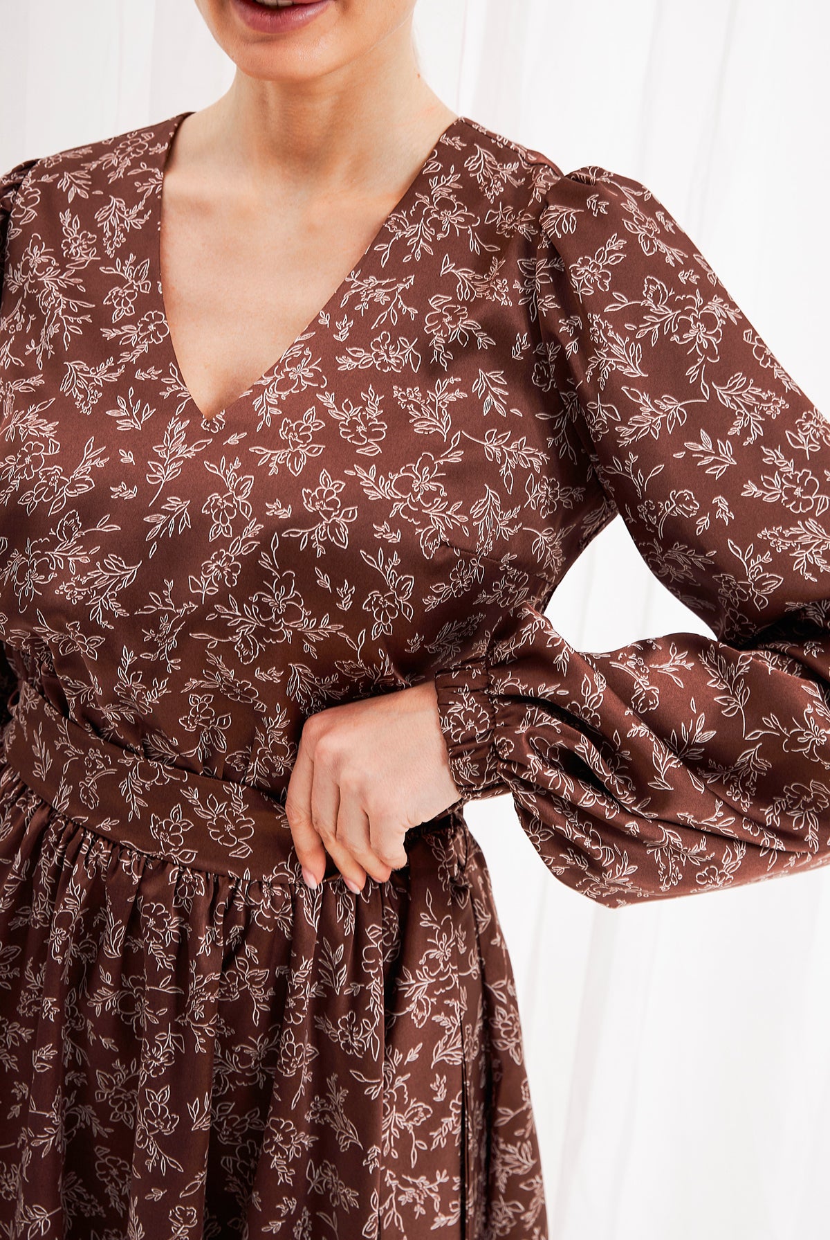 Сукня міні на довгий рукав з поясом