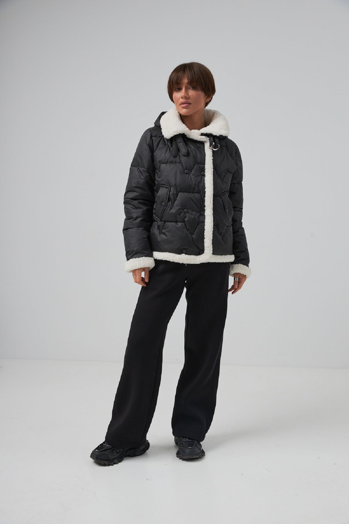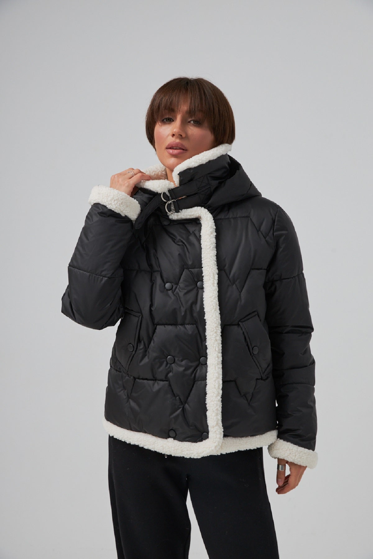Куртка стьобана з обробкою овчини