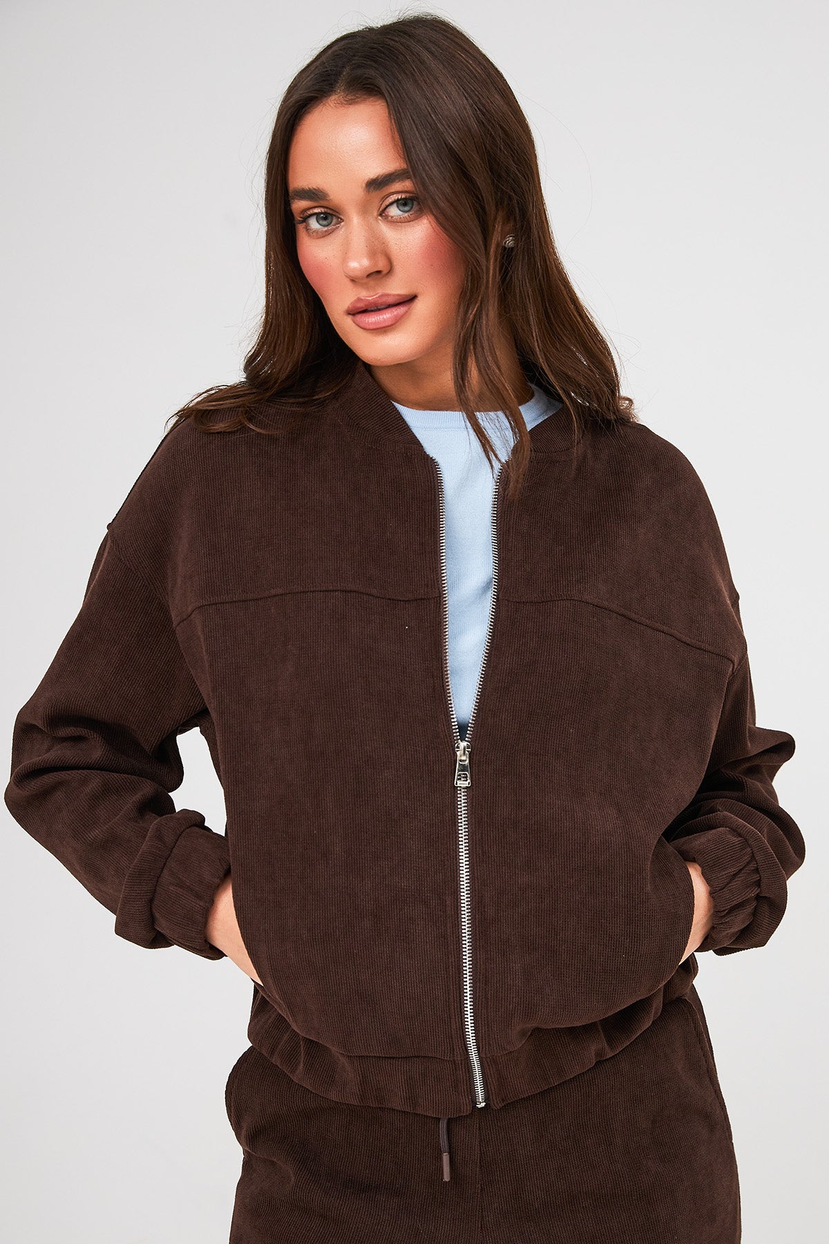 Куртка-бомбер на блискавці з кишенями