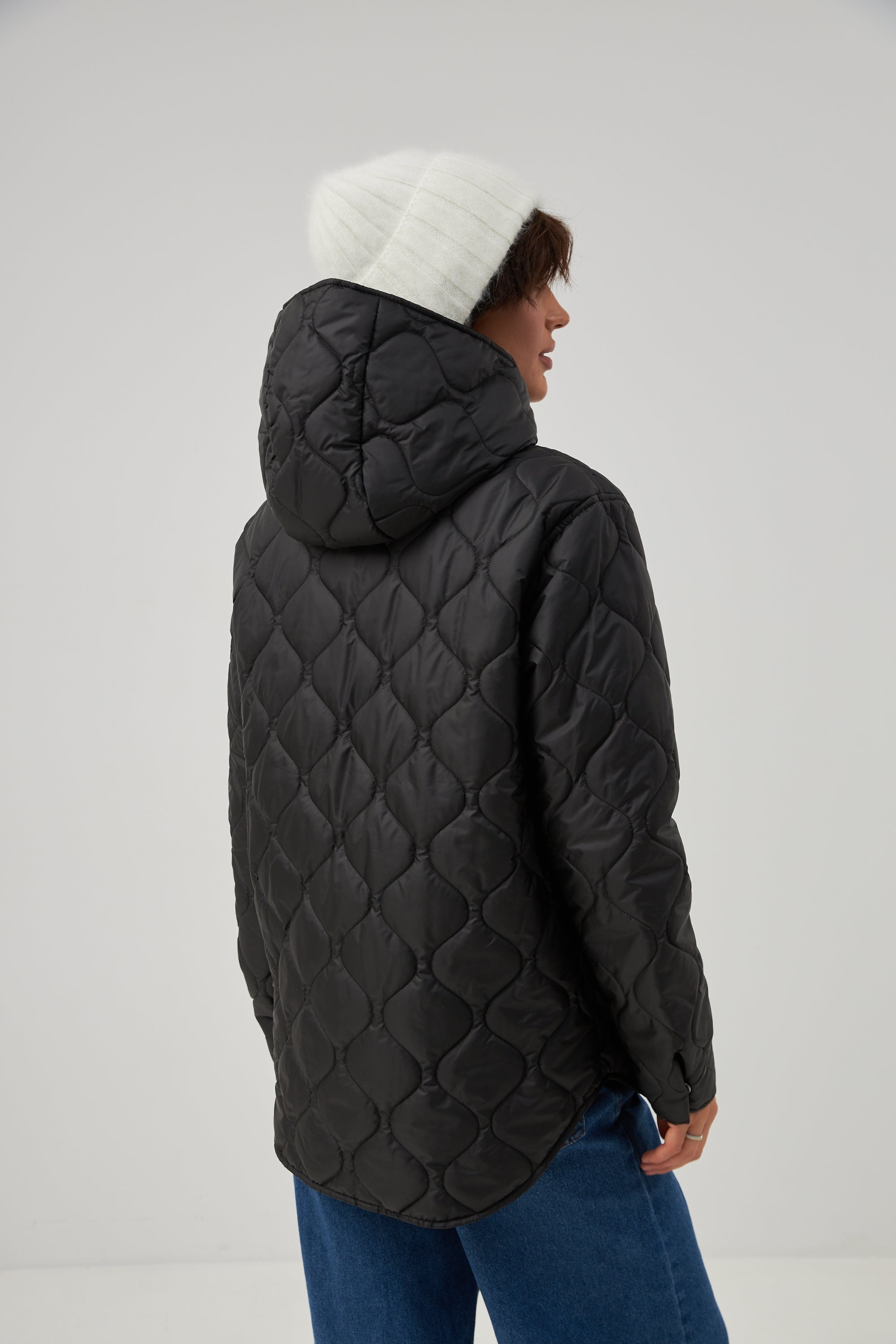 Куртка стьобана з обробкою овчиною подовжена