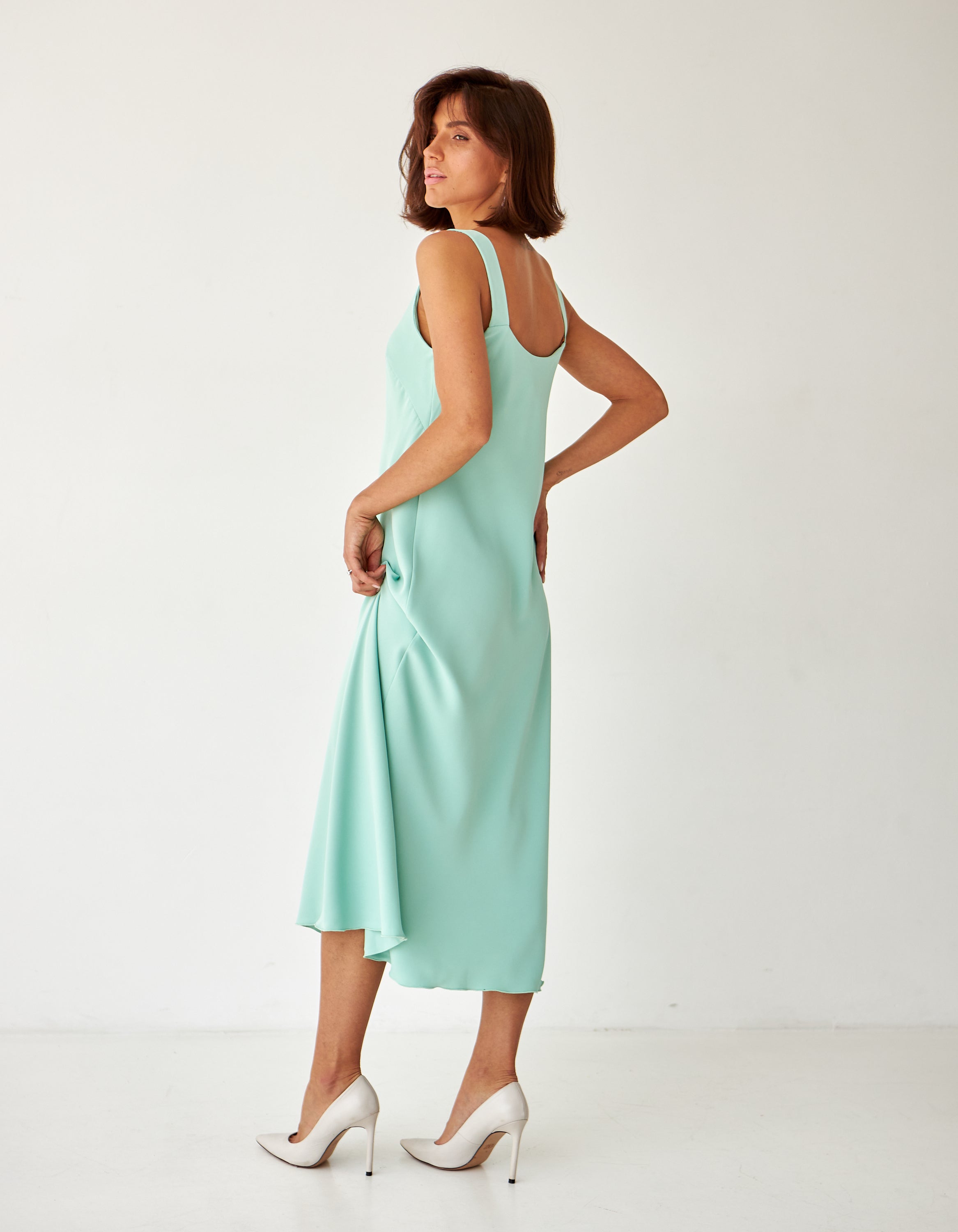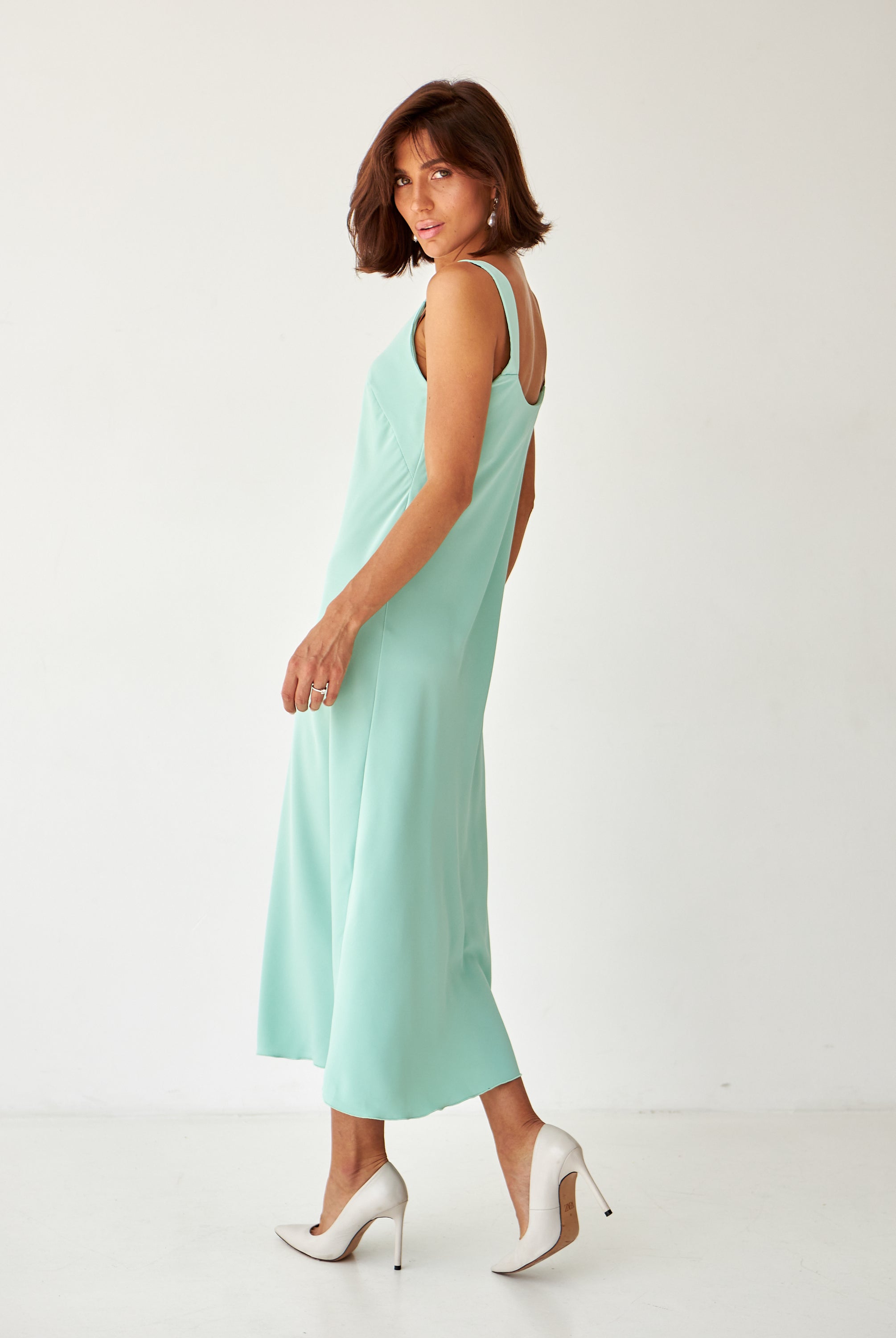 Сукня міді на широких бретелях