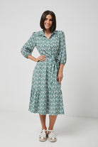 Модель має вільну посадку з акцентом на талії завдяки поясу, що зав'язується, створюючи жіночний силует.