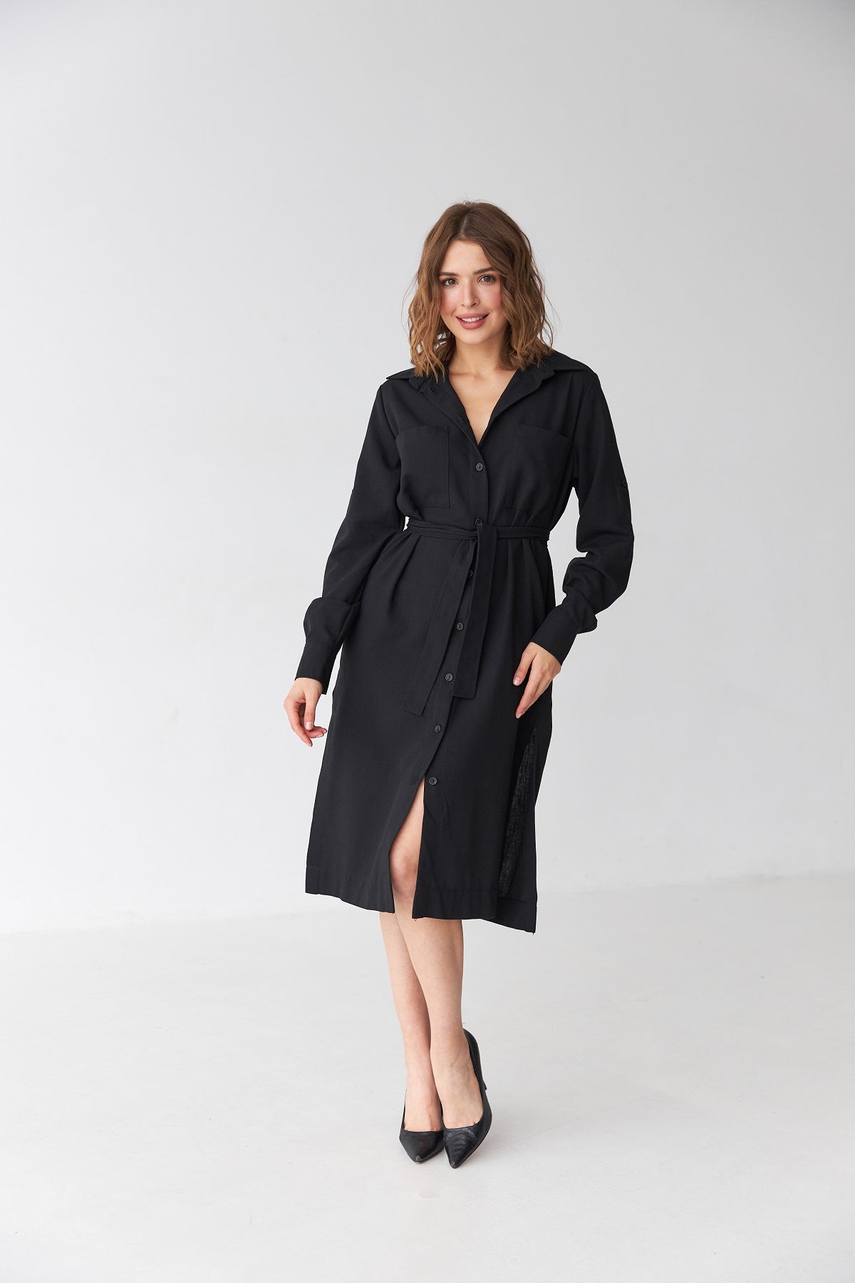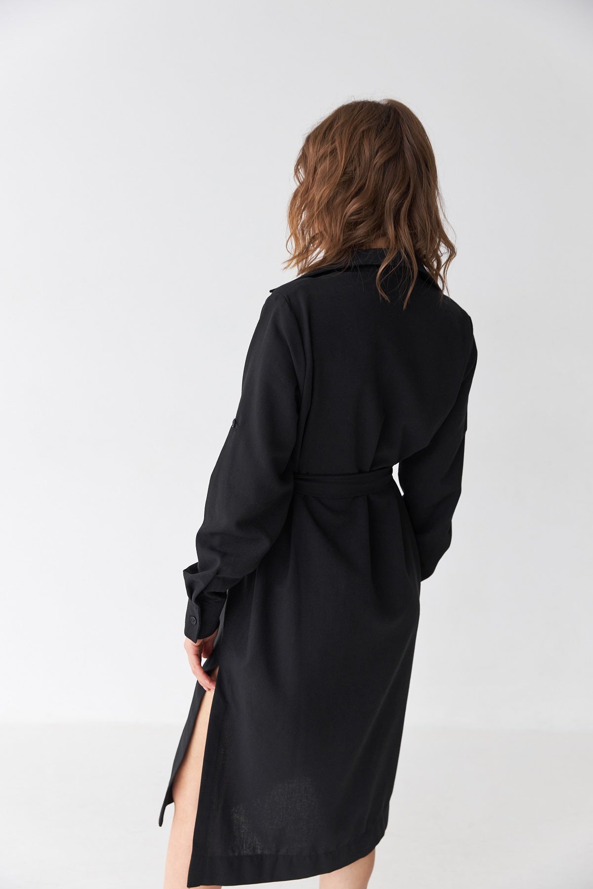 Пряма посадка зі знімним поясом дозволяє регулювати силует — від вільного кежуал до підкреслено жіночного.