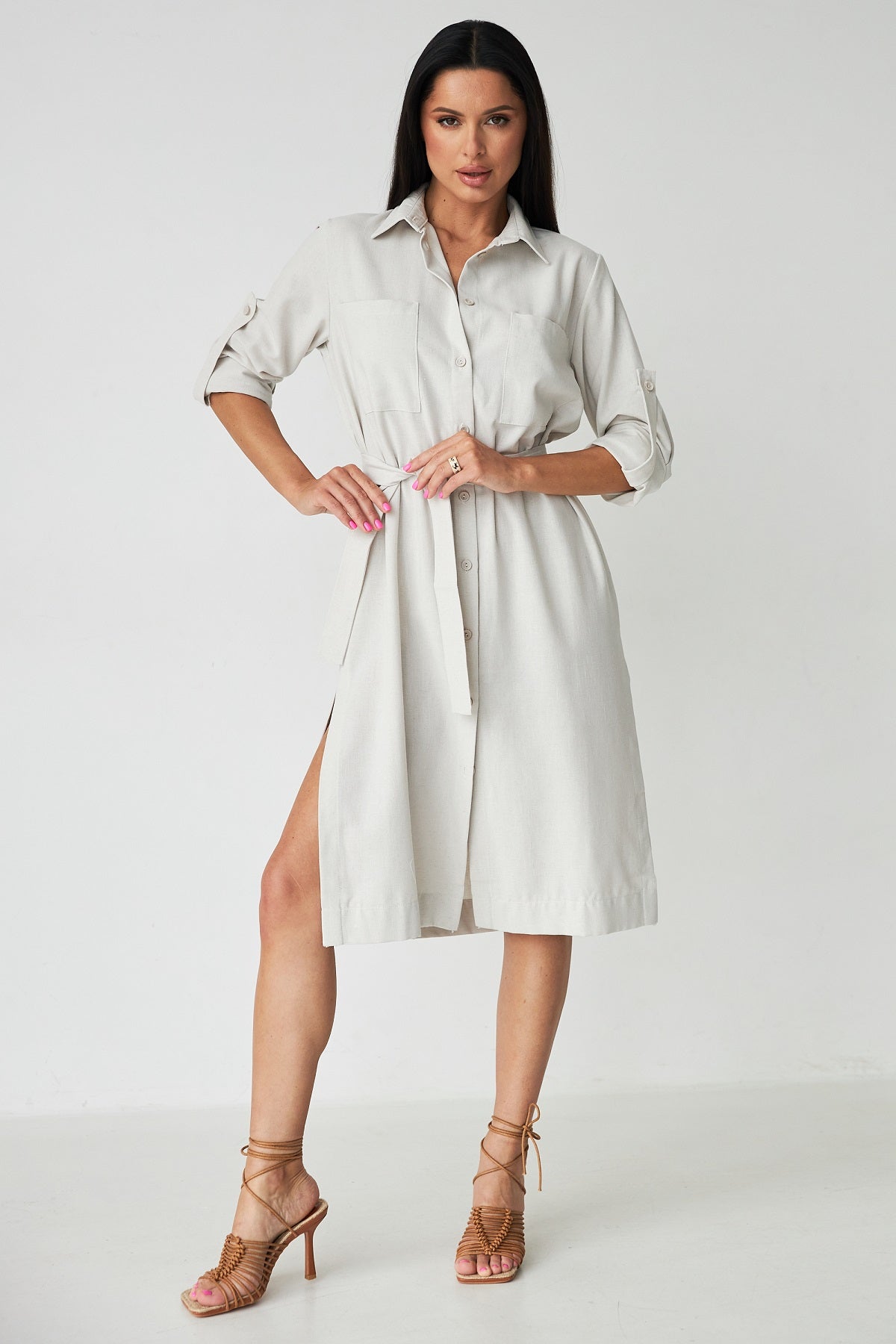 Сукня-сорочка міді з льону