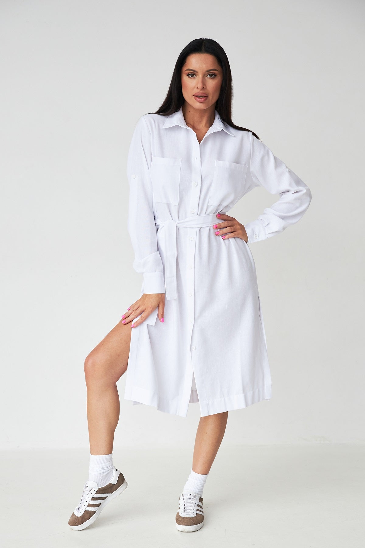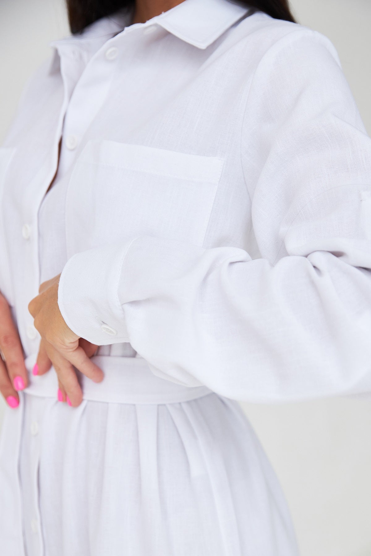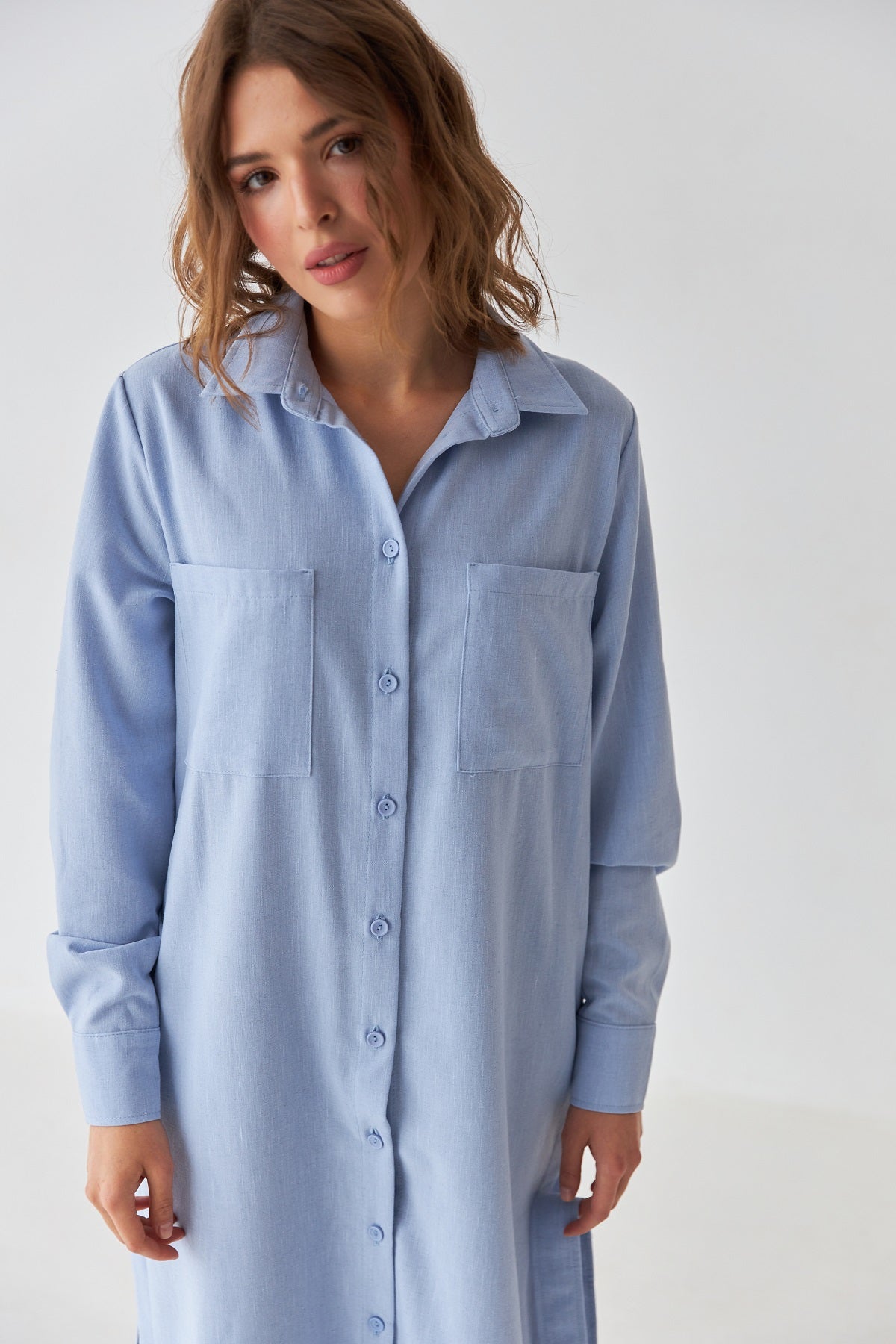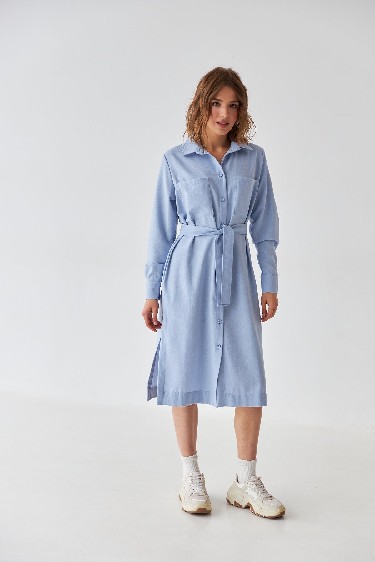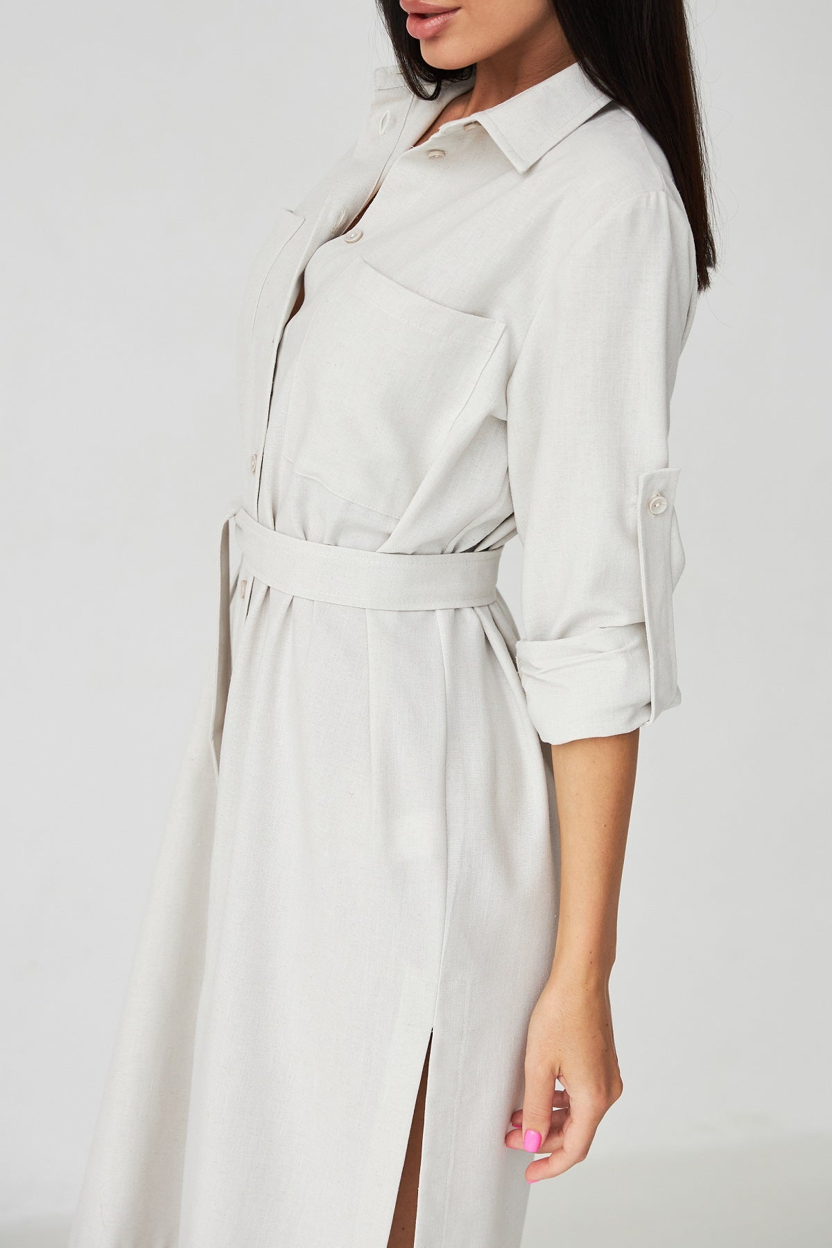 Сукня-сорочка міді довжини — ідеальний вибір для повсякденних образів у літній сезон. Виготовлена з льону, вона забезпечує комфорт і повітропроникність навіть у найспекотніші дні.