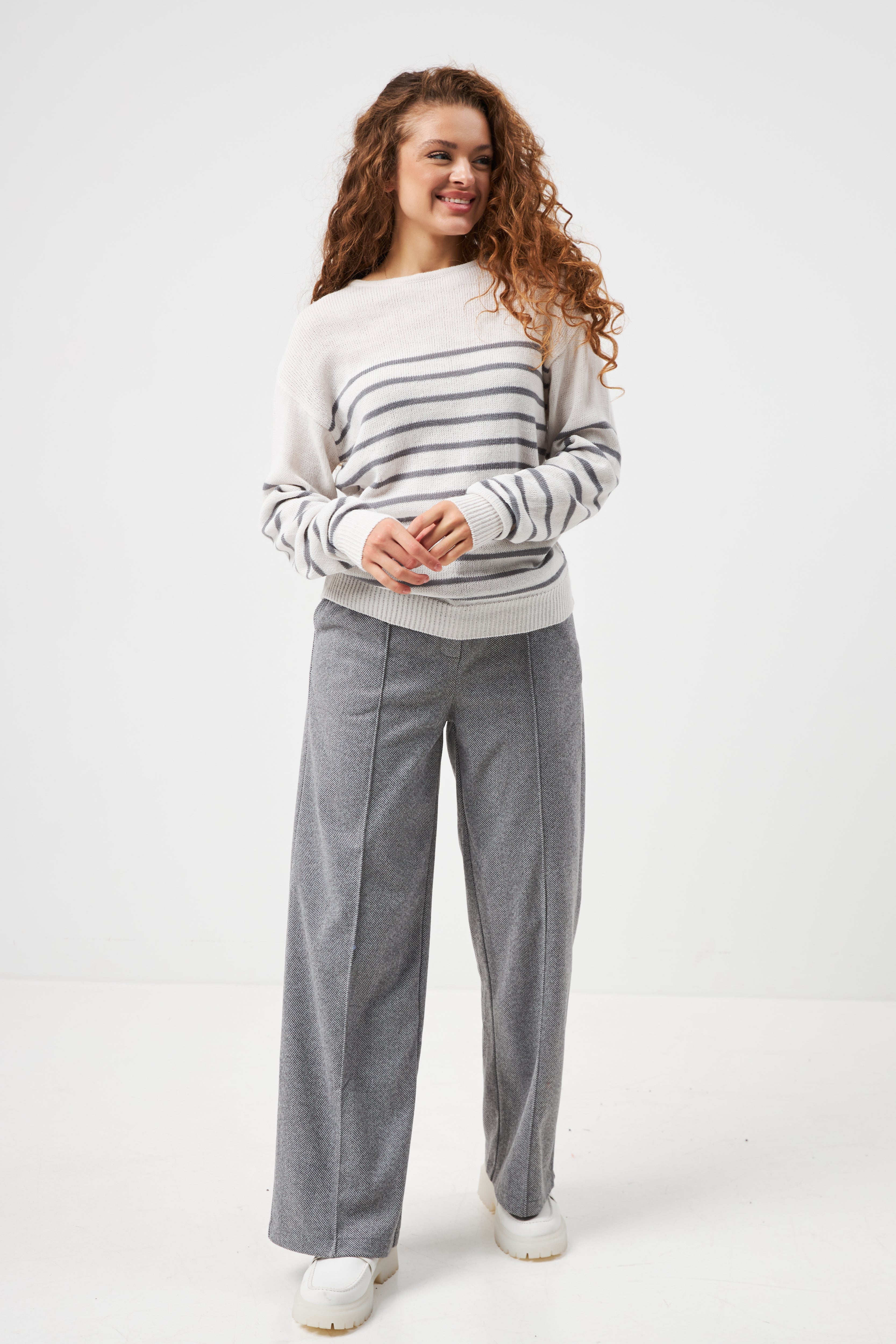 Джемпер "Марс" виконаний у вільному крої, що забезпечує комфорт та свободу рухів. Дизайн зі смужкою — це вічна класика, яка завжди в тренді. Горловина, рукава та низ джемпера оздоблені еластичною гумкою, що допомагає виробу тримати форму. М'яка та тепла тканина робить його незамінним для прохолодної погоди.Прекрасно поєднується з джинсами, класичними брюками, спідницями-плісе, створюючи як кежуал, так і більш стримані образи.