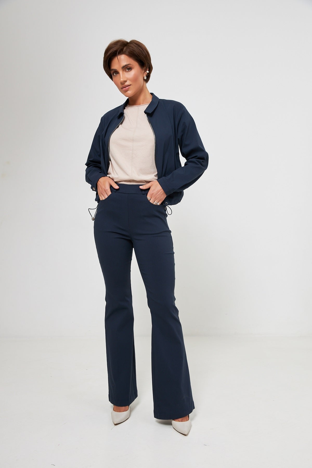 Брюки стануть вашою улюбленою базою на кожен день, а у поєднанні з жакетом-бомбером цієї ж серії вони трансформуються у стильний та впевнений костюм-двійку. Модель, що поєднує в собі комфорт легінсів та естетику класичних штанів.