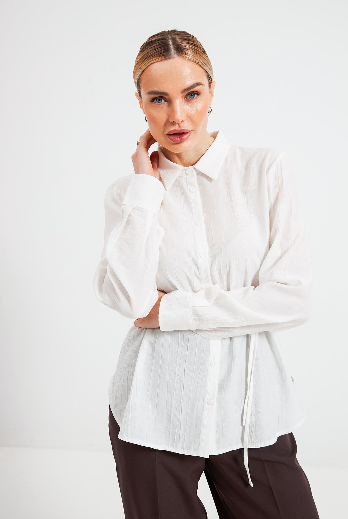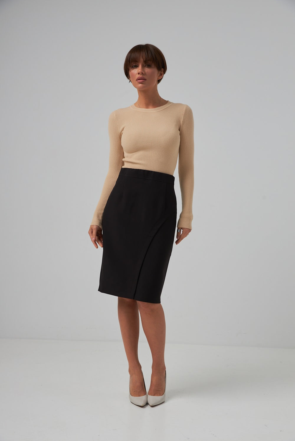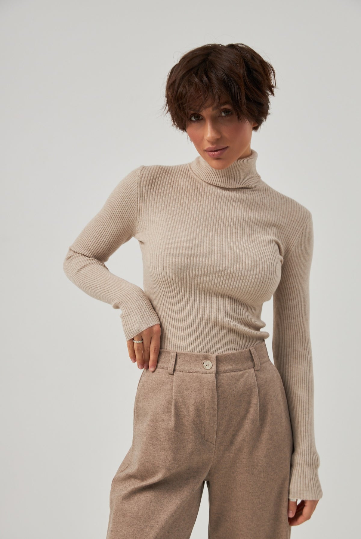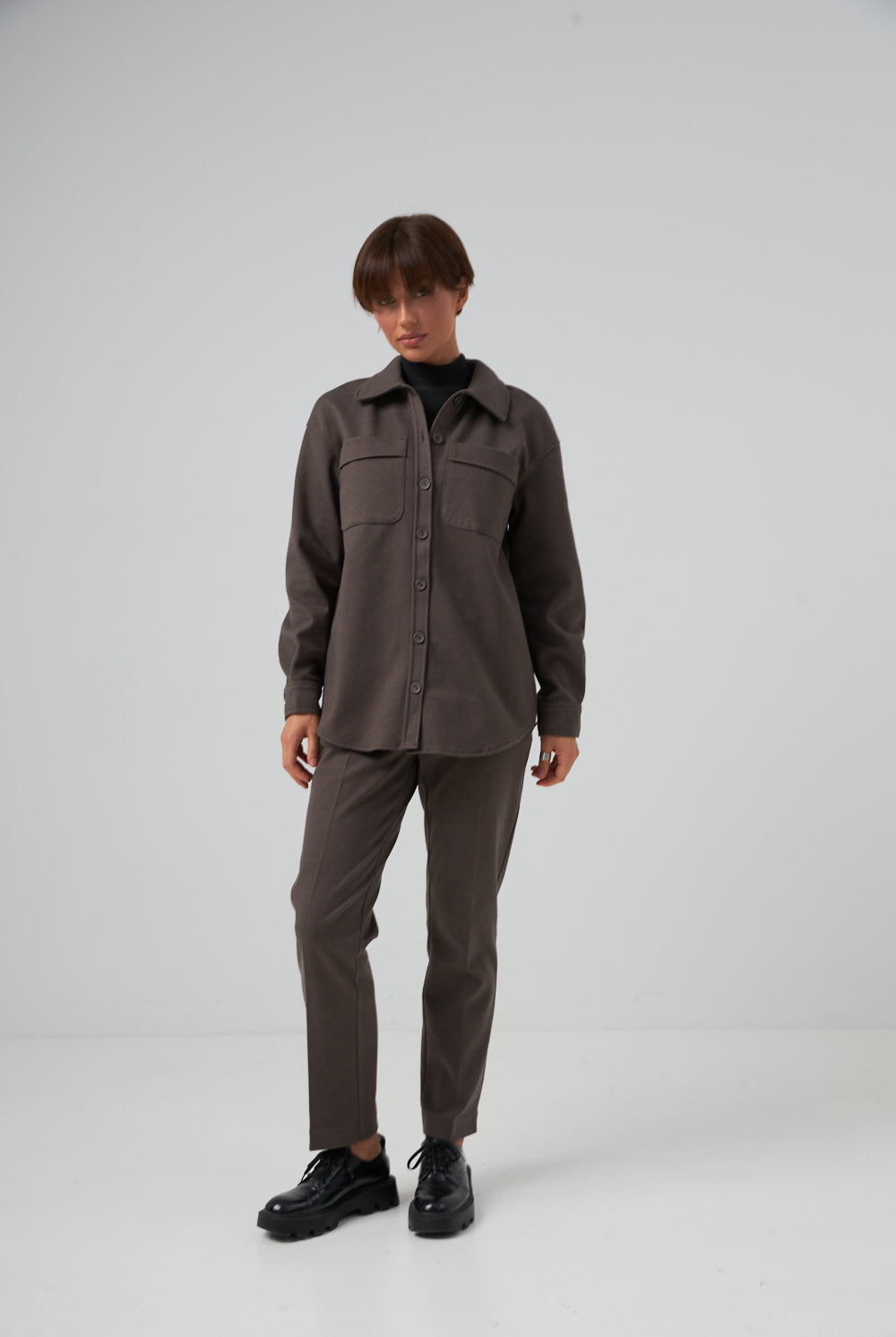 Завужений крій створює чіткий, акуратний образ, який доречний як у бізнес-середовищі, так і в кежуал-луках.
