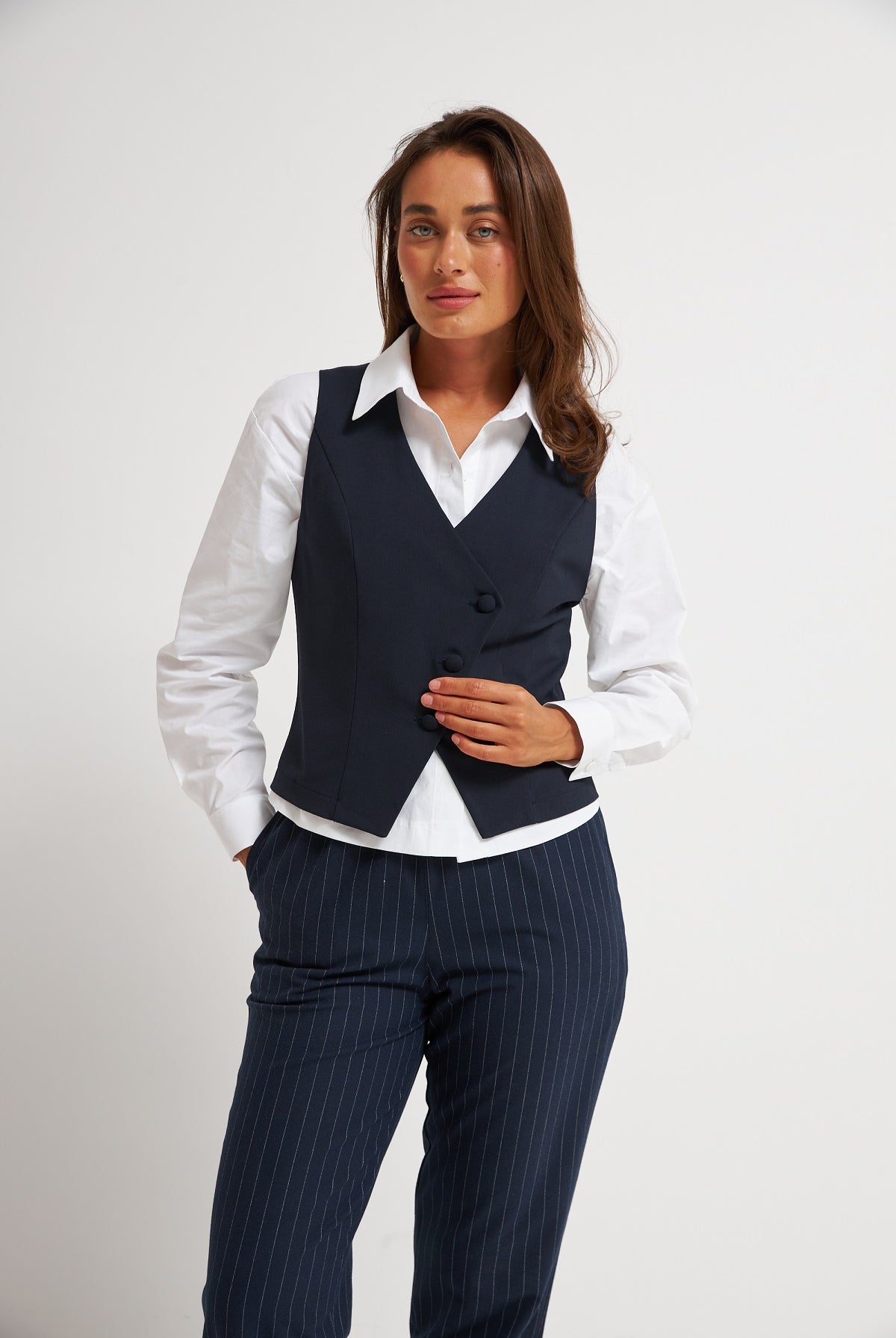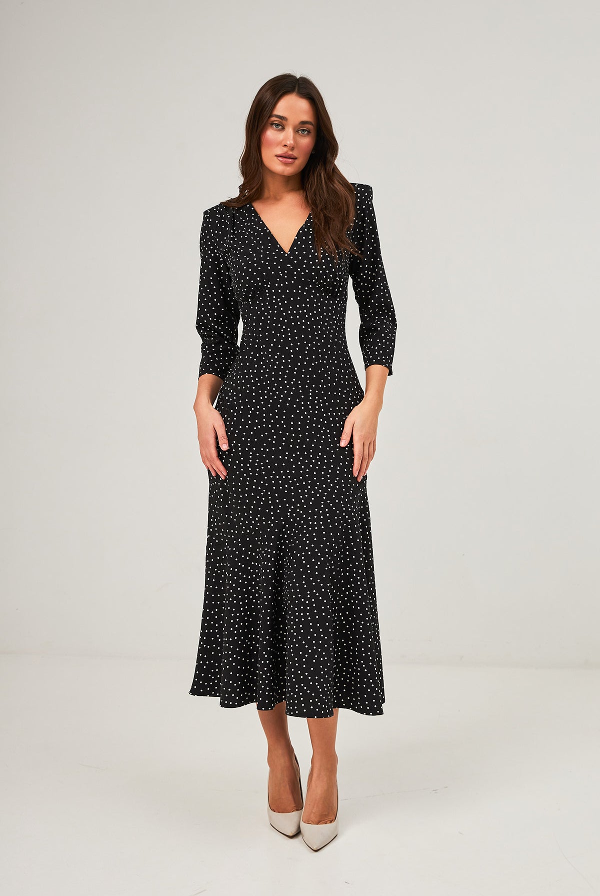 Напівприлеглий силует делікатно підкреслює жіночність. Лаконічний крій візуально витягує зріст, створюючи витончений вертикальний акцент.