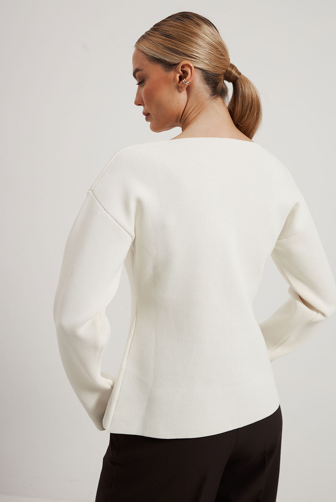Класичні елементи включають V-подібний виріз та застібку на один ґудзик.