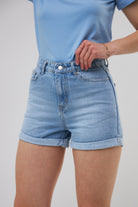 Джинсові шорти — базовий елемент літнього гардеробу. Модель зі щільного деніму з високою посадкою, зручними кишенями та застібкою на ґудзик і блискавку. Добре тримають форму та легко поєднуються з будь-яким верхом.