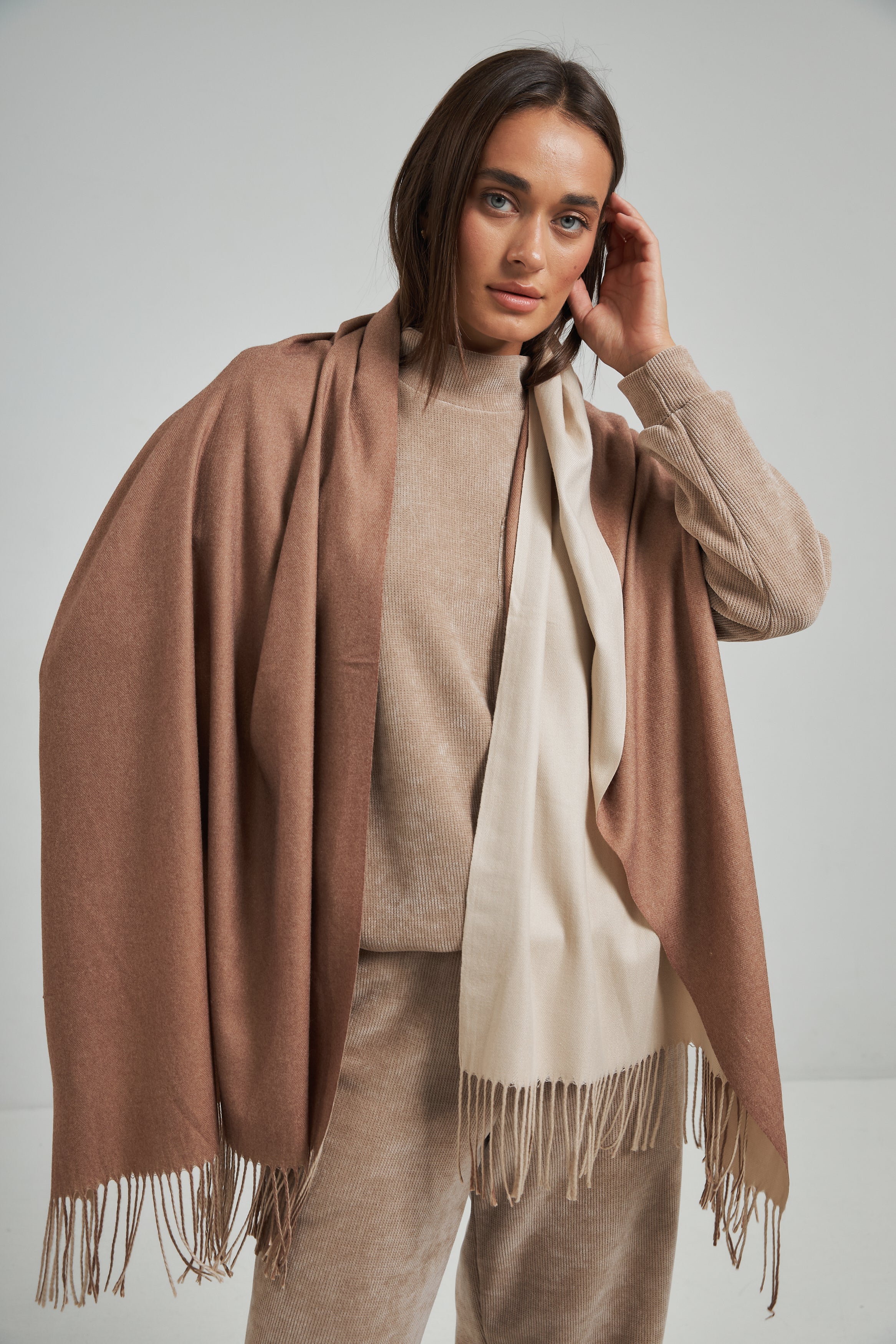 Кашеміровий двосторонній шарф — це м'який, теплий та елегантний аксесуар.