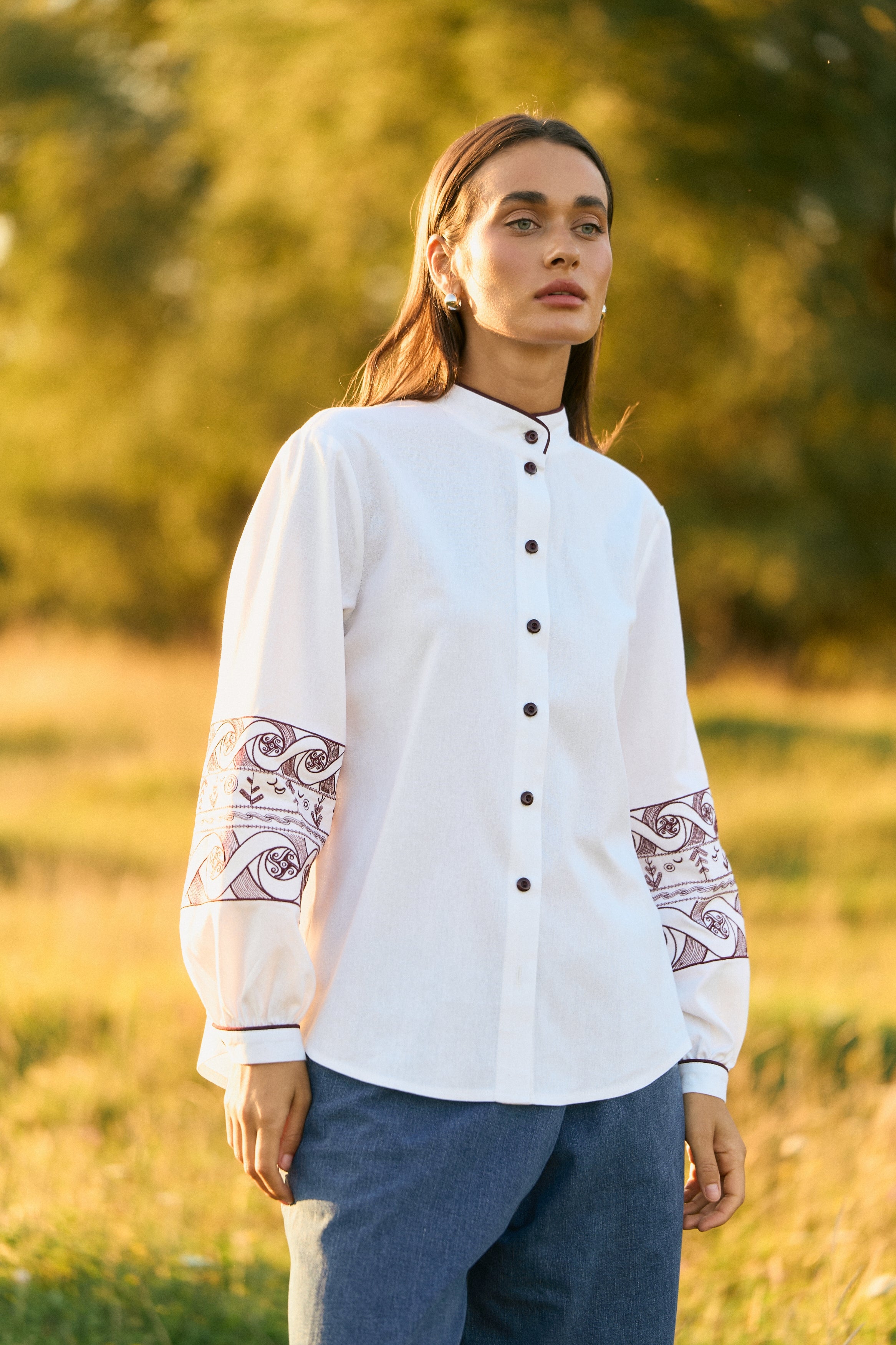 Універсальність: Ця вишиванка чудово підійде як для урочистих подій, так і для повсякденного носіння. Вона гармонійно поєднується з класичними брюками, джинсами чи спідницями.