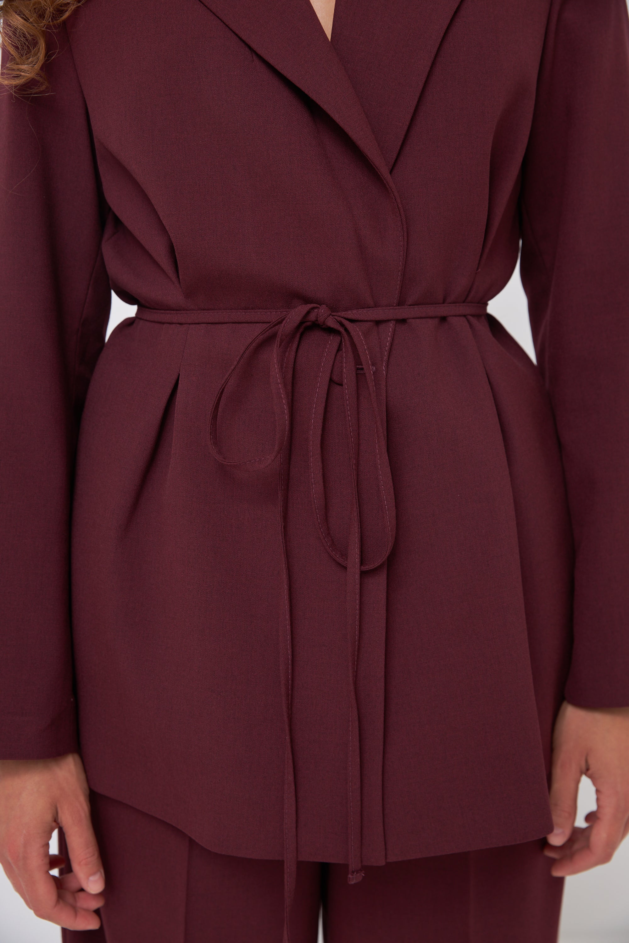 Цей жакет вільного крою з поясом-шнуром — вдале поєднання елегантності та розслабленого силуету. Завдяки м’яким лініям та лаконічному дизайну він виглядає стильно, але не обмежує рухів. Особливий акцент — пояс-шнур, який дозволяє регулювати посадку та підкреслити талію або, навпаки, носити жакет у вільному стилі.