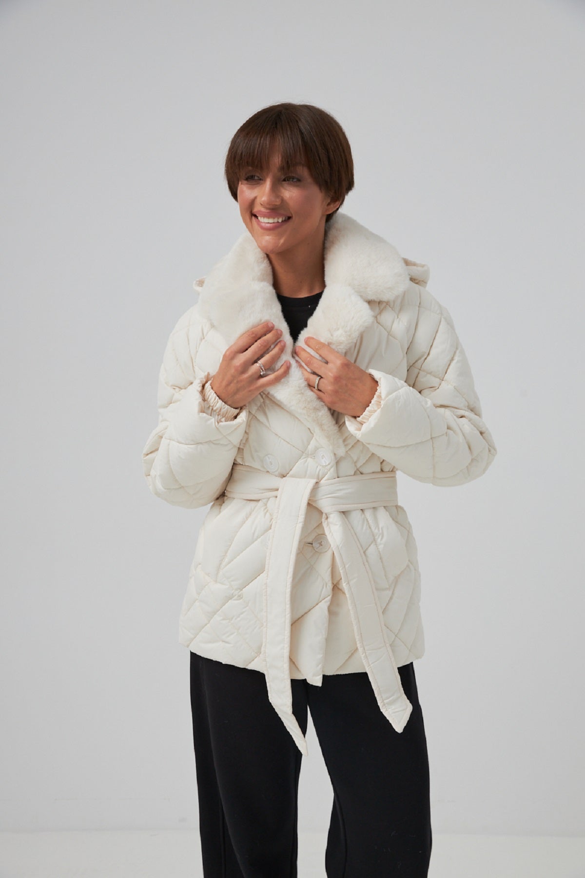 Ця модель — ідеальне рішення для тих, хто шукає максимальне тепло, не жертвуючи при цьому вишуканим стилем. Вона чудово поєднує практичні матеріали та елегантні деталі.Цей матеріал має легкий глянцевий блиск, а головне — він зносостійкий і забезпечує надійний захист від снігу, вологи та пронизливого зимового вітру.Куртка має сучасний крій, який відмінно сидить по фігурі. Завдяки класичному коміру та елегантному силуету, ви легко створите стильні образи.