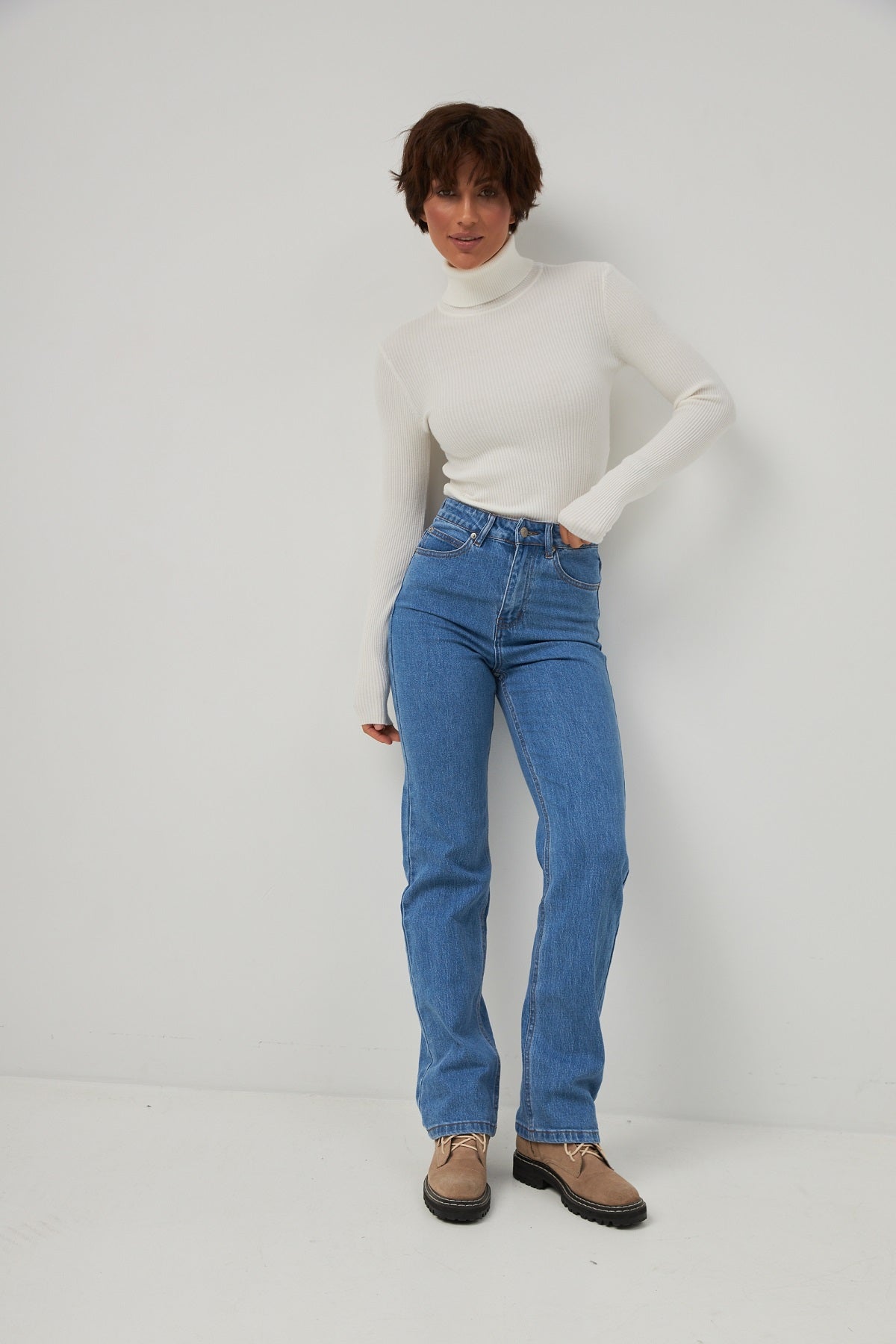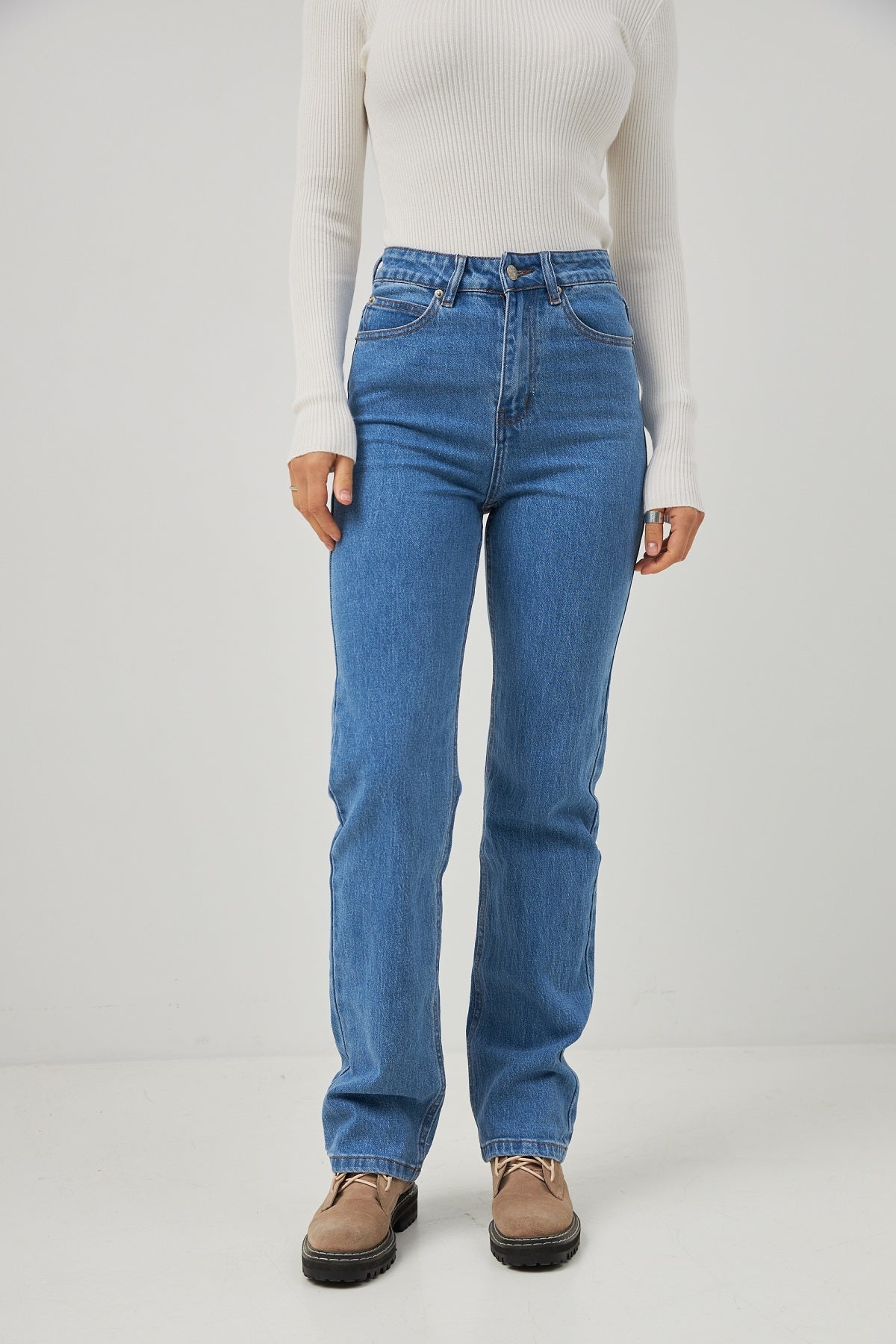 Класичні прямі джинси – це позачасова база, що має бути у кожному гардеробі. Модель створена з якісного джинсу у насиченому синьому кольорі, що робить її універсальною основою для будь-якого образу. Прямий крій від стегна забезпечує комфортну посадку, візуально витягує силует і пасує до будь-якого типу фігури. Завдяки вмісту еластану, джинси чудово сідають і не обмежують рухів.