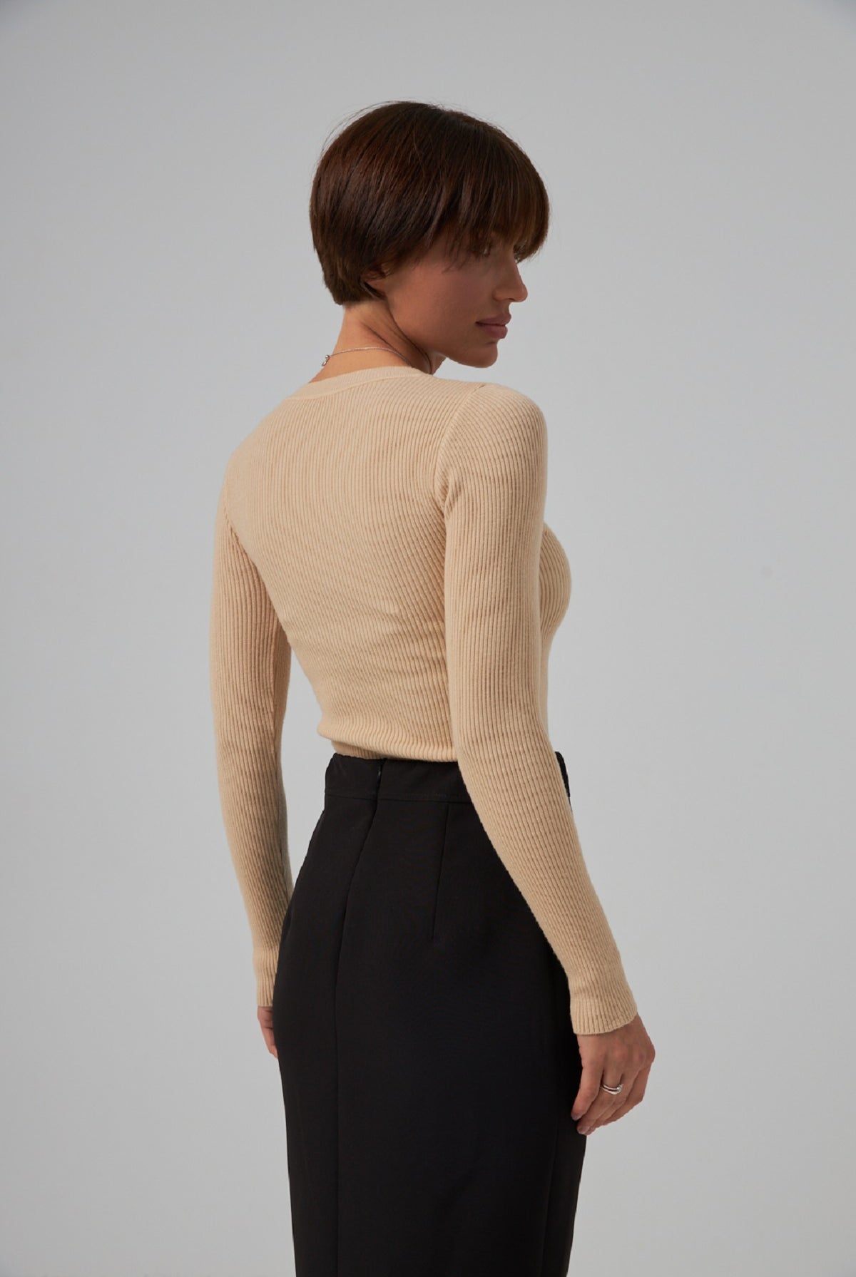 - Довжина рукава: вимірюється по зовнішній стороні, злегка зігнутою в лікті руки до зап'ястя.