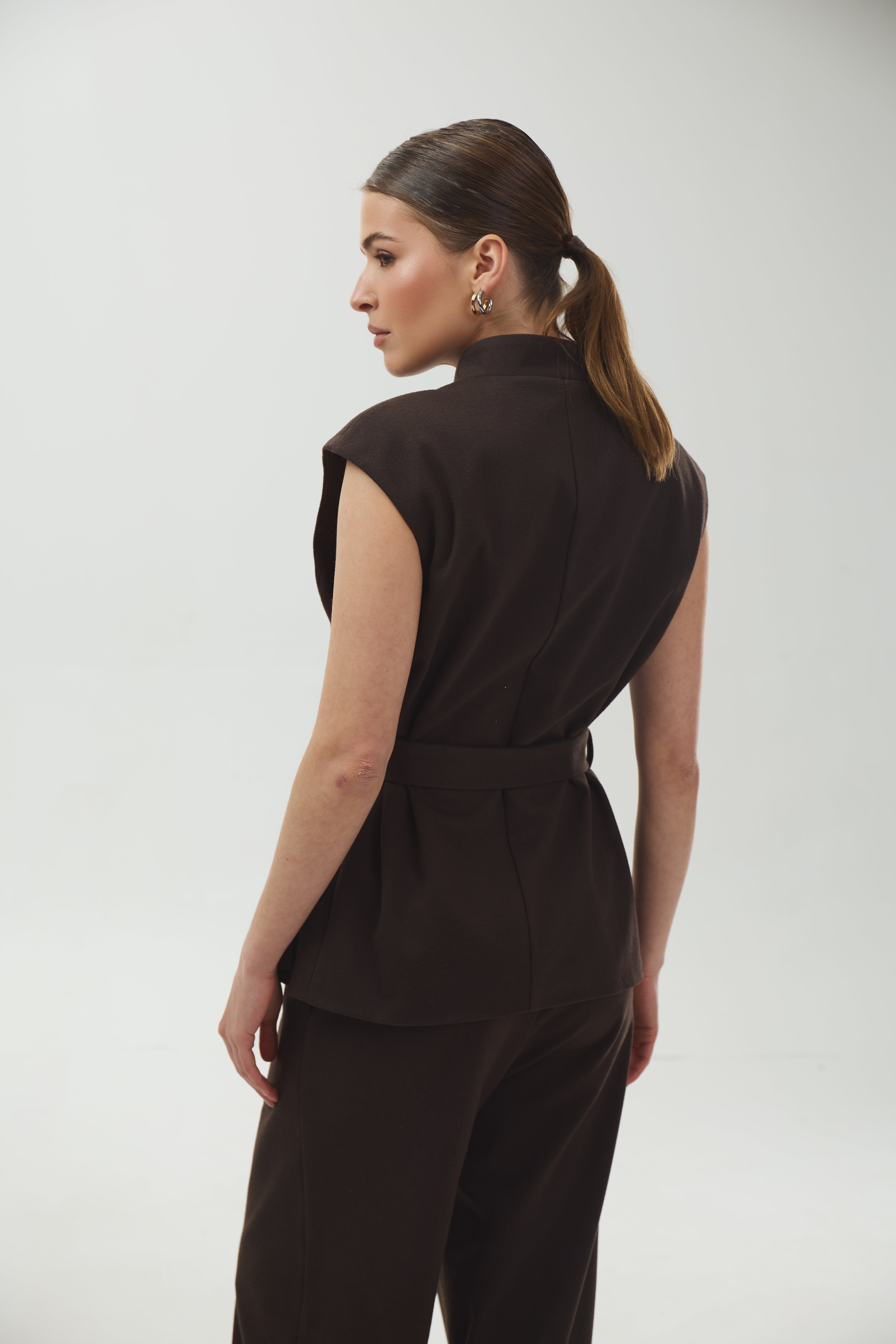 Модний жіночий жилет. Глибокий V-подібний виріз та пояс на талії створюють жіночний та елегантний силует. Ідеально поєднується з блузками, сорочками або як самостійний топ. Чудовий вибір для офісу, ділових зустрічей та багатошарових луків.