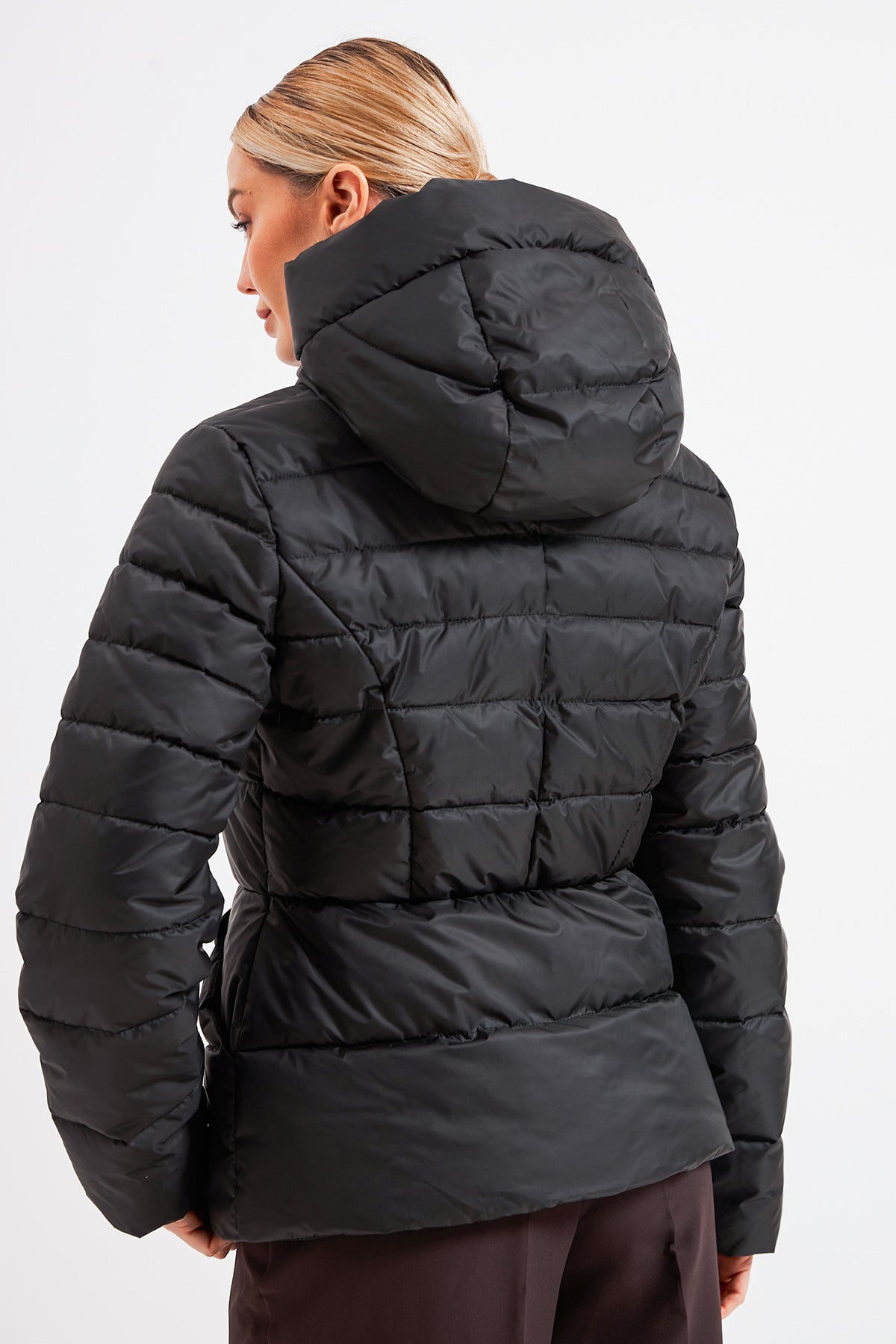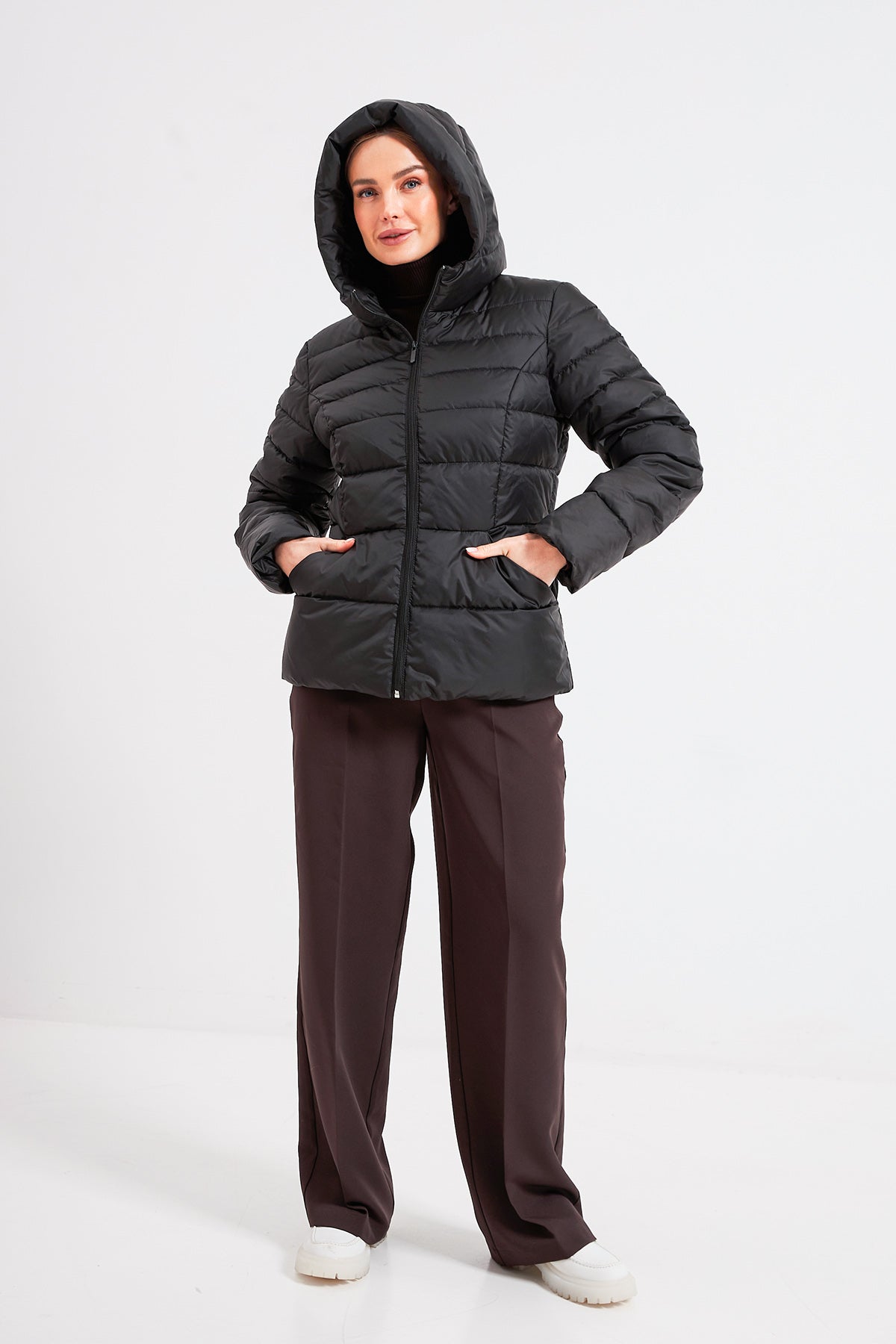 Короткий фасон візуально подовжує ноги, а продумана посадка дозволяє комфортно одягати під куртку об'ємні худі чи светри, створюючи стильні багатошарові образи.
