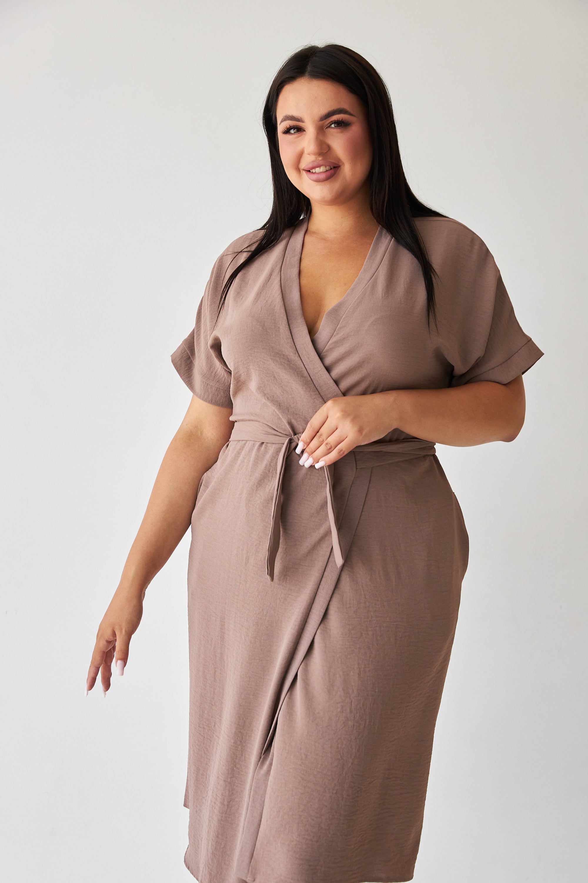 Посадка: регульований фасон із запахом — завдяки поясу ви зможете підкреслити талію або носити сукню більш вільно, обираючи посадку відповідно до настрою.