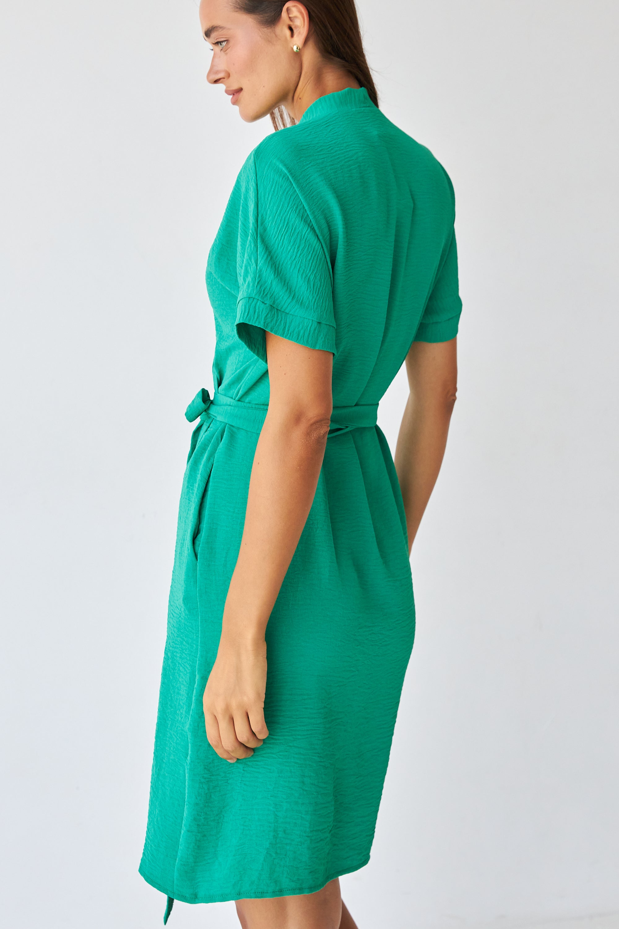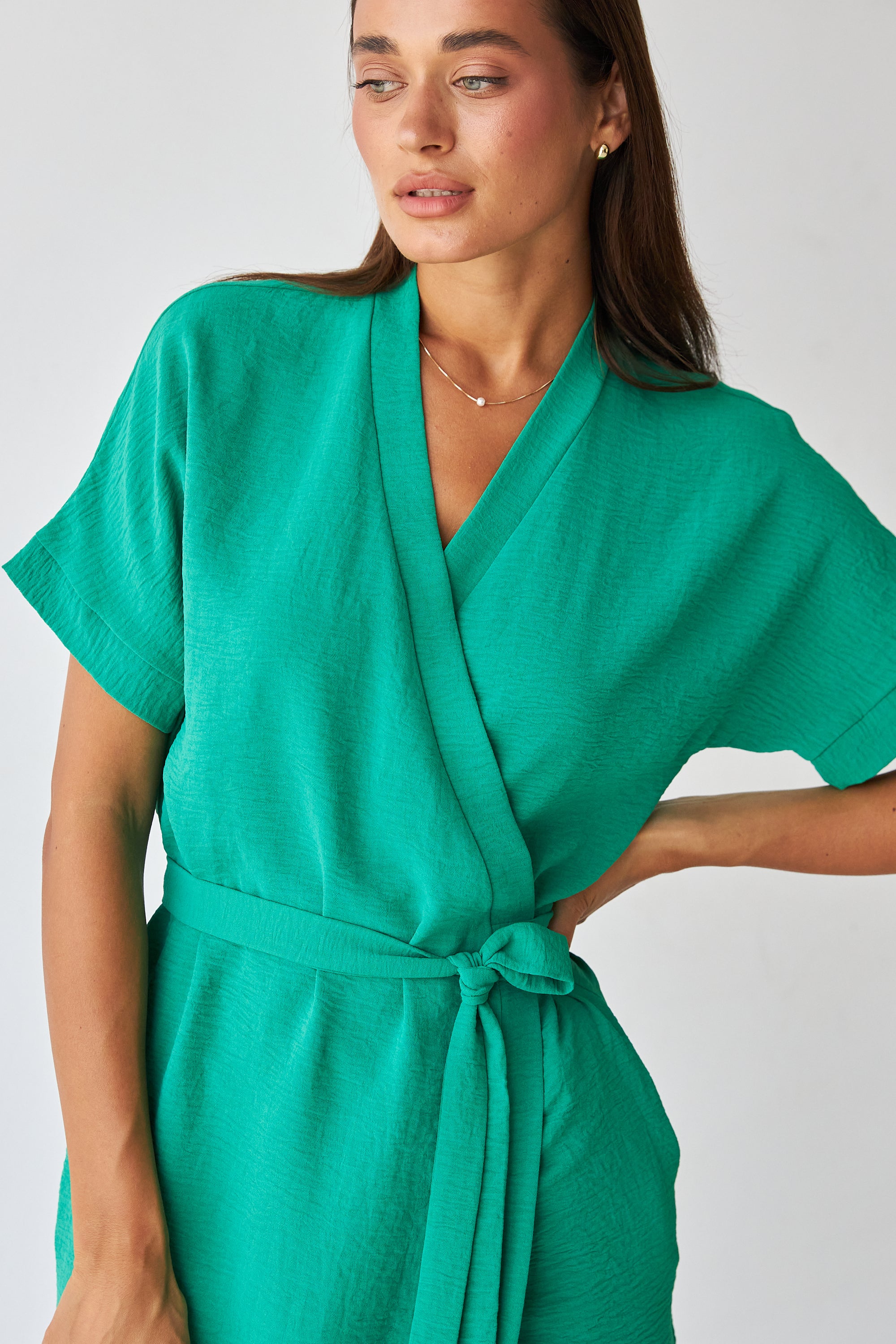 Інтегрований пояс у тон тканини — створює елегантний акцент на талії
