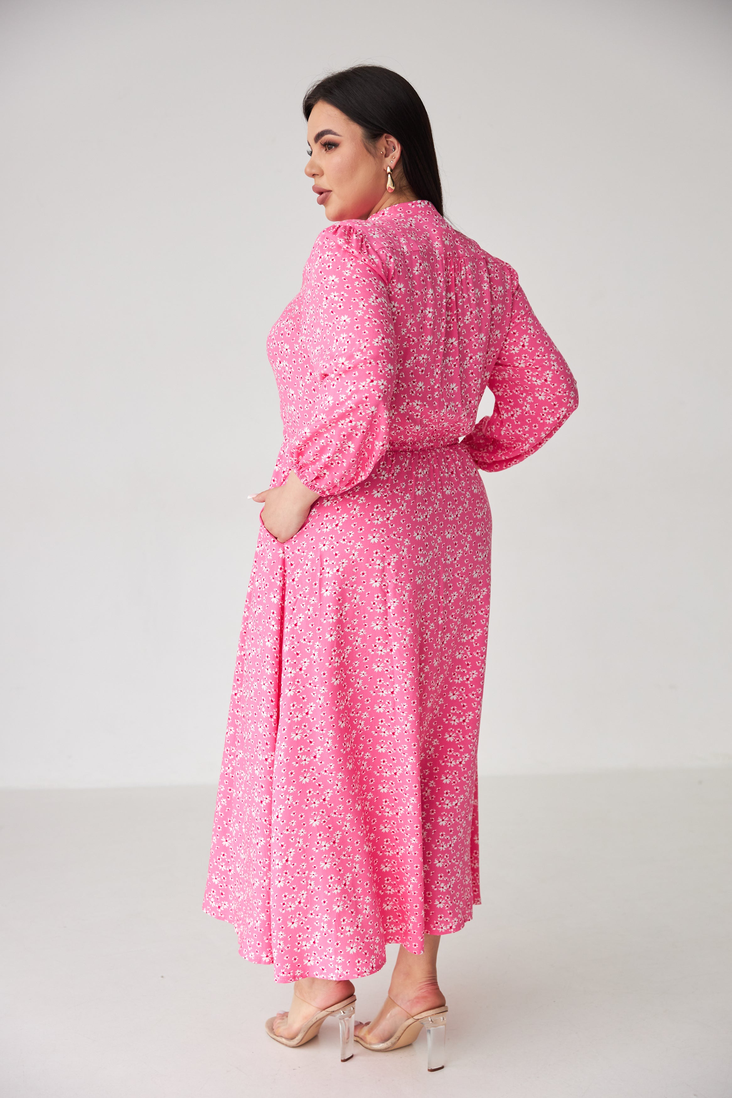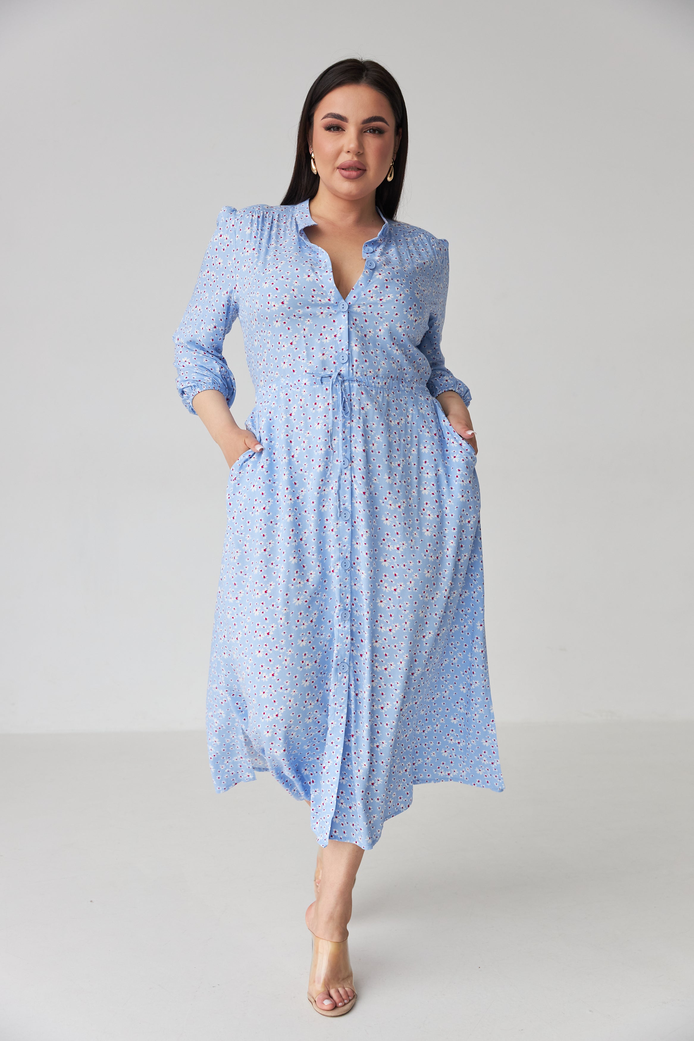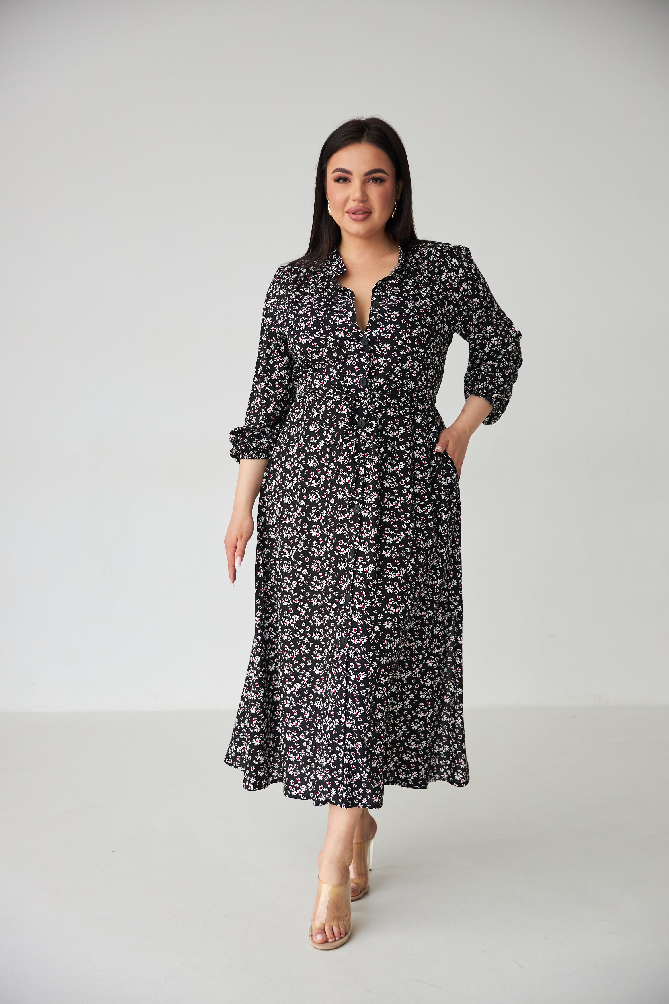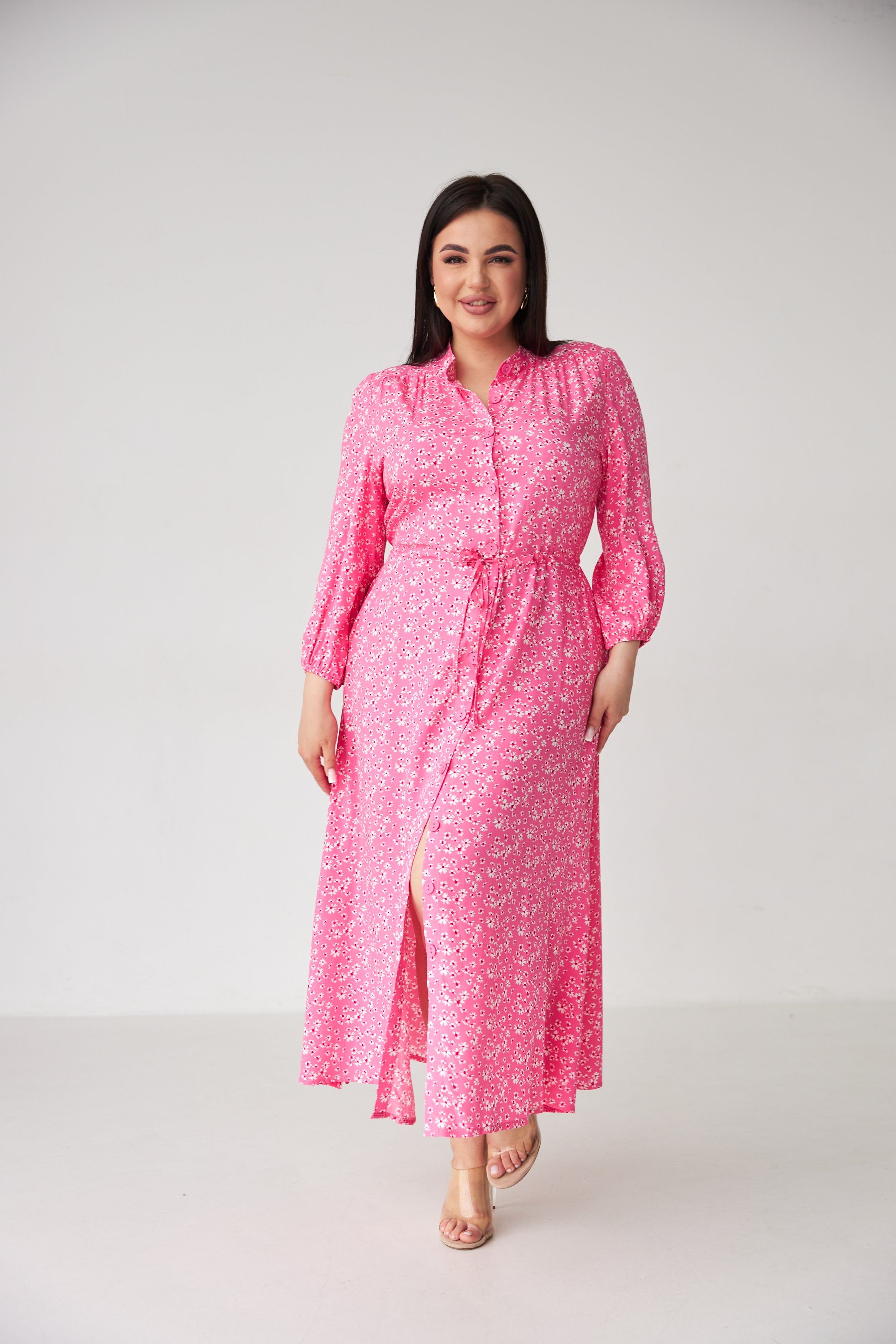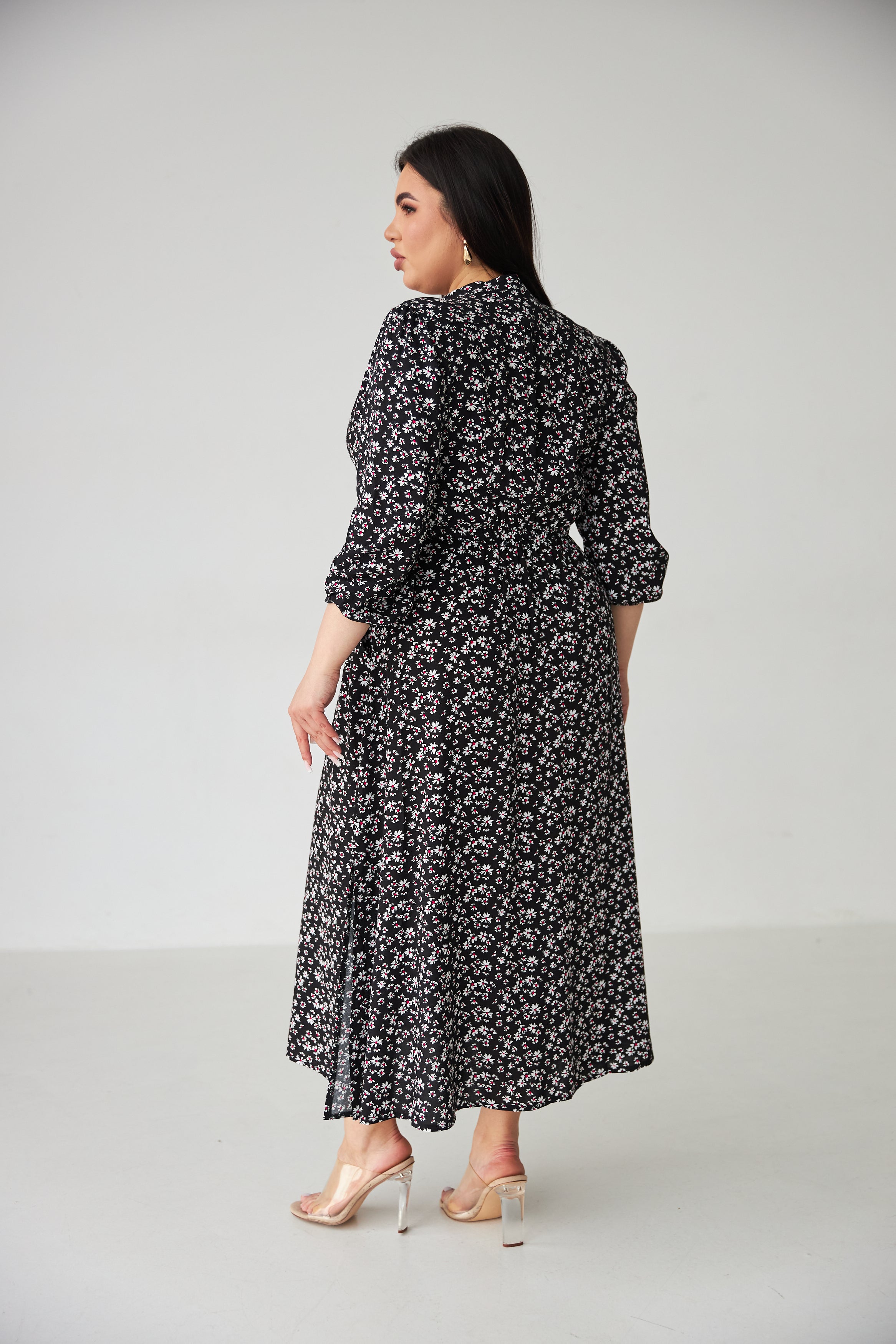 Довжина максі — елегантно спадає по фігурі, підходить як для підборів, так і для зручних балеток.