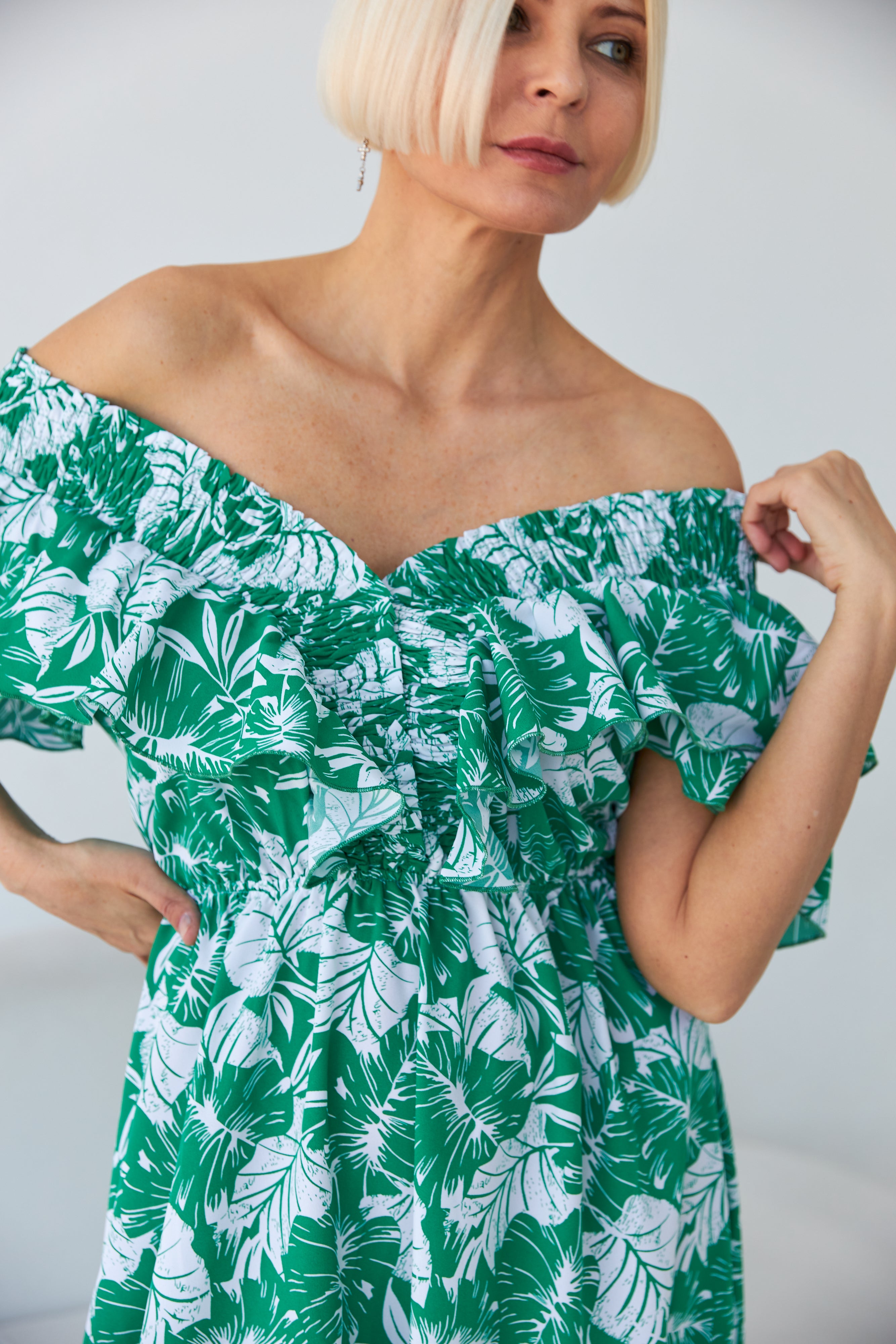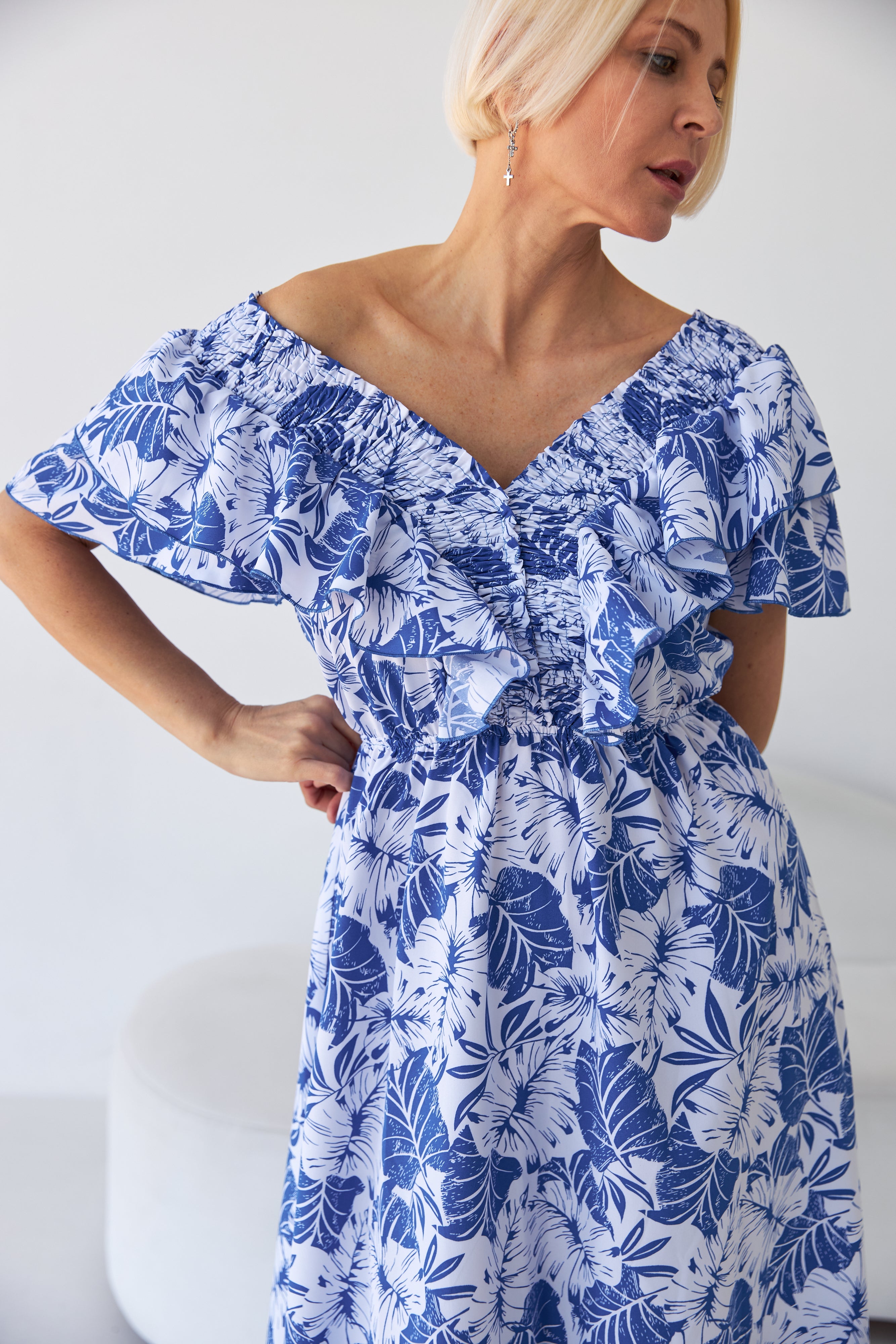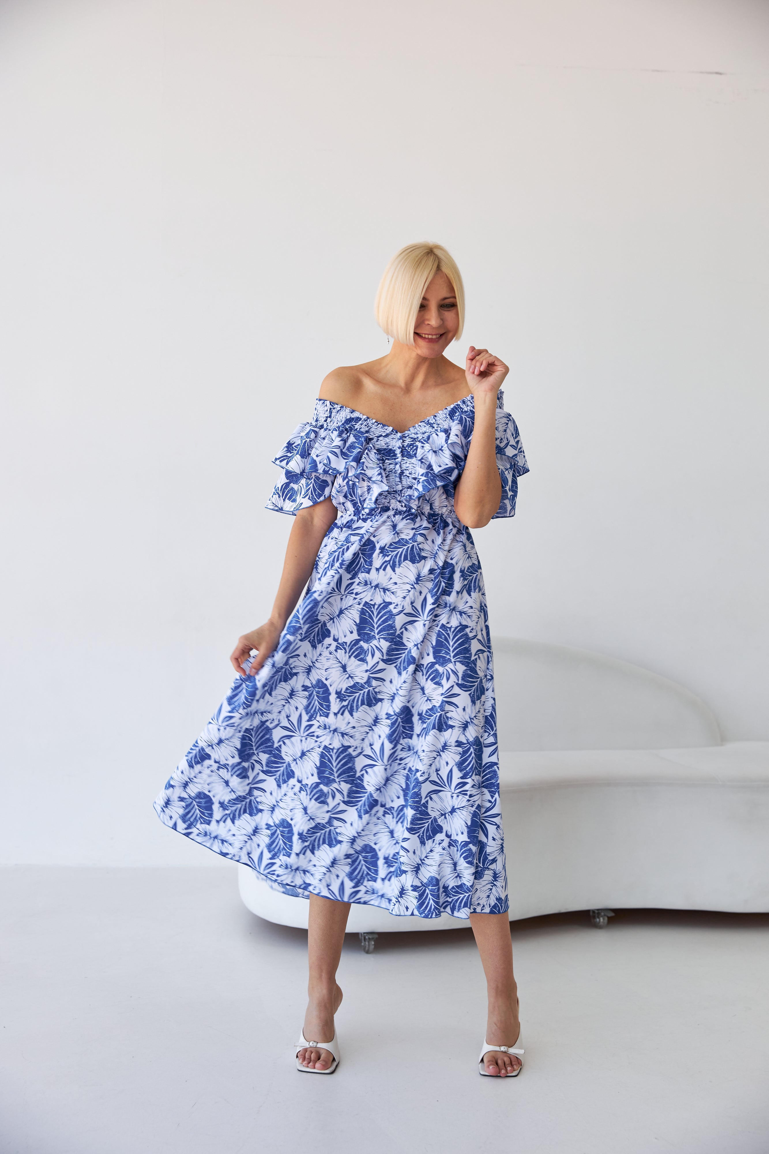 Сукня виглядає стильно як з кедами, так і з сандалями чи елегантними туфлями.