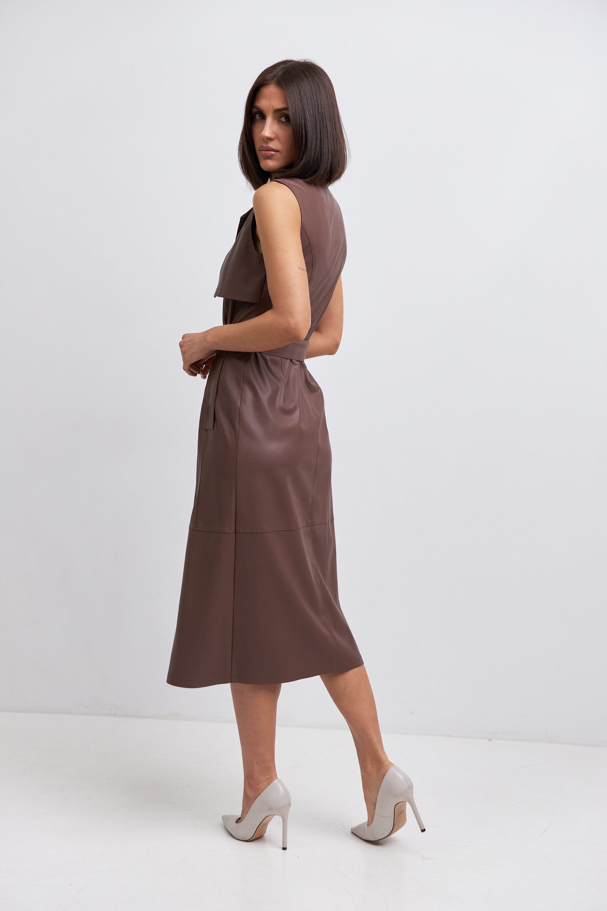 Ефектна сукня без рукавів у стилі тренча — must-have для модниць, які цінують сучасний стиль і сміливі образи.