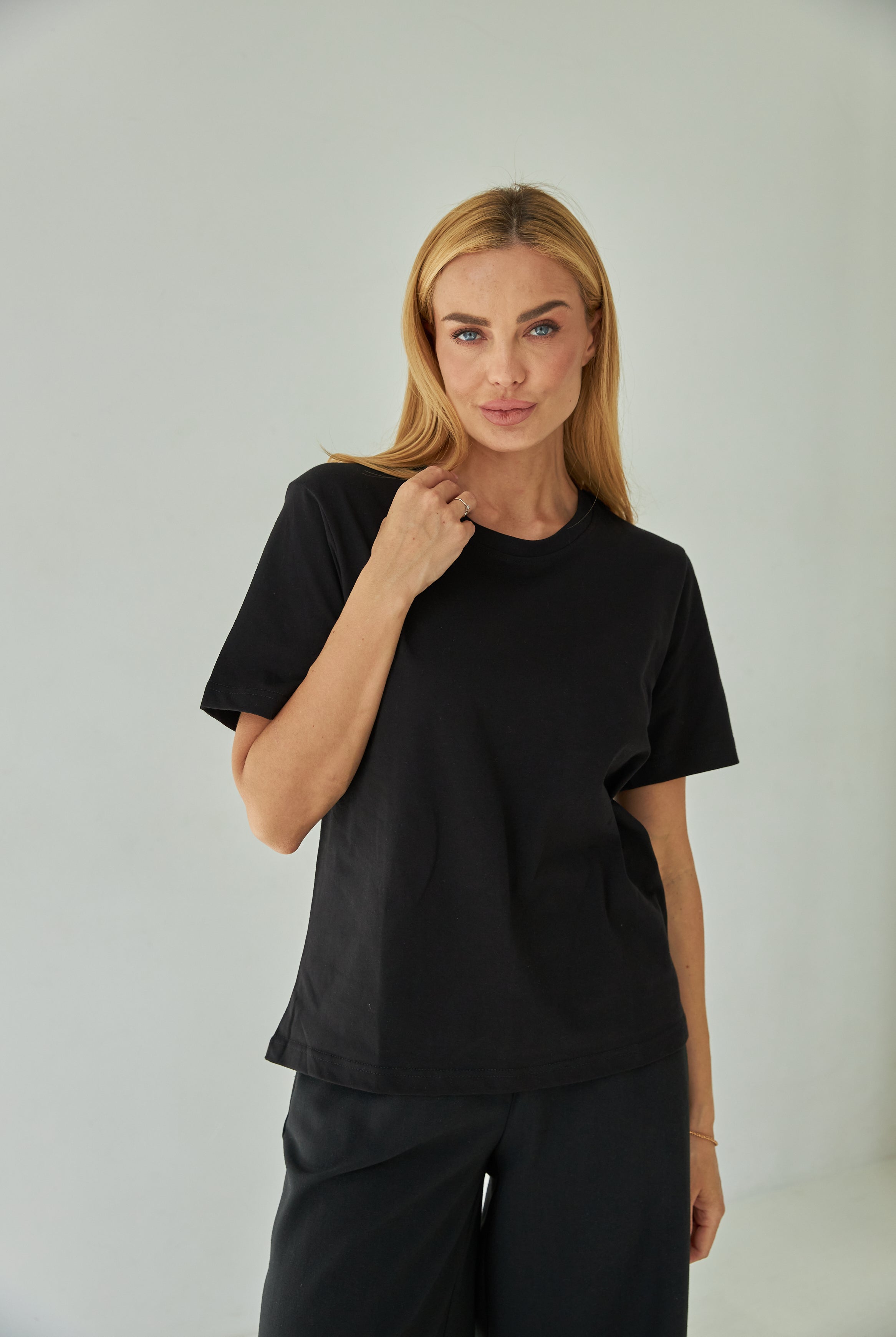 Матеріал: костюмна тканина з легким стрейчем — тримає форму, при цьому м’яка та приємна до тіла