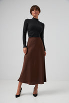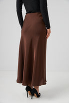 Ця елегантна спідниця максі додасть розкоші та витонченості Вашому гардеробу.Вона м'яко струмує по фігурі, створюючи привабливий силует. Головна особливість — довжина максі та гладка, блискуча шовкова текстура, що робить її ідеальною для особливих подій або для надання вишуканості повсякденному образу. Завдяки коричневому (шоколадному) кольору та демісезонній (осінній) сезонності, спідниця є універсальною основою для стильних образів: поєднуйте її з об'ємним светром або худі для контрасту, з елегантною блузою чи топом для вечірнього виходу, доповнюючи образ піджаком або кардиганом.