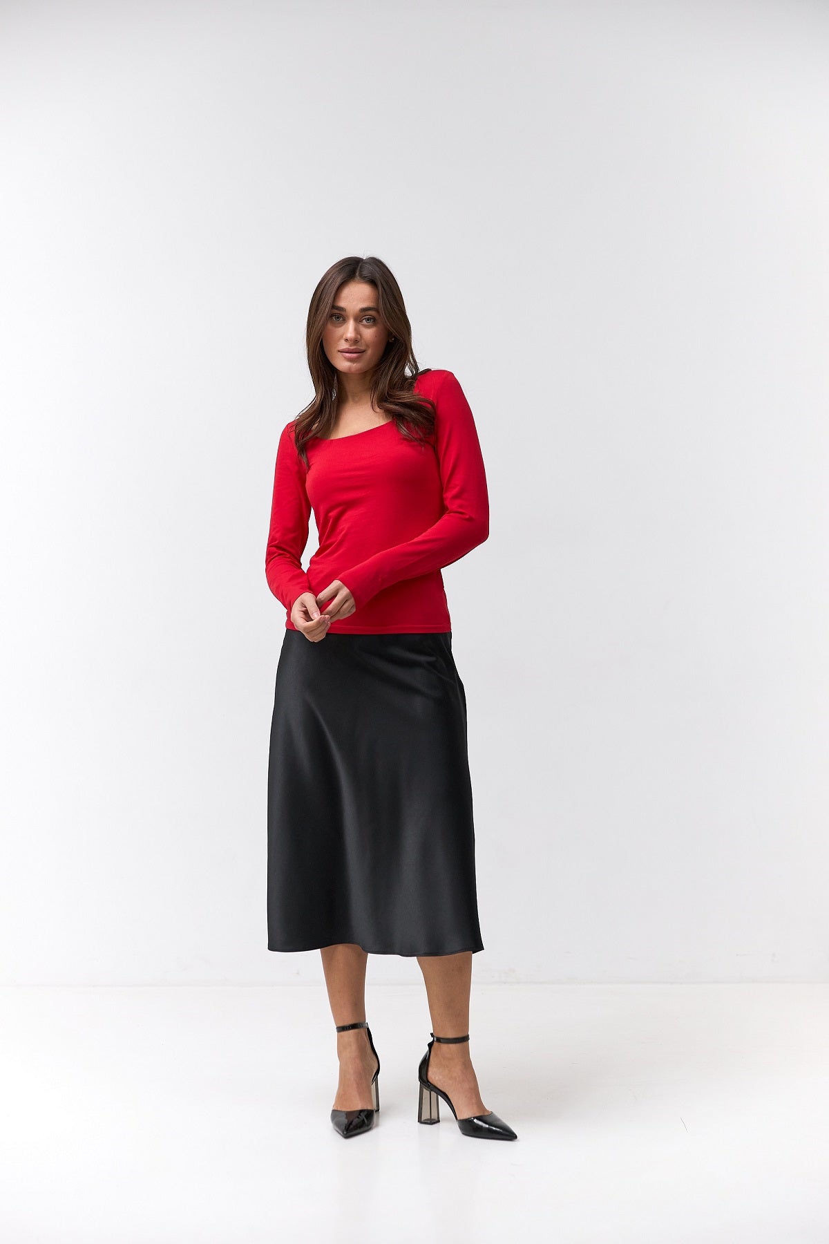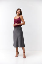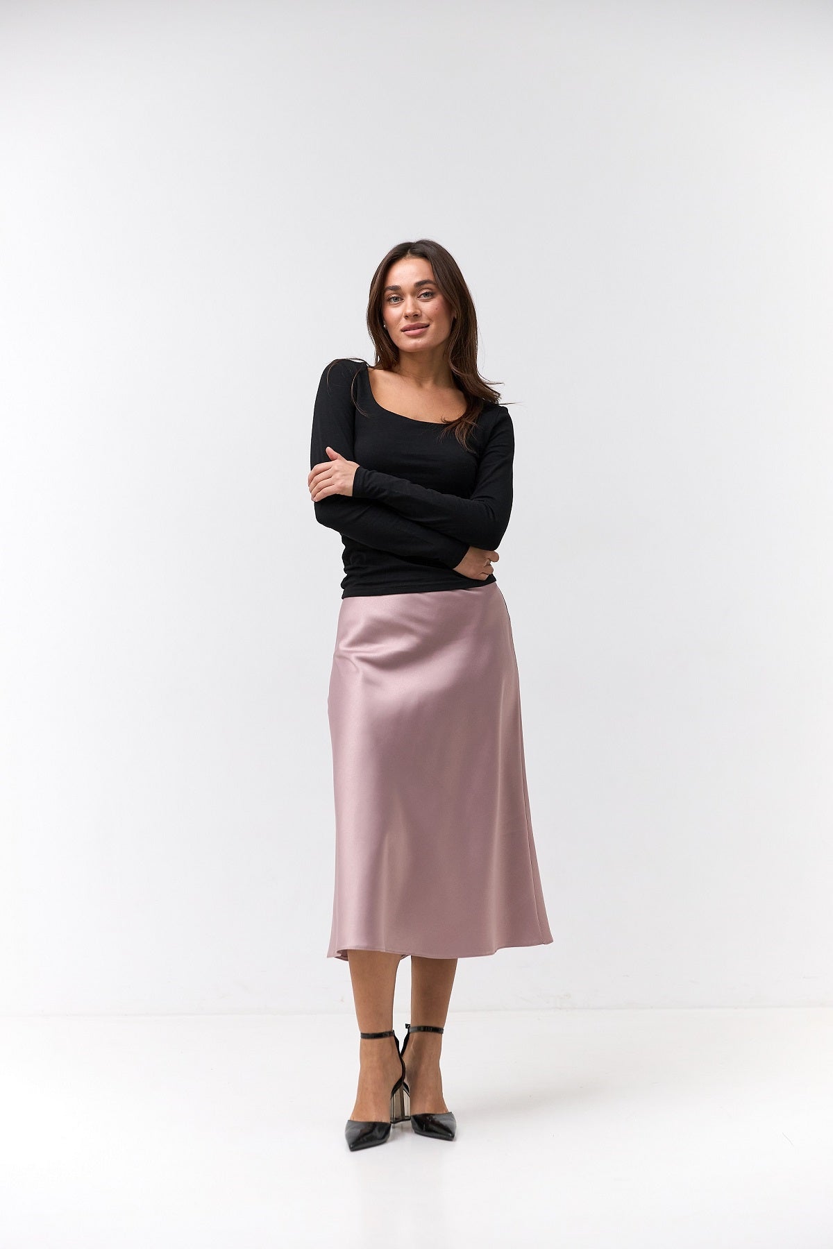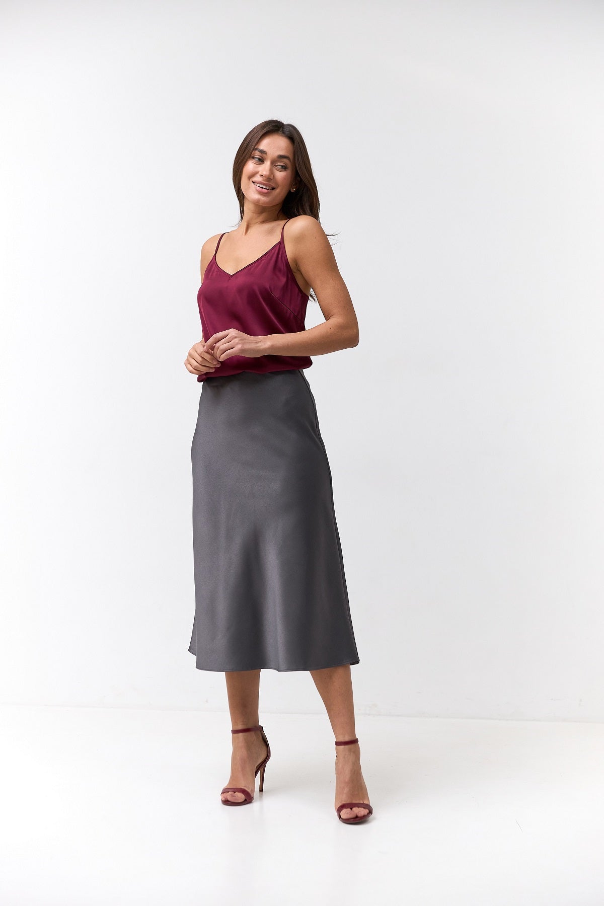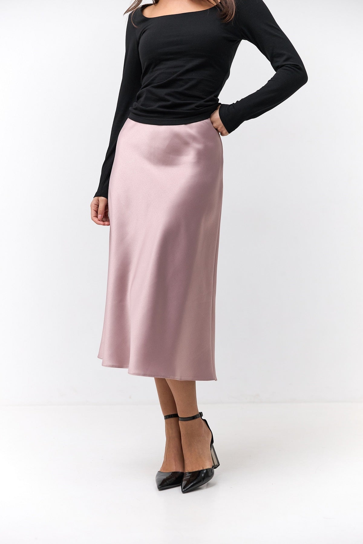 Довжина міді додає вишуканості, роблячи модель універсальною як для повсякденних луків, так і для святкових подій.