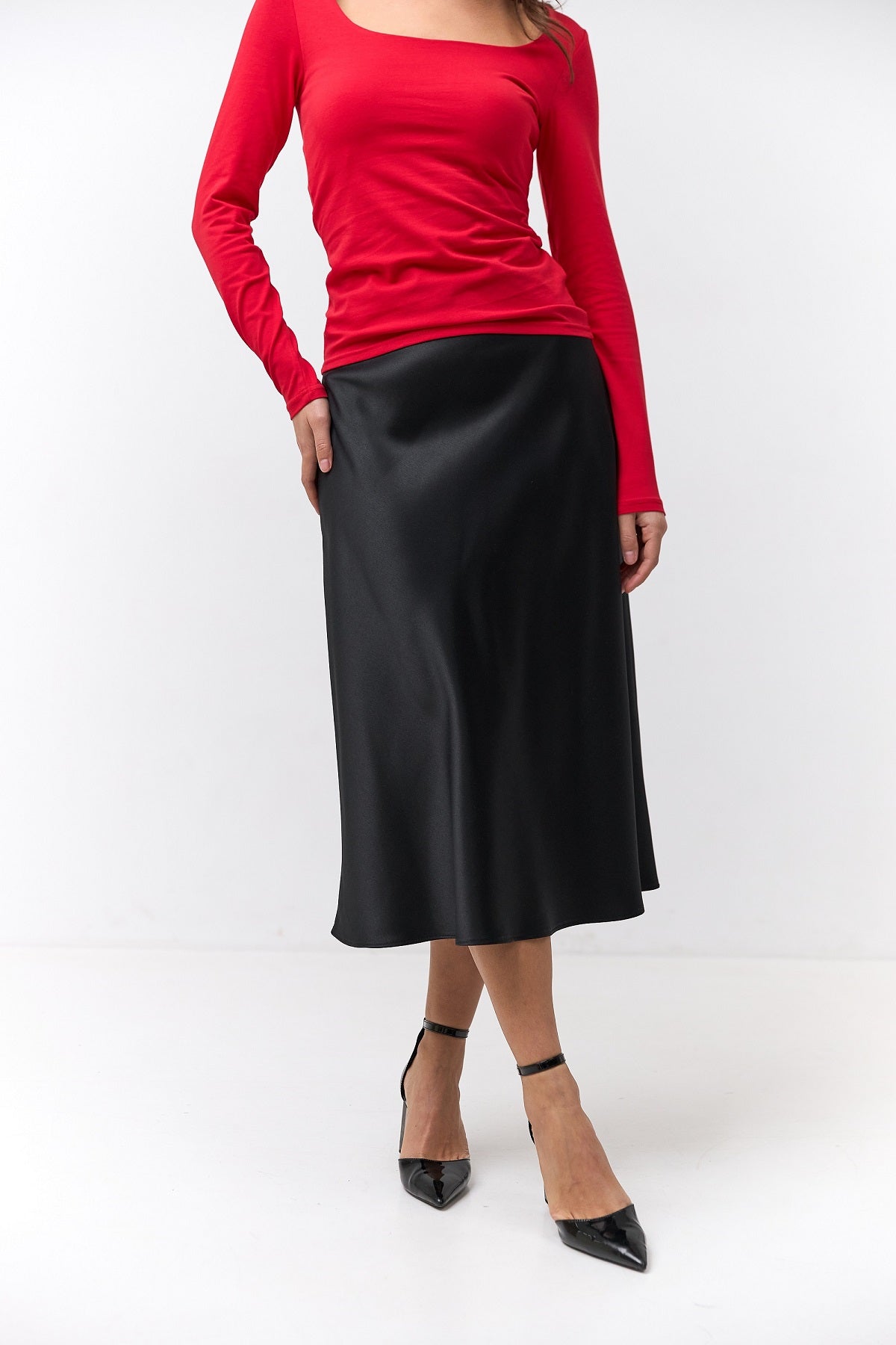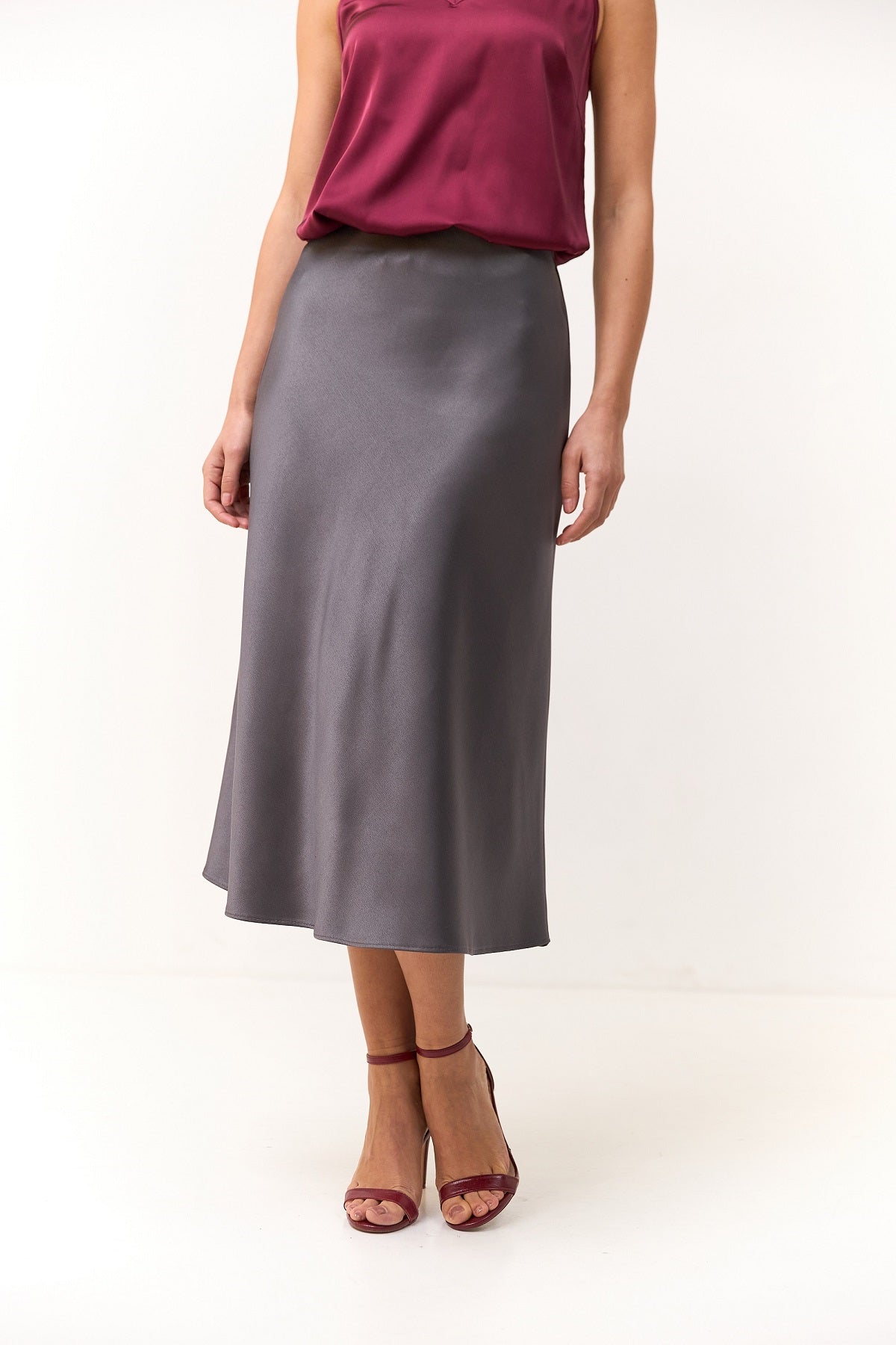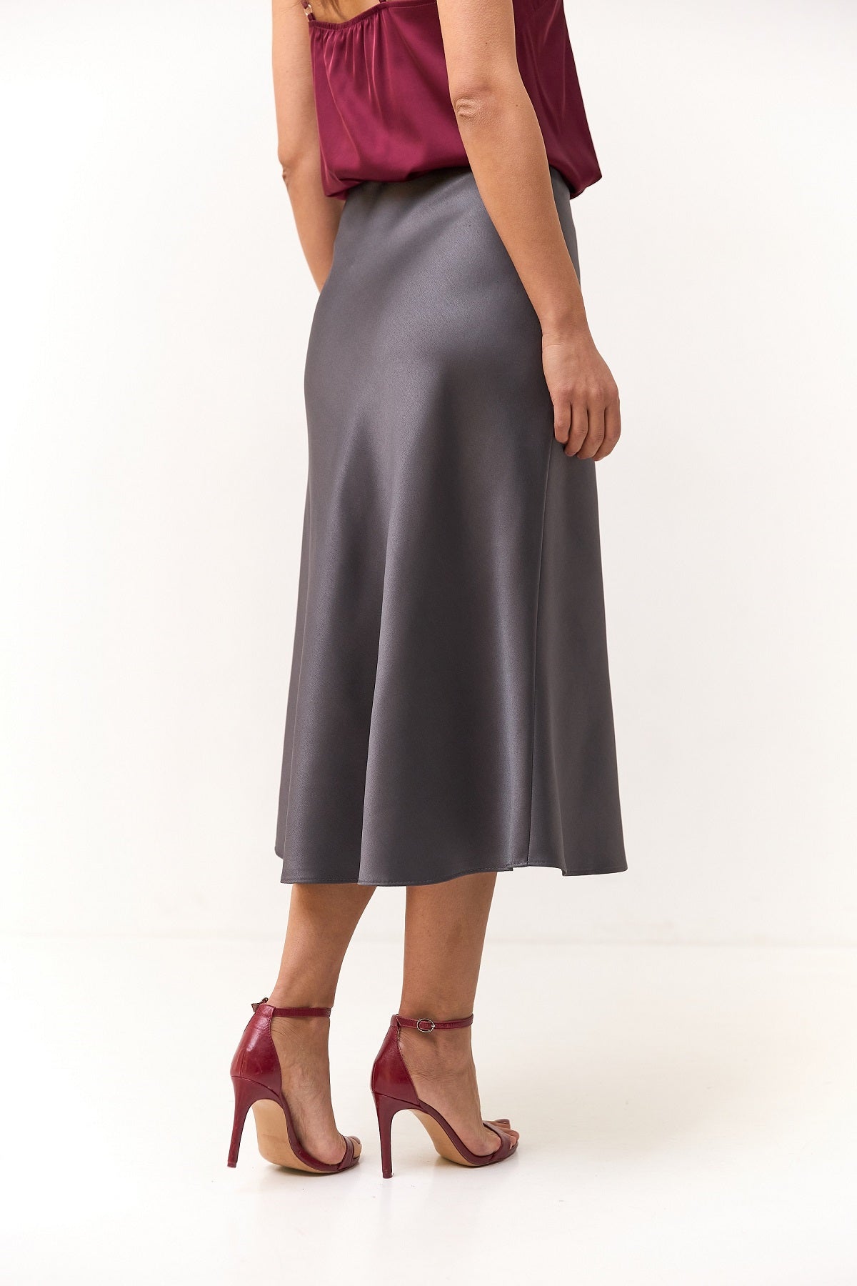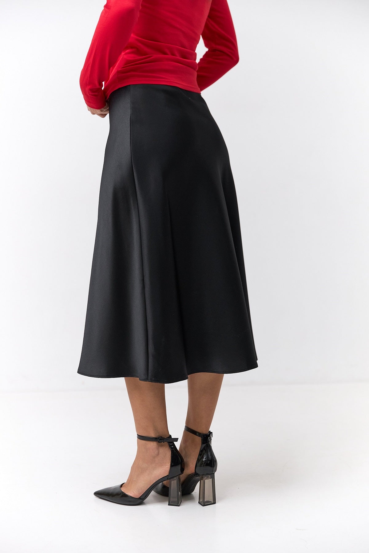 Ця витончена спідниця міді з атласу Манго — втілення елегантності та жіночності.