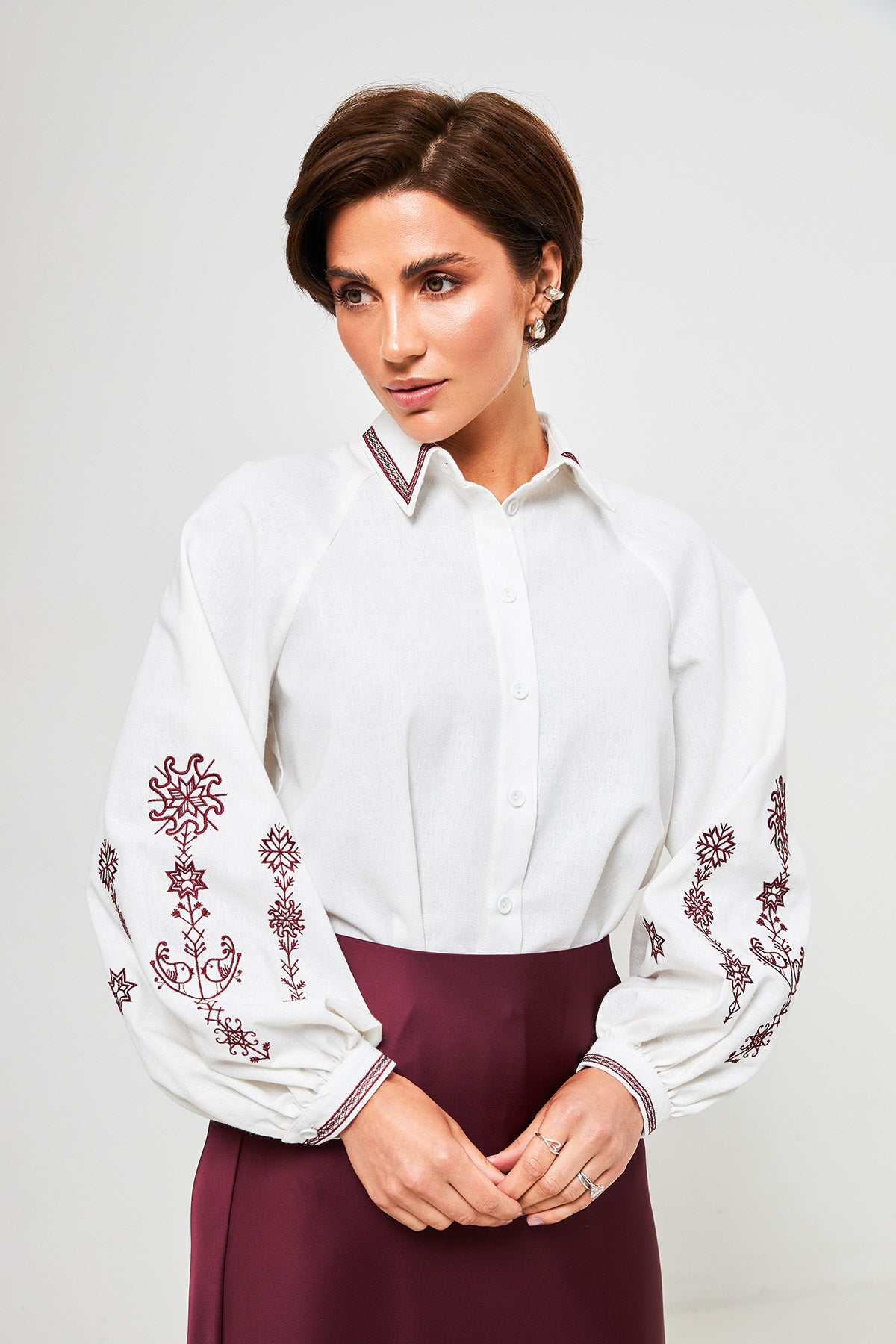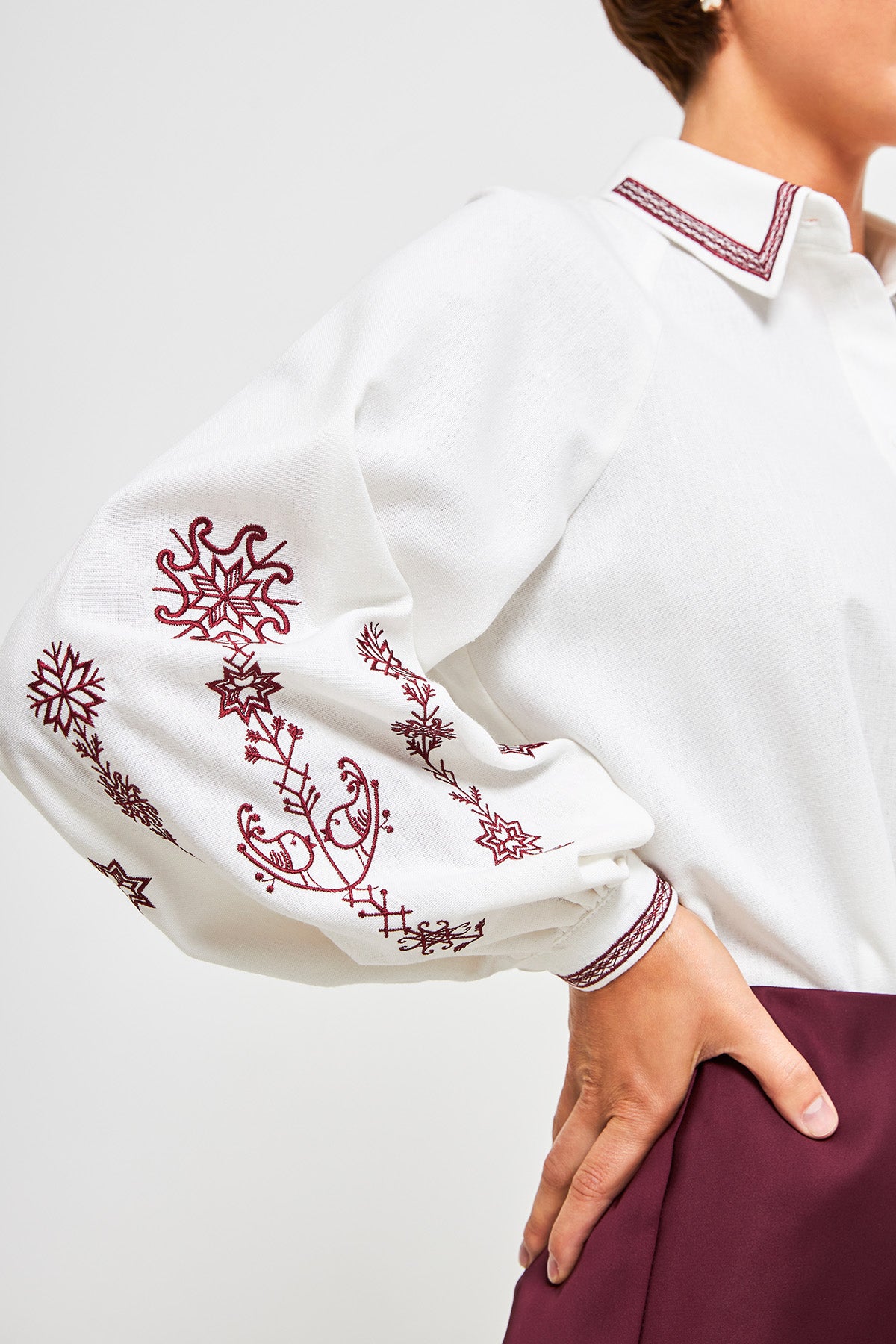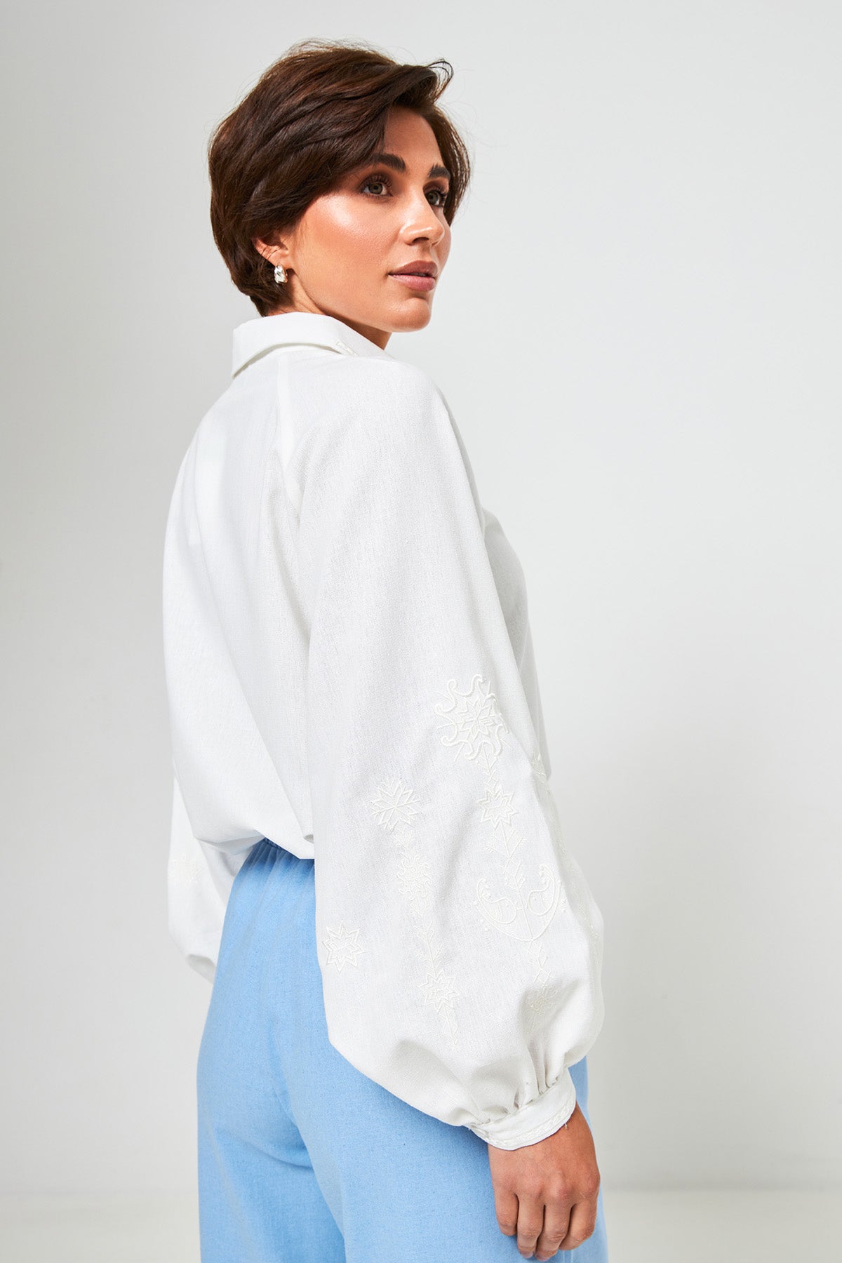 - Довжина рукава: вимірюється по зовнішній стороні, злегка зігнутою в лікті руки до зап'ястя.