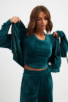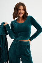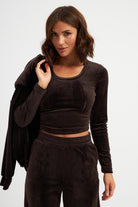 Подовженний топ з довгим рукавом з велюру