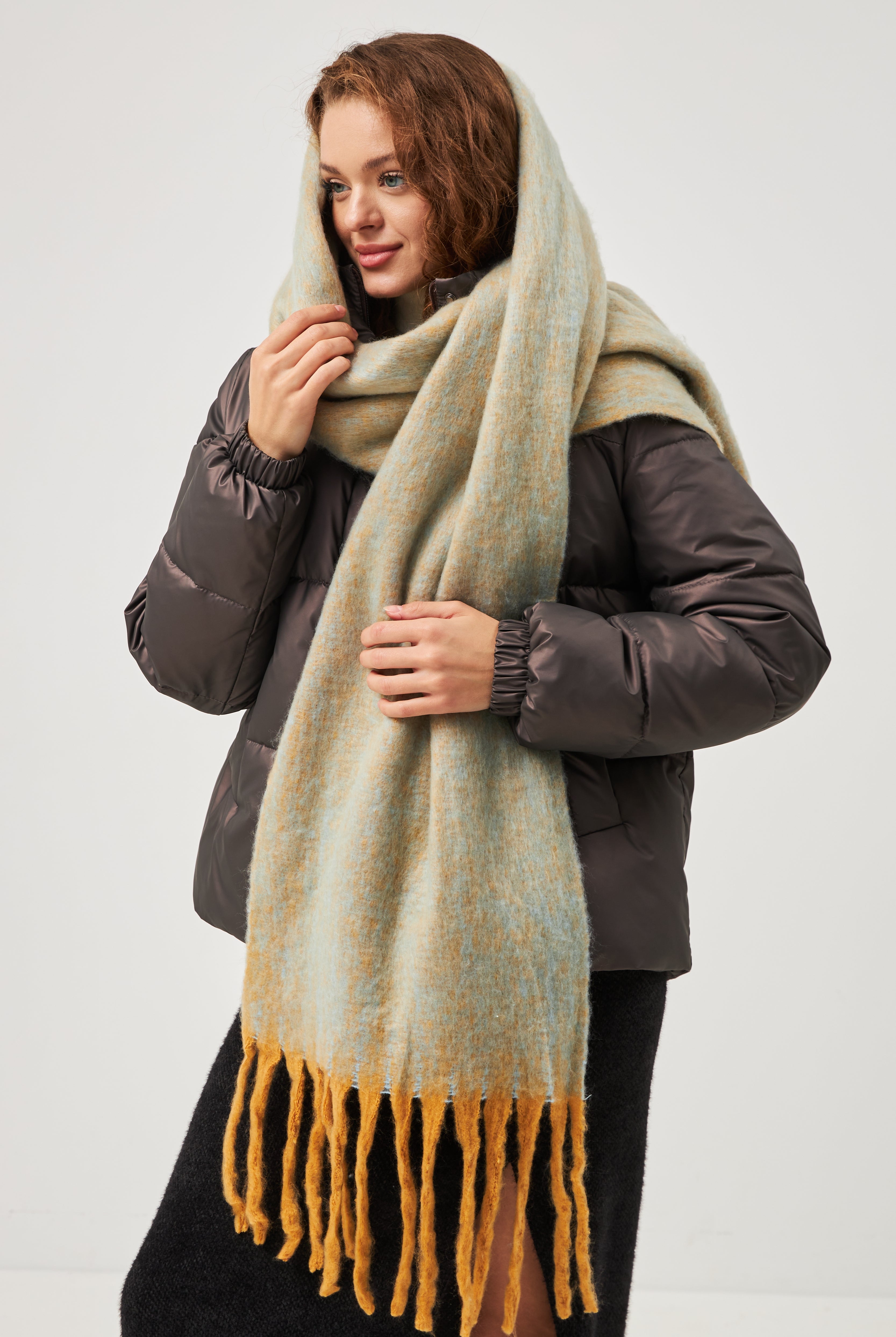 Додайте стильного акценту до свого зимового образу з кашеміровим шарфом від Wear Me. Ця модель поєднує в собі затишну теплоту кашемірової суміші та класичний, завжди актуальний візерунок "клітинка". Об'ємна текстура "дреди" робить шарф м'яким та повітряним, а стримані кольори дозволяють легко інтегрувати його як у діловий, так і у повсякденний гардероб. Довга форма забезпечує різноманіття варіантів носіння, а м'яка бахрома по краях додає завершеності.