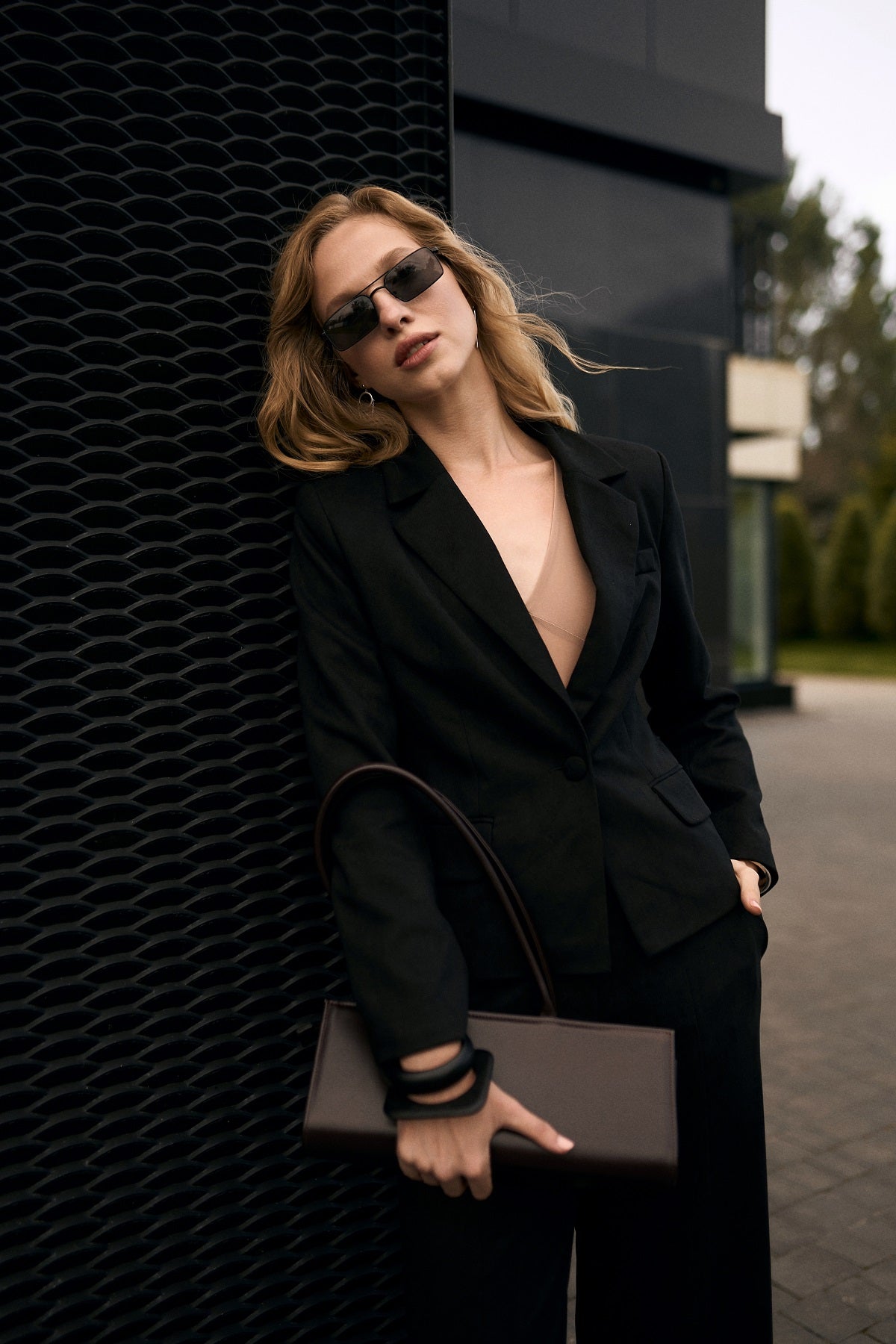 Дизайн: Асиметрична застібка — це не лише оригінальний елемент, а й можливість створювати різні образи. Застібаючи жакет, ви створюєте витончений та елегантний силует, а розстебнувши, надаєте образу легкості та невимушеності.