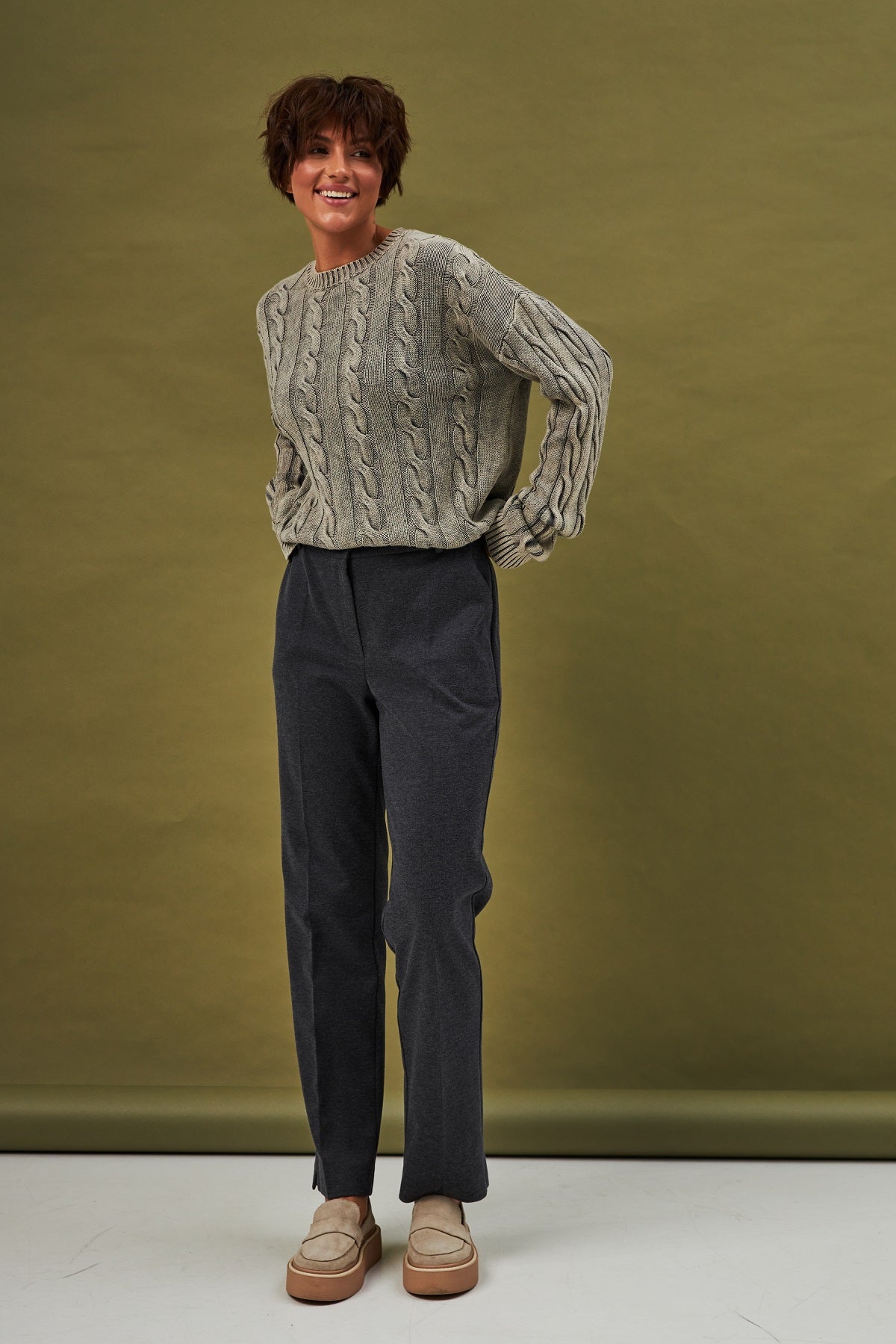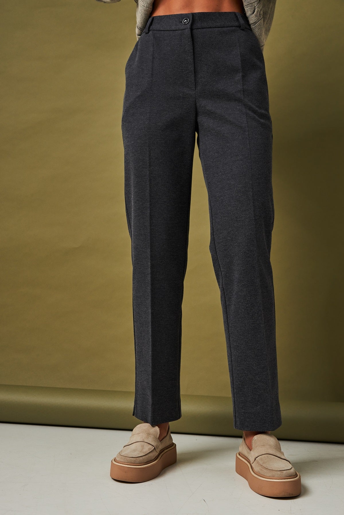 Ці класичні та елегантні брюки додадуть Вашому образу строгості й витонченості, ставши незамінною частиною офісного та повсякденного гардеробу в холодну пору року. Виготовлені з високоякісної "Костюмки діагональ". Завдяки віскозі вони м'які, а еластан забезпечує комфортну посадку. класичний, витончений крій і щільна костюмна тканина, що робить їх ідеальними для зимової сезонності та офіційного стилю.