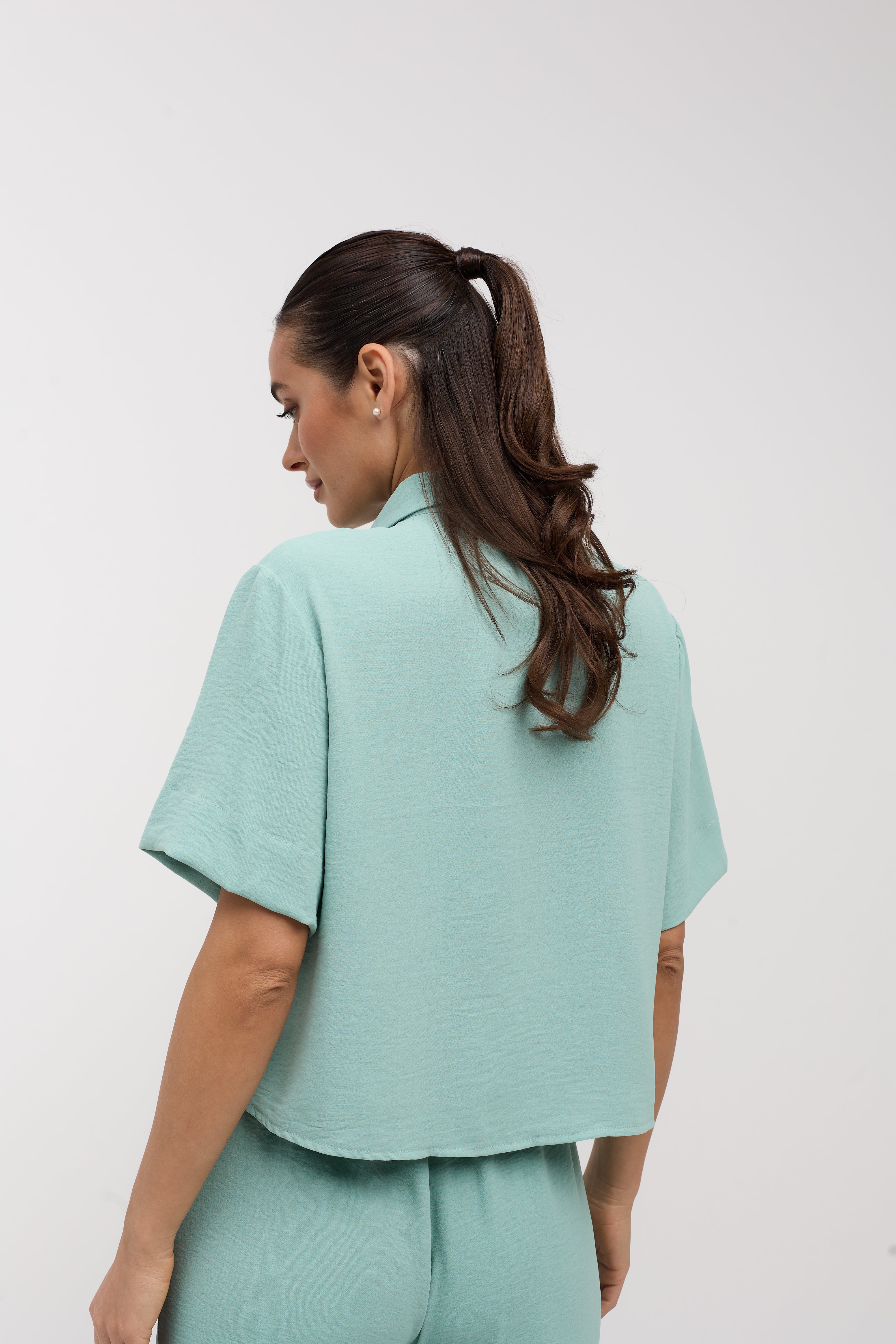 Вкорочена сорочка з коротким рукавом з американського крепу