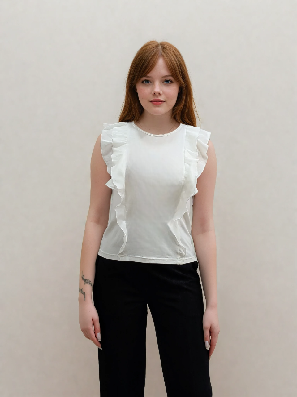 Ця блуза створена для тих, хто цінує ніжність, легкість і витонченість. Рюші додають образу жіночності та шарму, створюючи м’який, повітряний силует. Ідеальний варіант для побачення, офісу або стильного повсякденного образу.