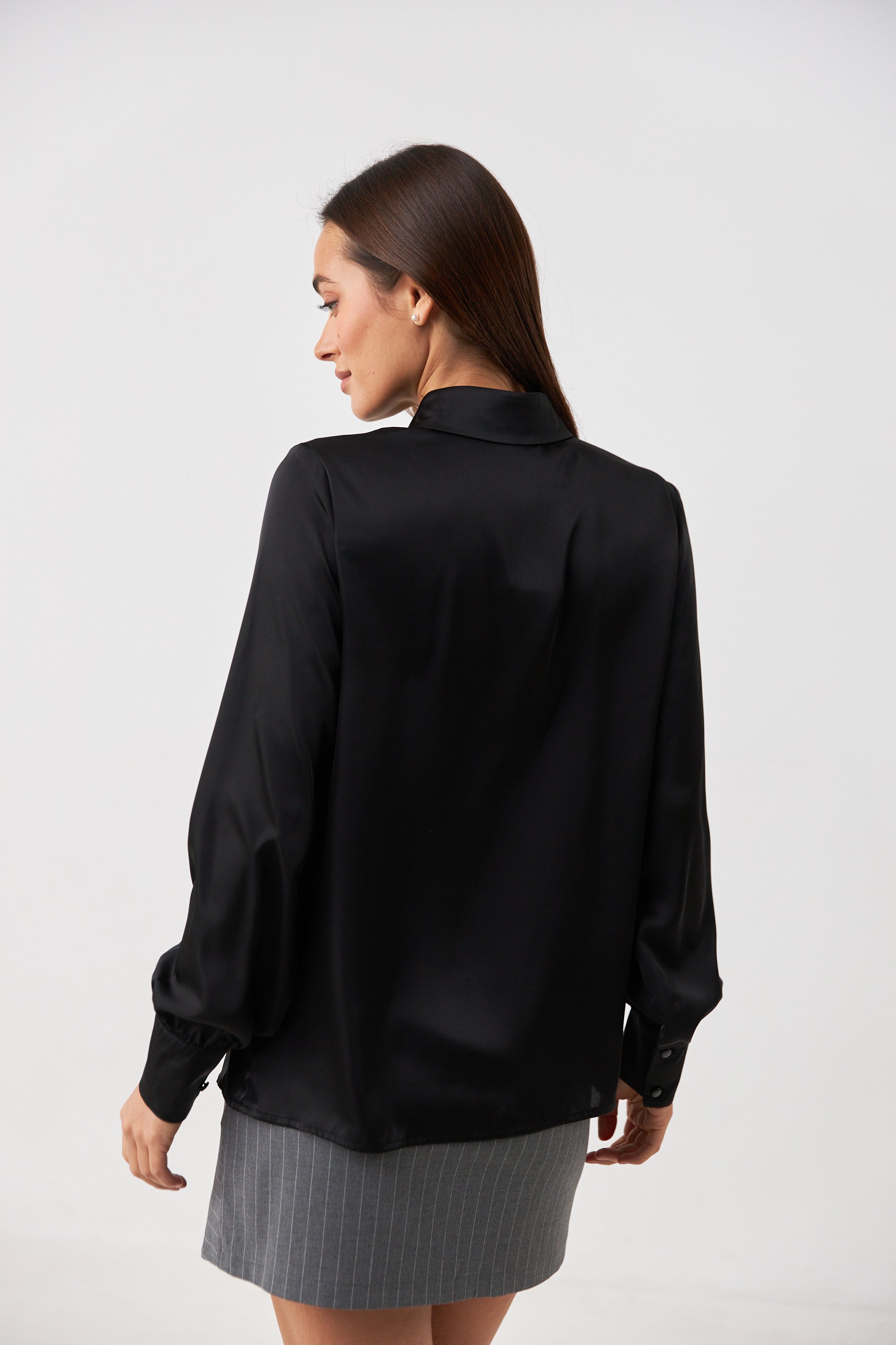 Елегантна блуза з армані з комірцем і вирізом-краплею. Легка, м’яка тканина з шовковистим блиском. Ідеальний вибір для офісу, зустрічей або вечірніх образів.