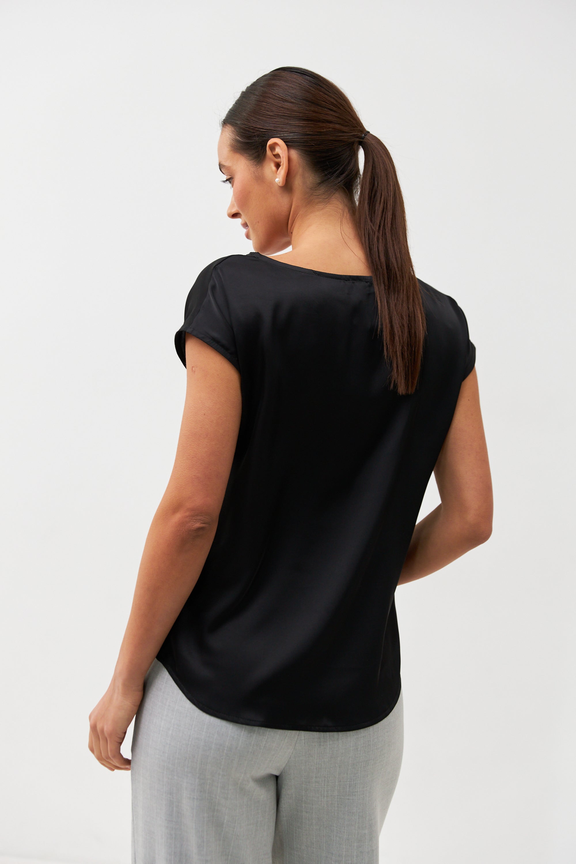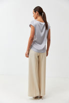 Лаконічна та елегантна блуза з ніжного шовку — ідеальний вибір для щоденних образів та особливих подій. Модель вільного крою з округлим вирізом горловини та короткими рукавами забезпечує комфорт та витонченість у кожному русі. Гладка фактура тканини приємна на дотик і дарує легкий блиск, що підкреслює жіночність силуету.