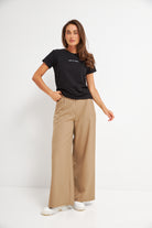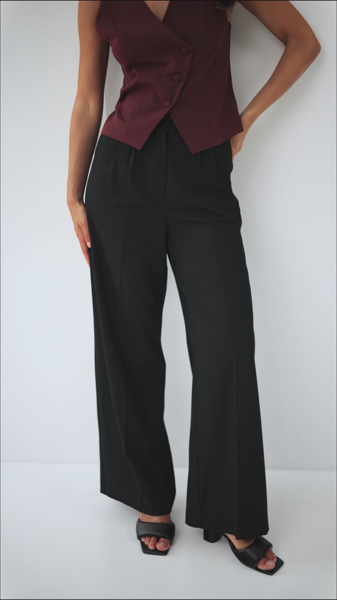 Брюки виготовлені з якісного костюмного полотна, яке добре тримає форму, не просвічує та комфортне у носінні протягом усього дня. Завдяки універсальному дизайну, модель легко поєднується з сорочками, жакетами, блузами, топами та навіть базовими футболками — для створення образів у стилях business, smart-casual чи minimal.