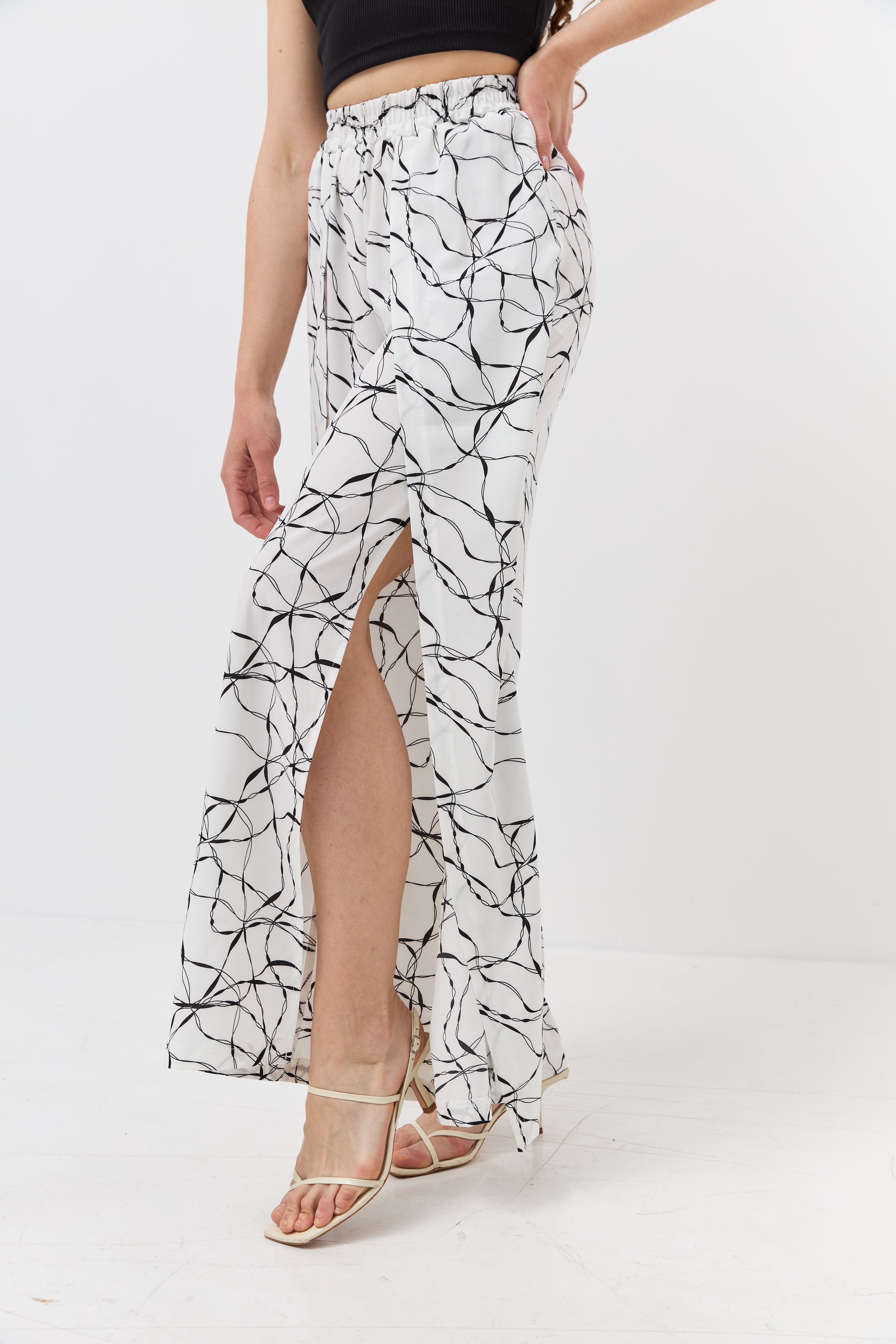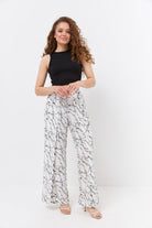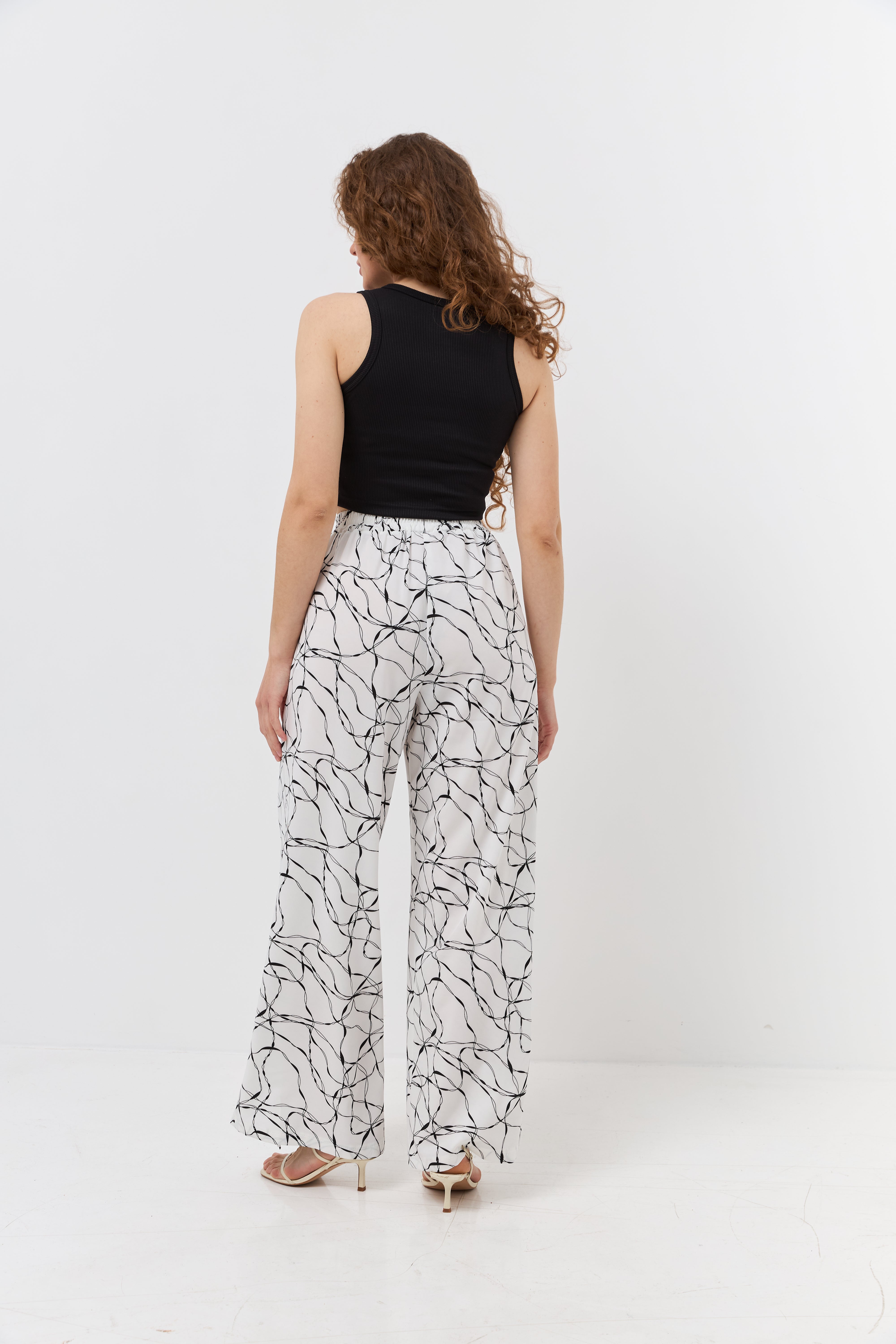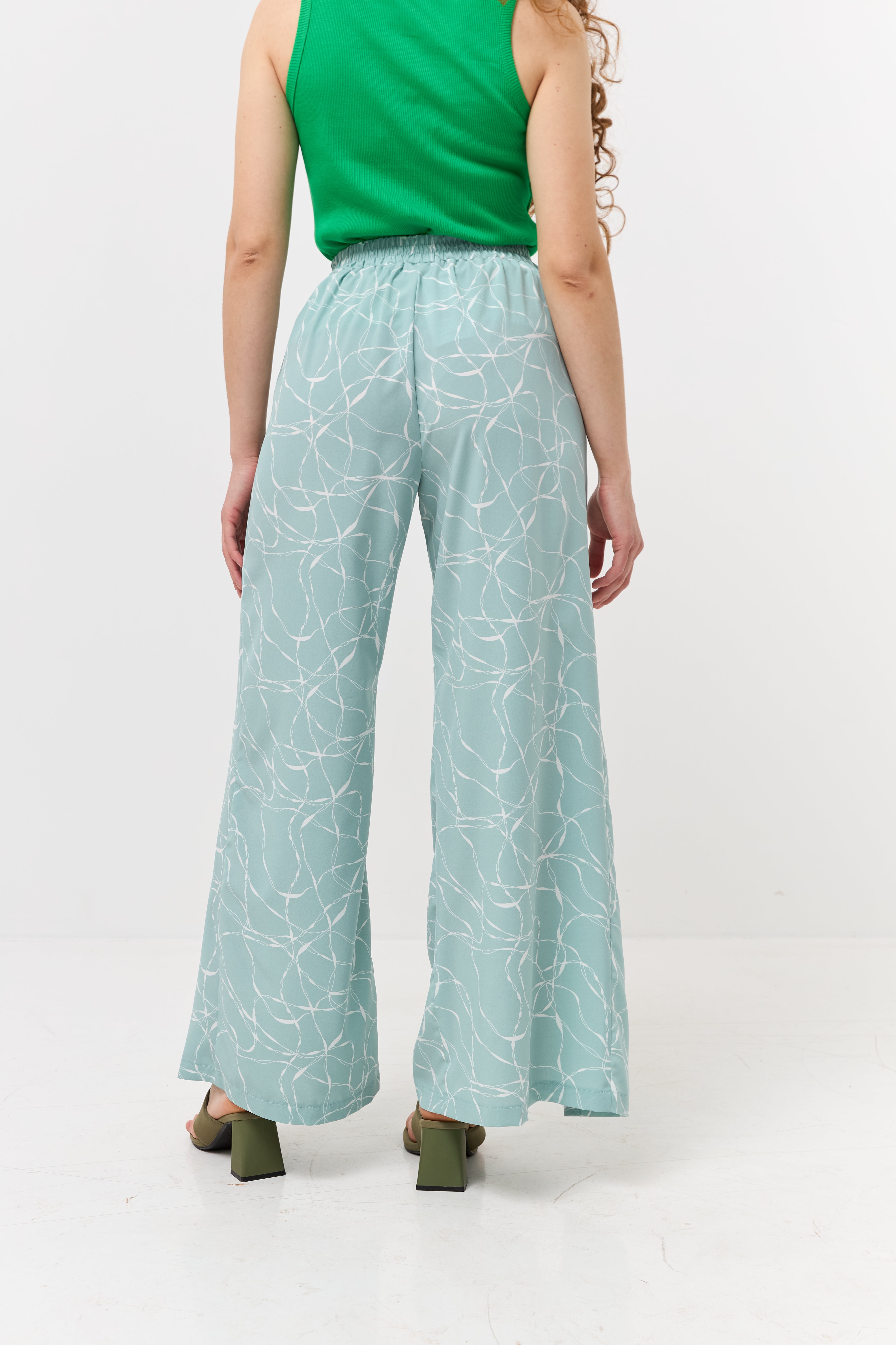 Легкі жіночі брюки палаццо з м'якого софту з абстрактним принтом.