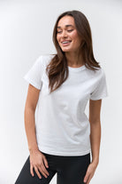 Класичний дизайн з круглим вирізом і короткими рукавами робить футболку універсальною для будь-якого образу — від спортивного до кежуал.