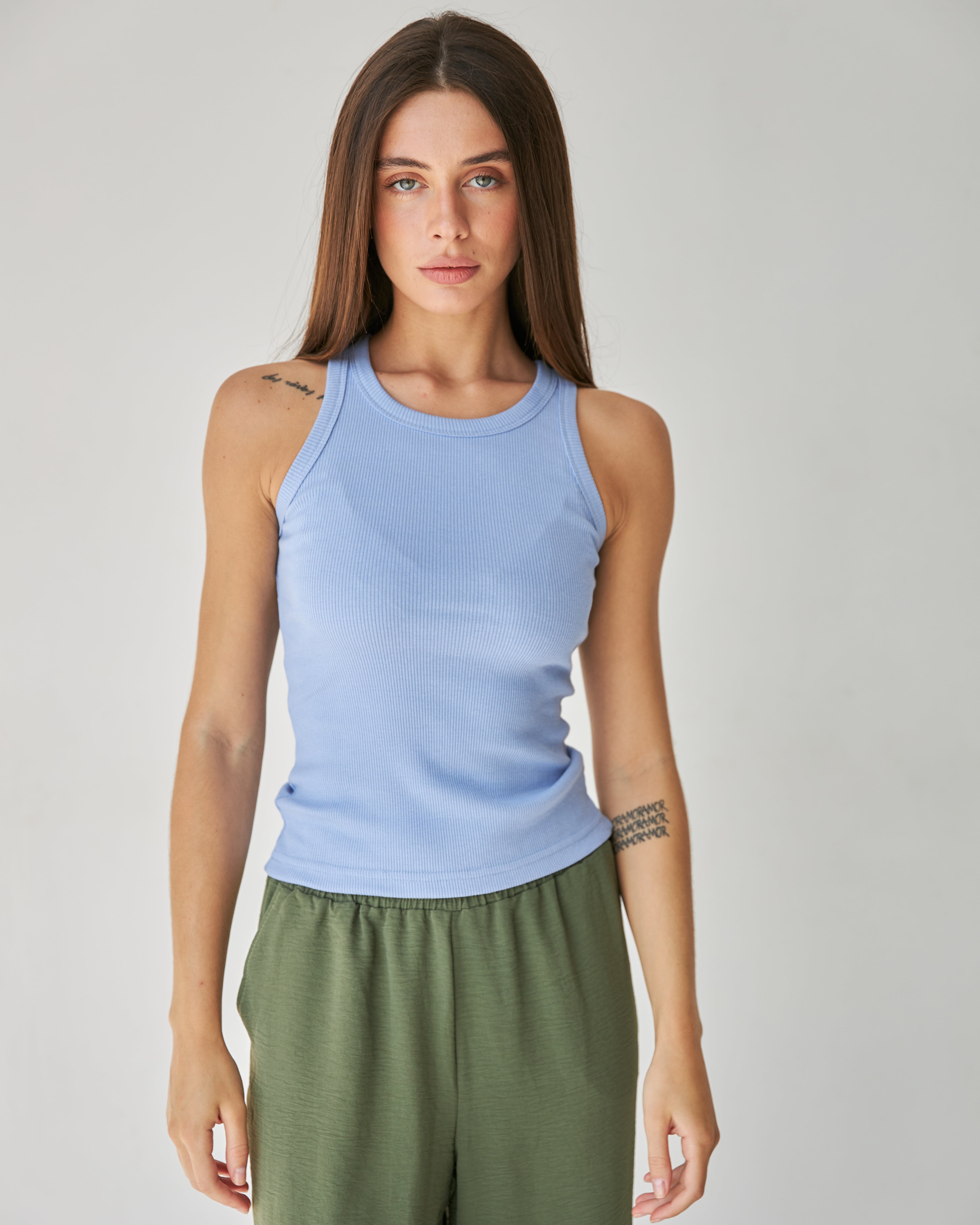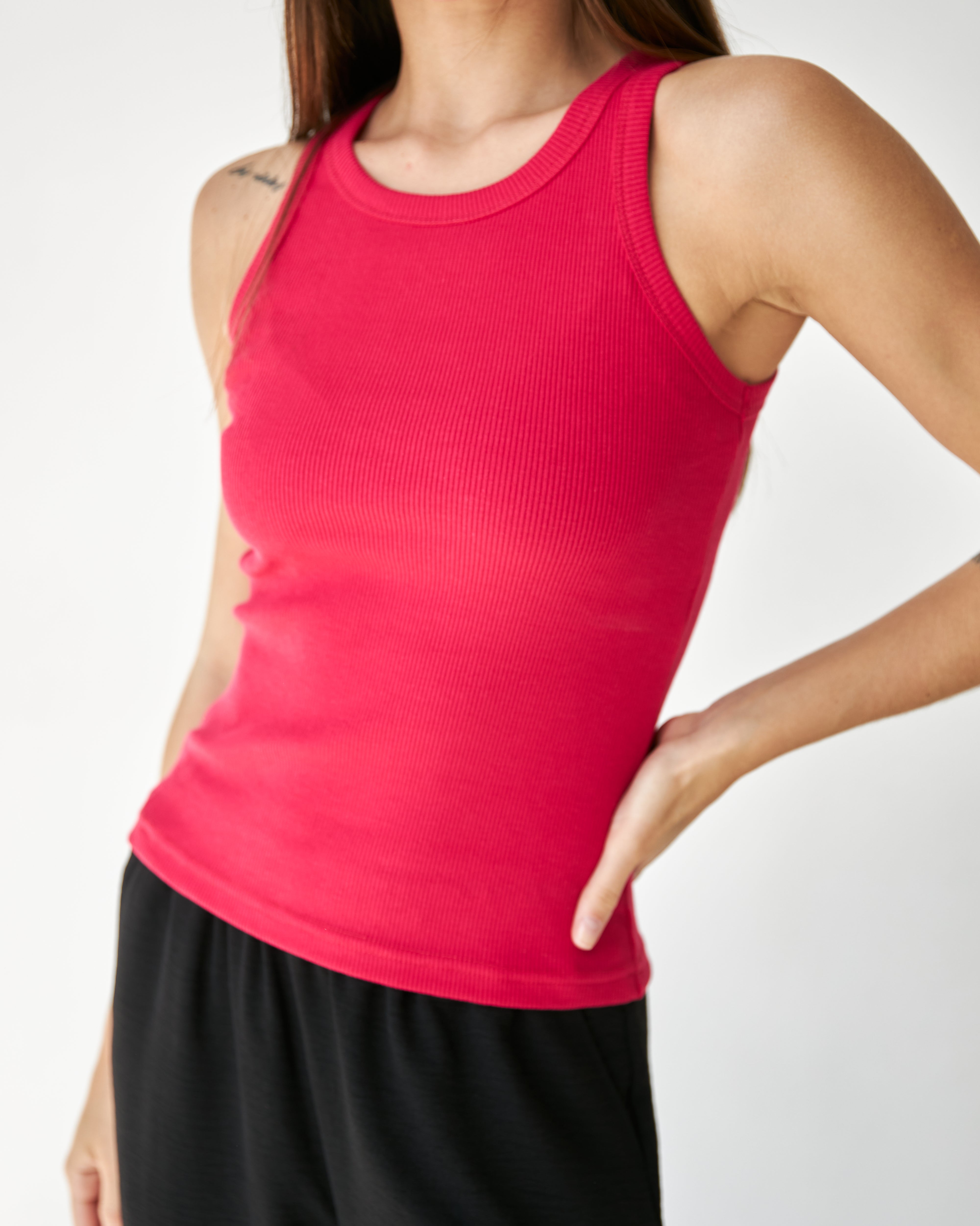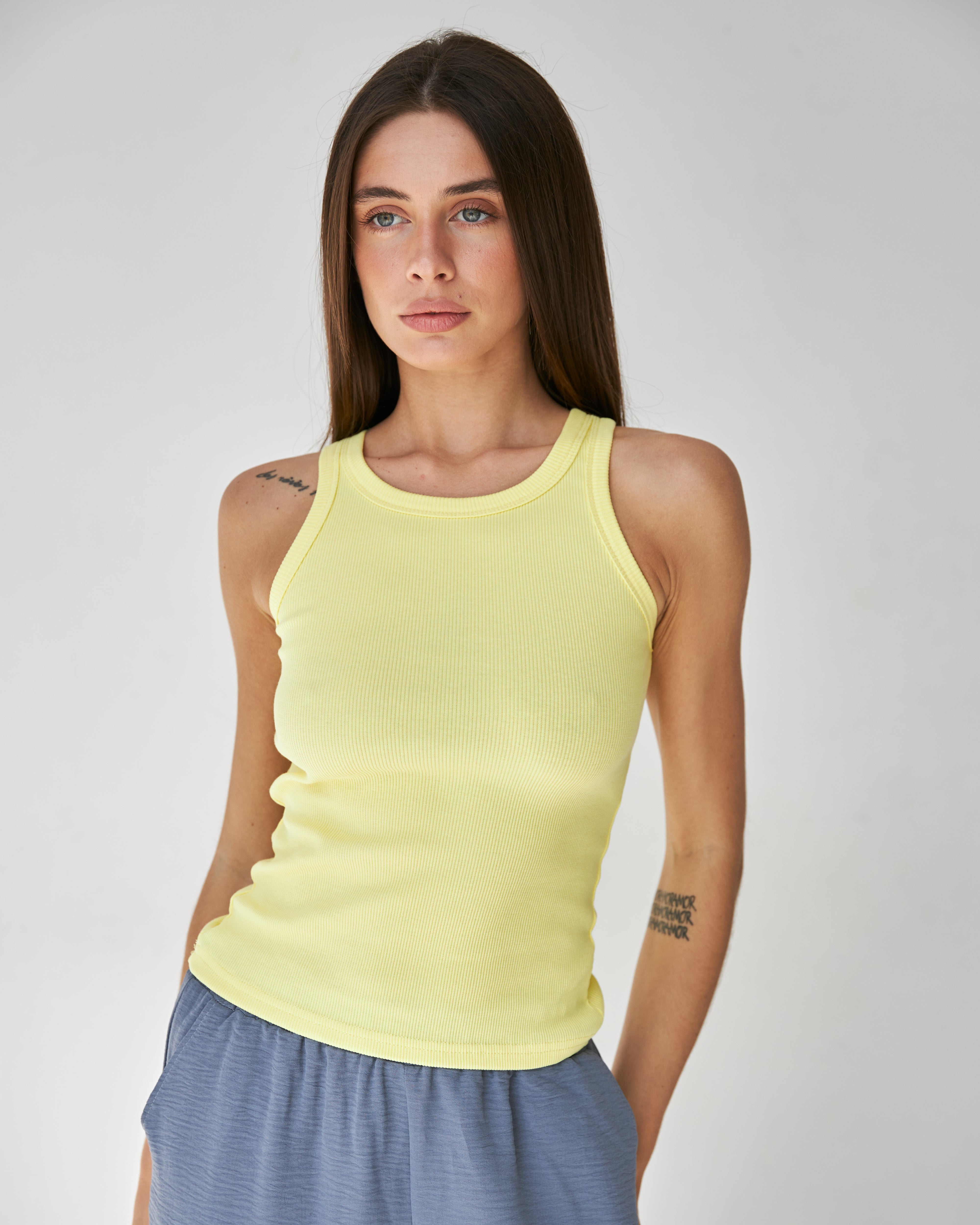 Виготовлена з м’якого та еластичного трикотажу-рубчик, ця майка стане вашою улюбленою базовою річчю для щоденних образів.