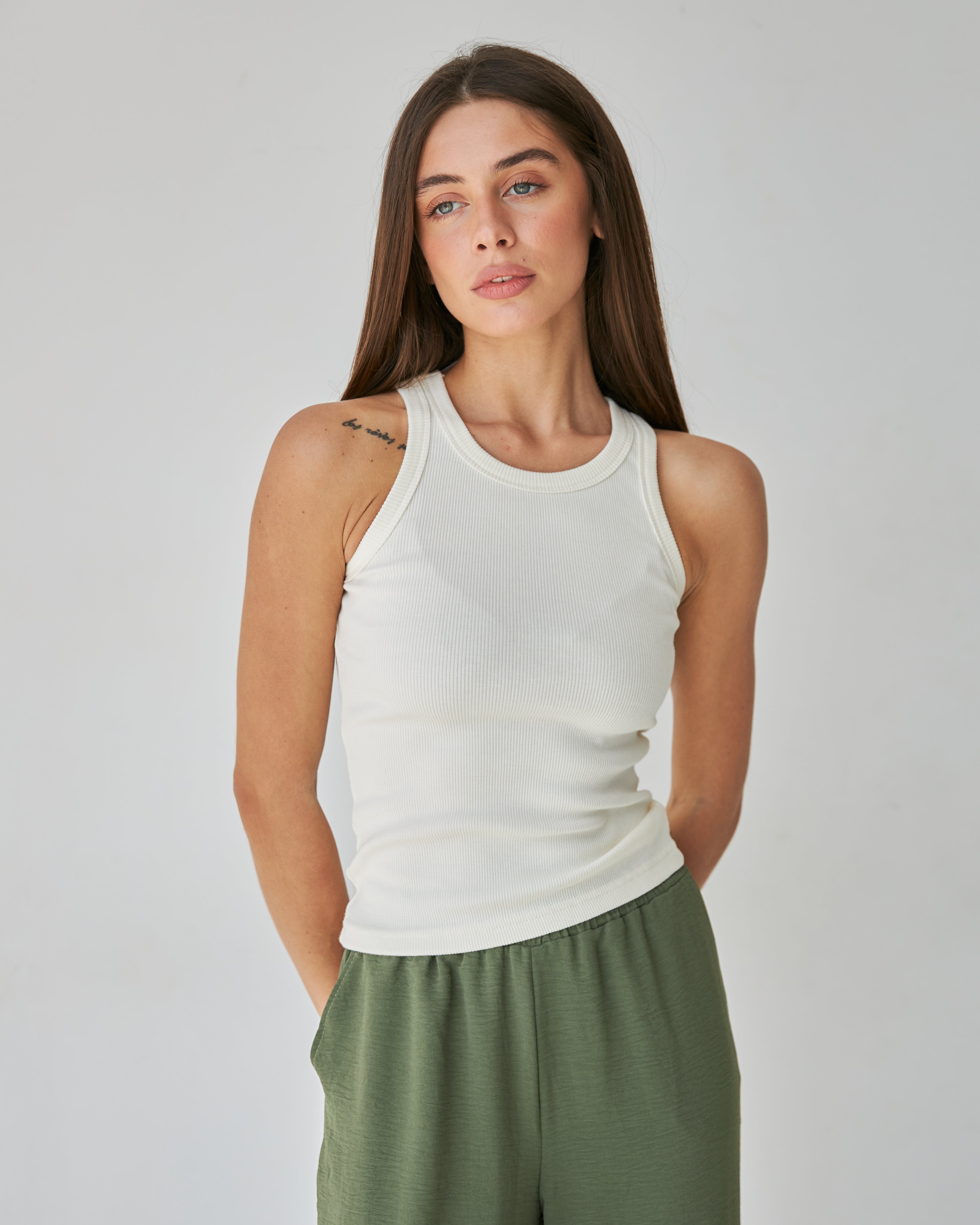 Майка з трикотажу-рубчик — базовий елемент гардероба